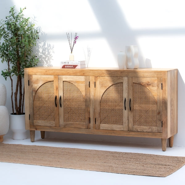 CANOVIA CANE ROUND TOP MIRROR FRAME This distinctive mirror frame showcases traditional Indian craftsmanship with its solid wood construction and elegant cane detailing. The rounded top design creates a sophisticated focal point for any interior space, blending artisanal heritage with contemporary aesthetics. Hand-selected materials ensure durability and lasting quality. Perfect for adding warmth and character to bedrooms, living areas, or entryways, this piece reflects authentic design principles while maintaining practical functionality. An investment in timeless style that celebrates skilled woodworking traditions.