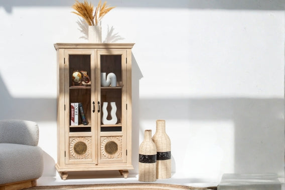 The LUWIN LINING Wooden Bookshelf combines functional design with natural beauty, crafted from premium mango wood sourced from India. This sophisticated storage solution features a lined door that conceals shelves while maintaining an elegant aesthetic. The sturdy construction and warm wood tones make it an ideal choice for organizing books, décor, and collectibles in any room. Perfect for those seeking durable furniture that balances style with practicality.