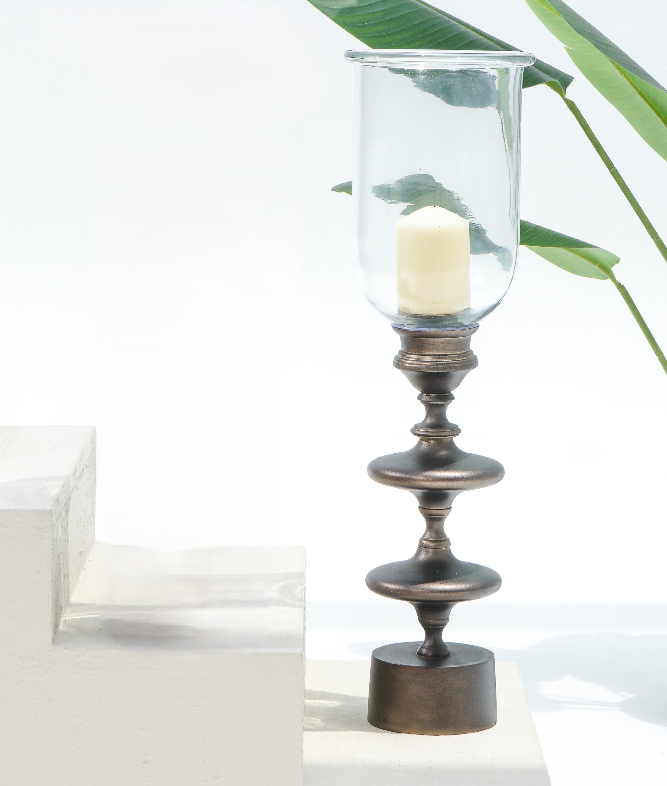 مصنوعة يدوياً من النحاس العتيق، يضفي هذا التصميم الخالد لمسة من الرقي على ديكور منزلك. الأبعاد: ١٢٫٧٠ × ١٢٫٧٠ × ٤٠٫٦٤ سم.