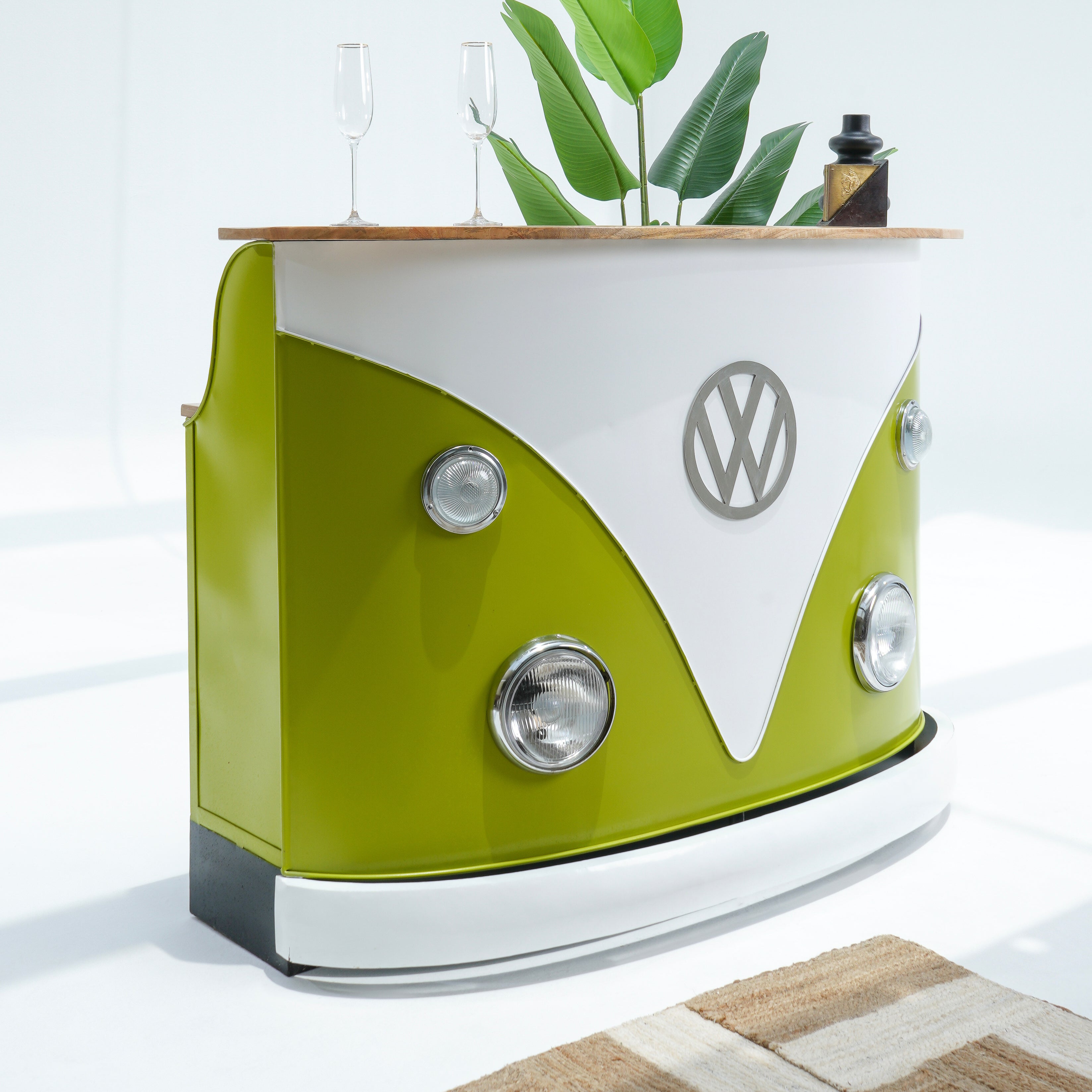 تضفي اللمسات النيونية الجريئة والرسومات المرحة المستوحاة من شاحنة فولكس فاجن لمسةً مميزة على هذا المنضد النابض بالحياة، مما يجعله قطعة مركزية ممتعة لأي مكان حيوي.