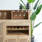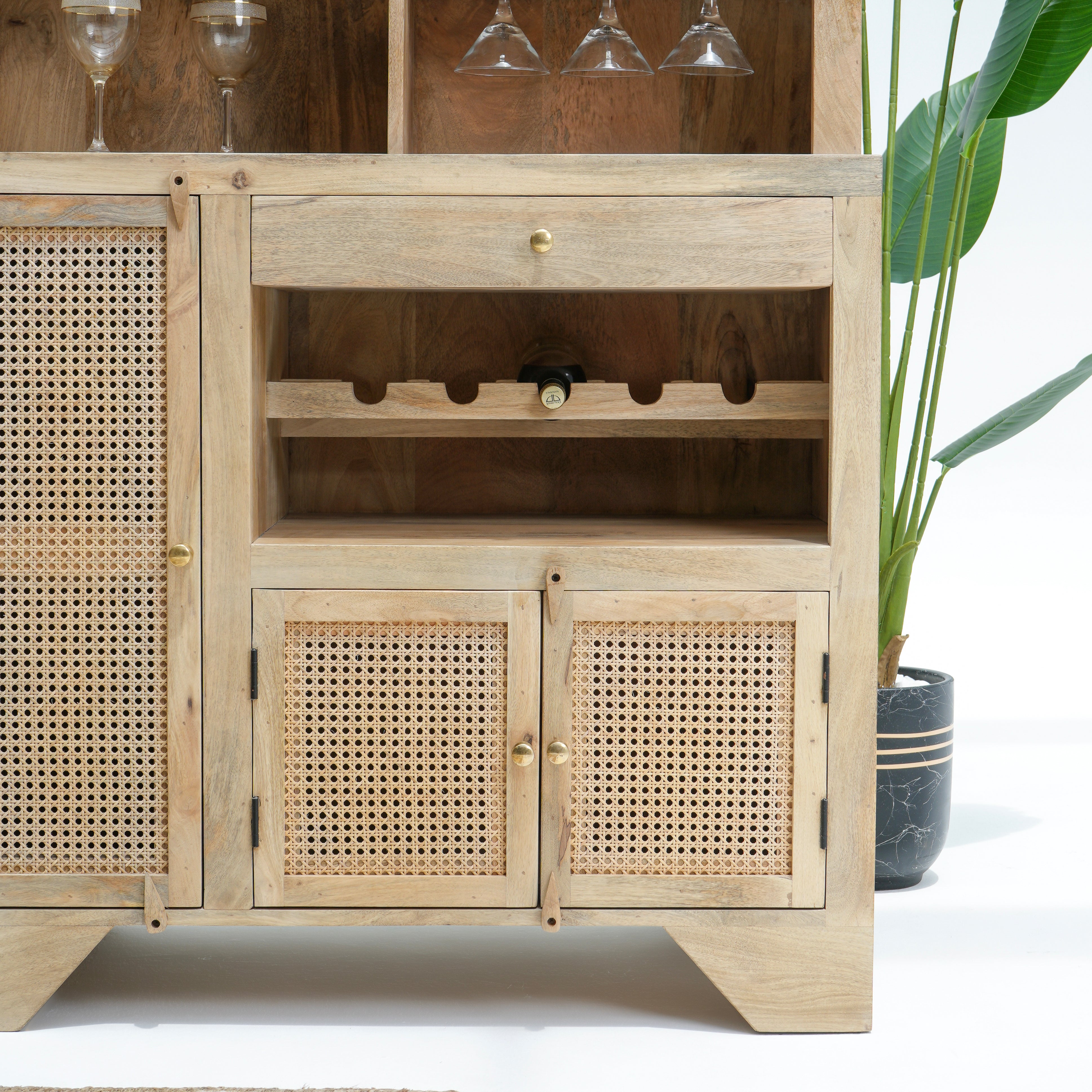 يتميز بواجهة من الخيزران المنسوج وسطح من الخشب المصقول، مما يوفر مساحة واسعة لتحضير المشروبات. قطعة أنيقة ومتينة تُضفي لمسة جمالية على أي مكان أنيق.