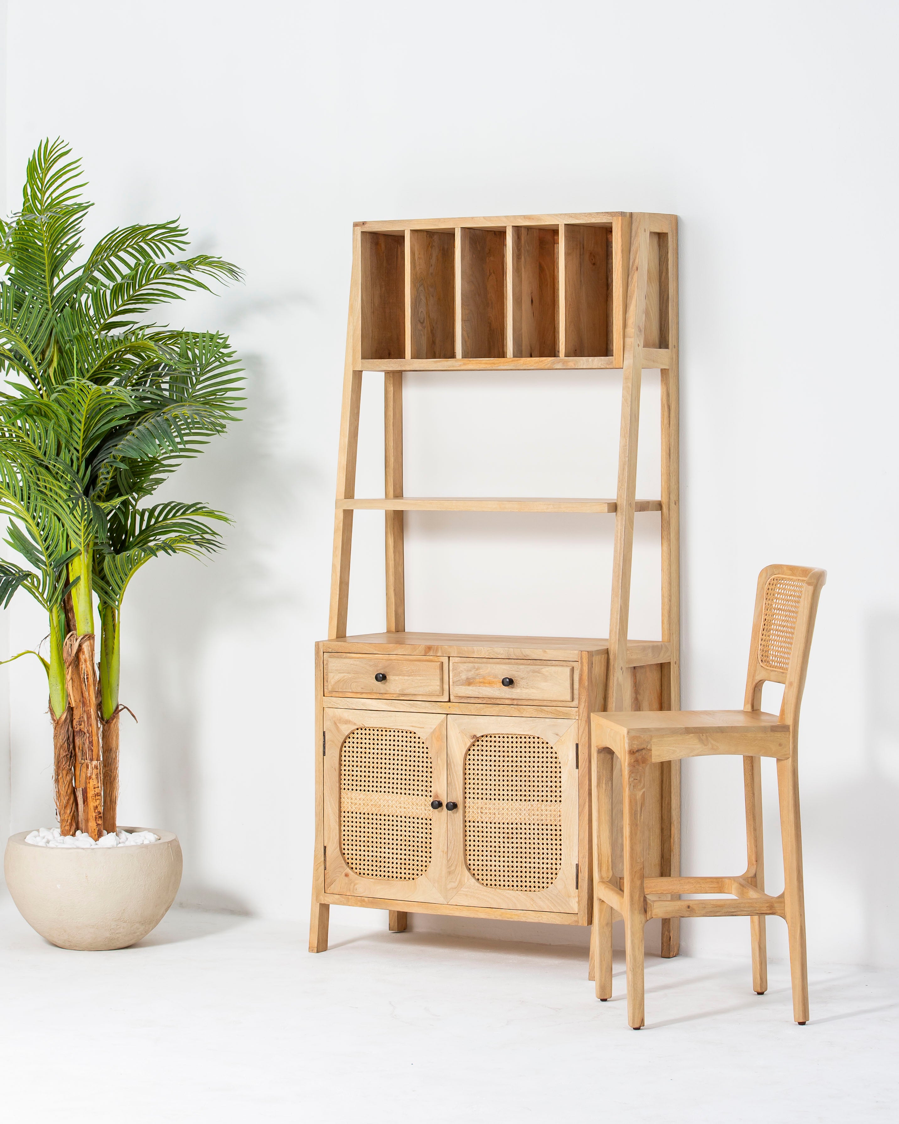 ارتقِ بمساحة استقبال ضيوفك مع بار كانوفيا الخشبي القائم، قطعة أنيقة مصنوعة من خشب المانجو الصلب الفاخر. يتميز هذا البار متعدد الاستخدامات بدرجين واسعين وبابين للخزانة، مما يوفر مساحة تخزين واسعة للأواني الزجاجية والمشروبات الروحية ولوازم البار الأساسية. يبرز التشطيب الخشبي الطبيعي جمال حبيبات الخشب ودفئه، بينما تضيف المقابض السوداء الأنيقة لمسة عصرية. يُعد هذا البار مثاليًا للبارات المنزلية أو غرف الطعام أو أماكن الاستقبال، حيث يجمع تصميمه المتين بين العملية والتصميم الخالد. إنه الخيار الأمثل لمن يُقدّرون الحرفية العالية والجمال الراقي.