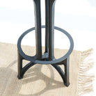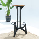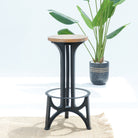 كرسي بار ذو سطح خشبي وهيكل معدني أسود