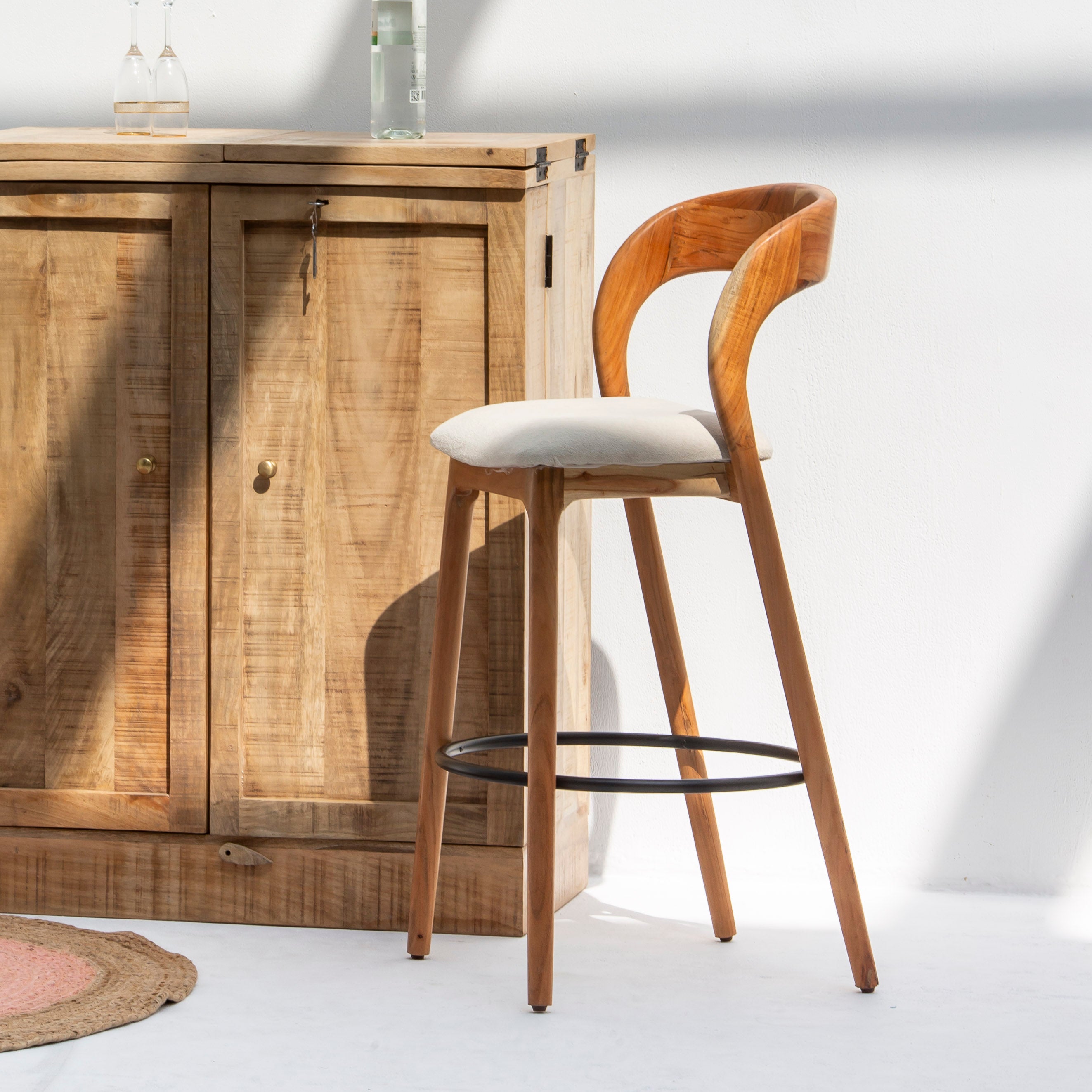 مصنوع يدويًا من خشب الأكاسيا الفاخر، يجمع هذا الكرسي المرتفع ذو التصميم البسيط بين سحر الريف وأناقة التصميم المعاصر. تبرز كل قطعة جمال حبيبات خشب الأكاسيا الهندي الطبيعية ودفئه، بينما يوفر المقعد القماشي راحة فائقة ونعومة لا مثيل لها. بفضل خطوطه الأنيقة وتصميمه البسيط، يُعد إضافة مثالية للمطابخ أو الحانات أو غرف الطعام. صُمم هذا الكرسي ليدوم طويلًا بحرفية تقليدية، فهو يجمع بين الشكل والوظيفة بشكل رائع.
