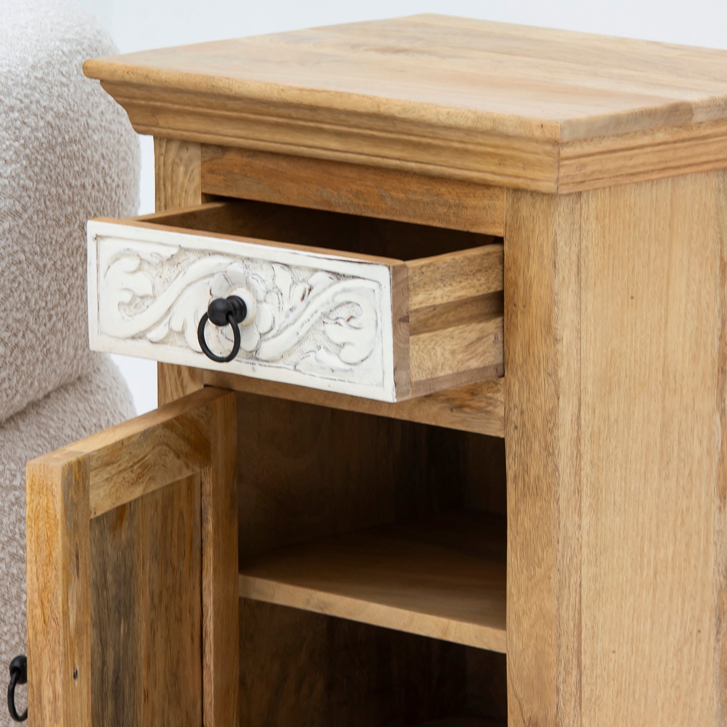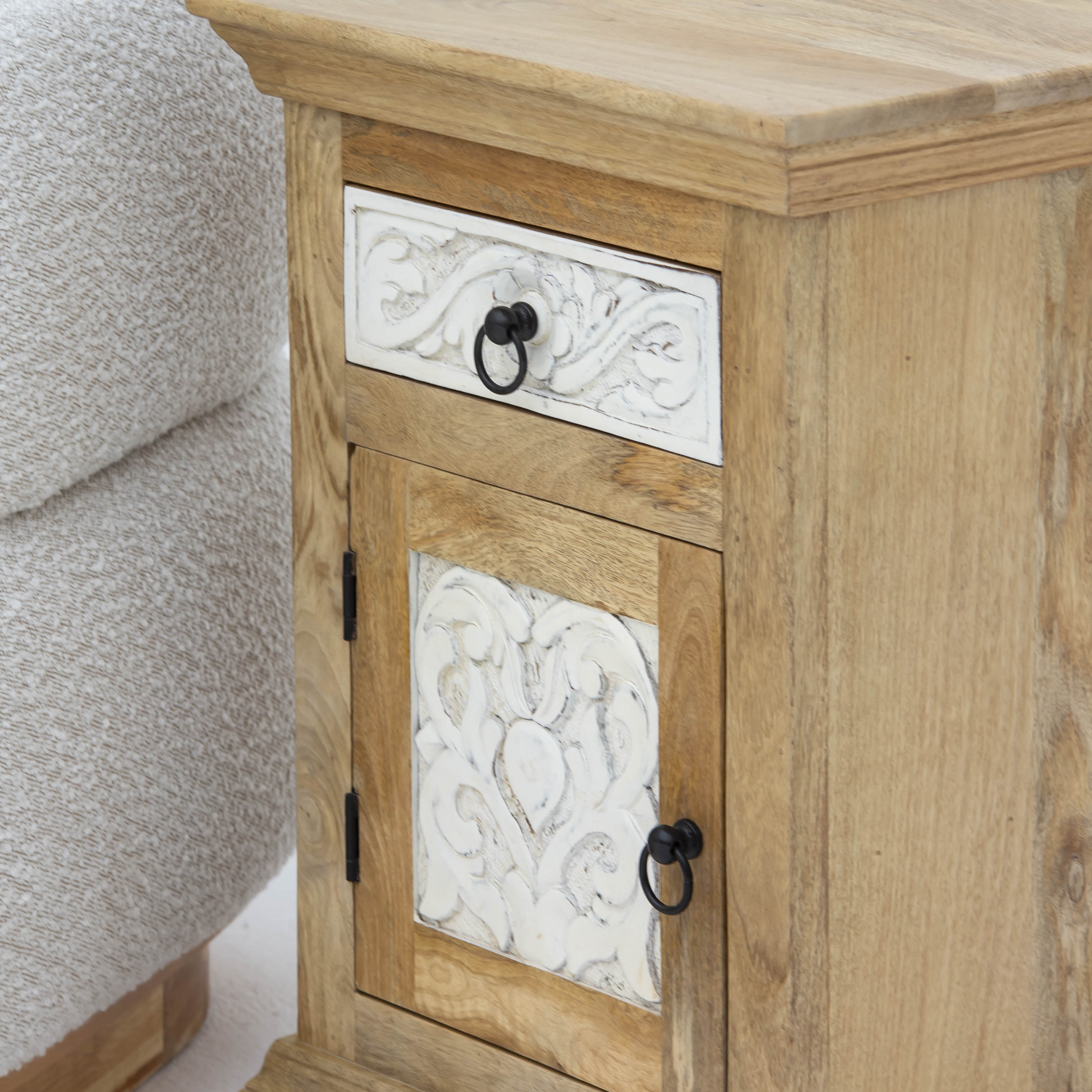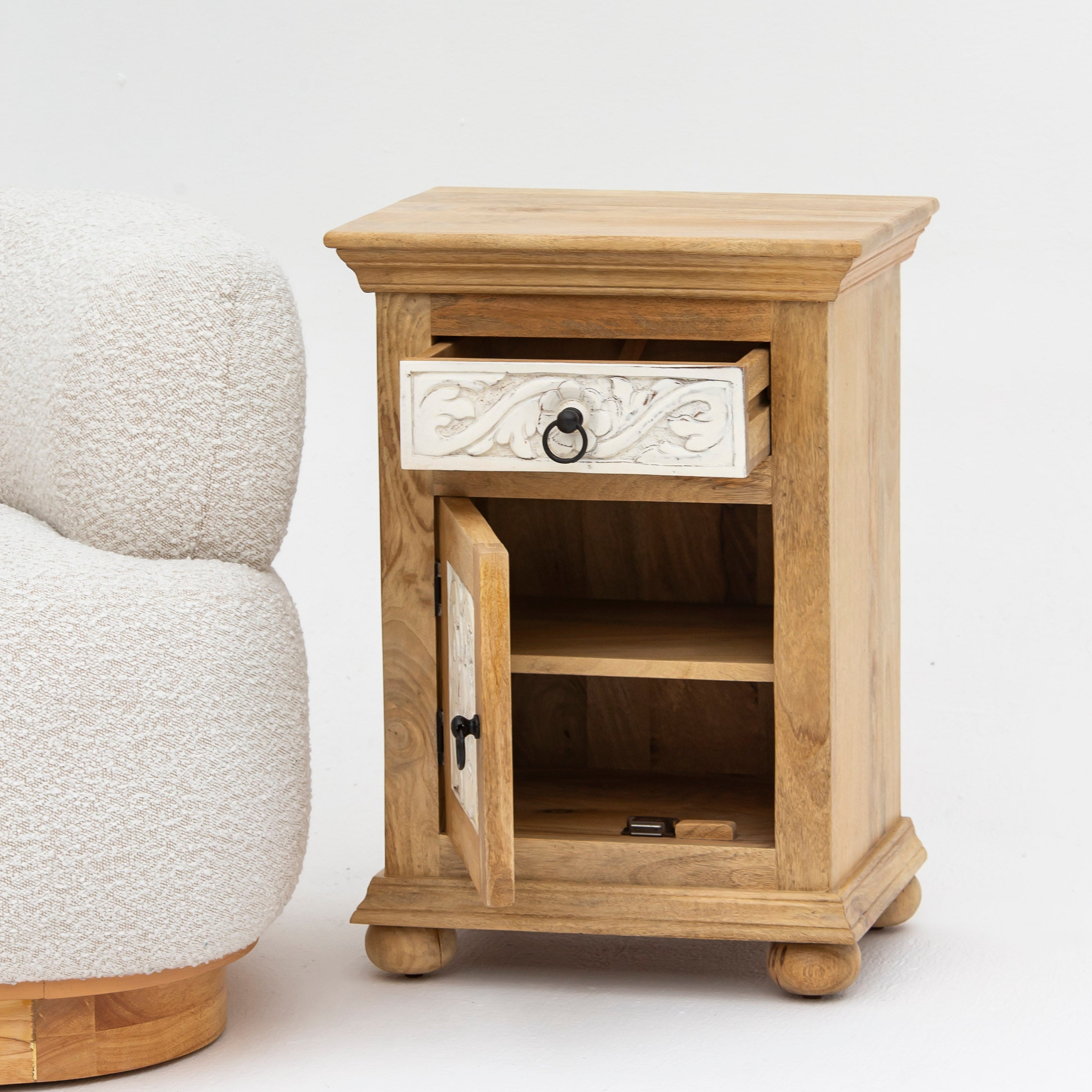 Handcrafted with meticulous attention to detail, this carving bedside table showcases traditional artisanal techniques combined with functional elegance. Each piece features intricate carved detailing that adds character and sophistication to your bedroom sanctuary. The sturdy construction ensures reliable everyday use, while the thoughtful design provides convenient surface space for your nighttime essentials. A timeless addition that celebrates craftsmanship and brings warmth to your personal retreat.
