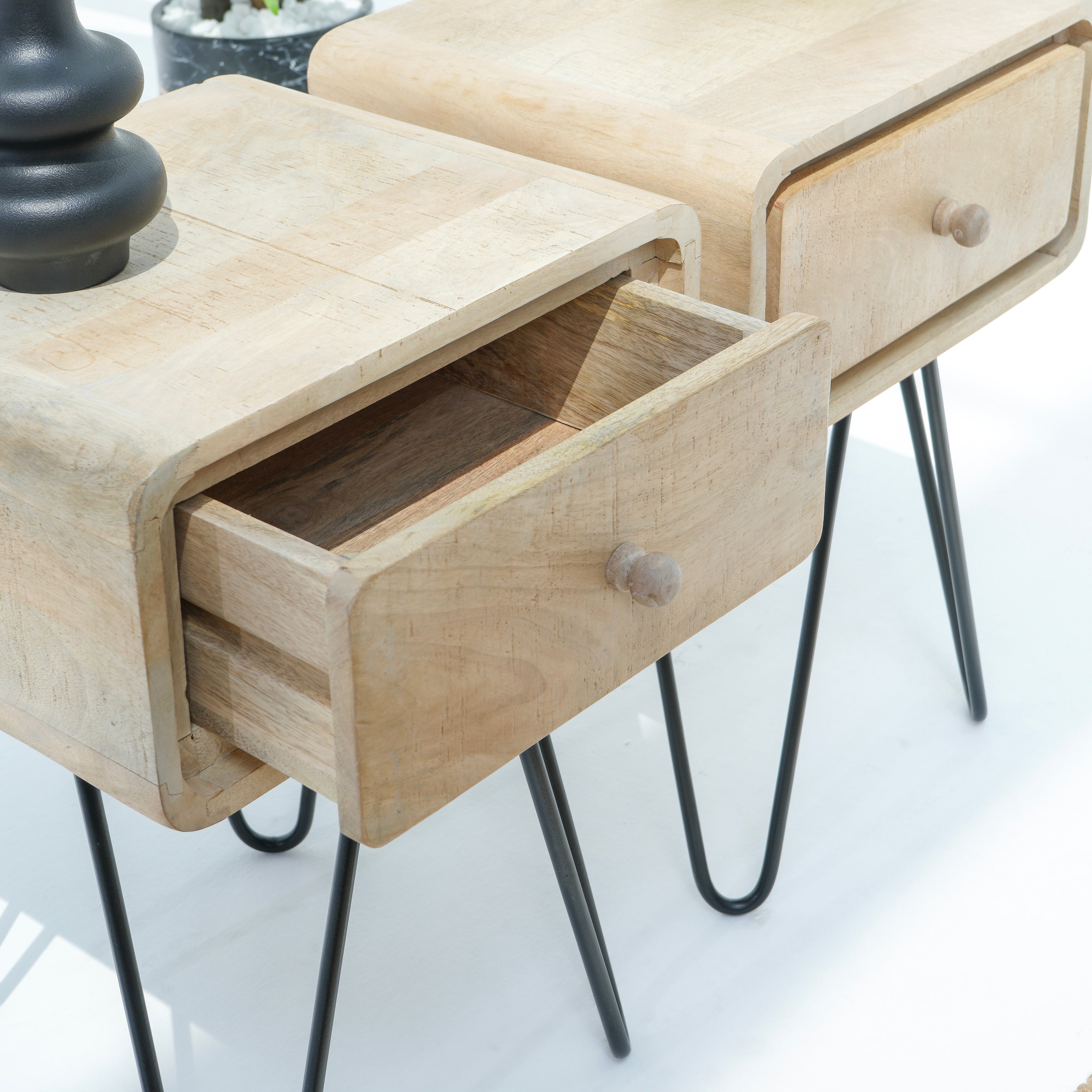 طاولة جانبية من خشب الدردار المعالج ضد النمل الأبيض: مصنوعة من خشب الدردار الصلب، تتميز هذه الطاولة بلمسة نهائية دافئة وتصميم يدوي الصنع. يوفر الدرج الواحد مساحة تخزين إضافية مع إضفاء لمسة جمالية على ديكور منزلك، مع ضمان لمدة عام على الجودة.