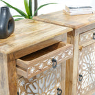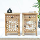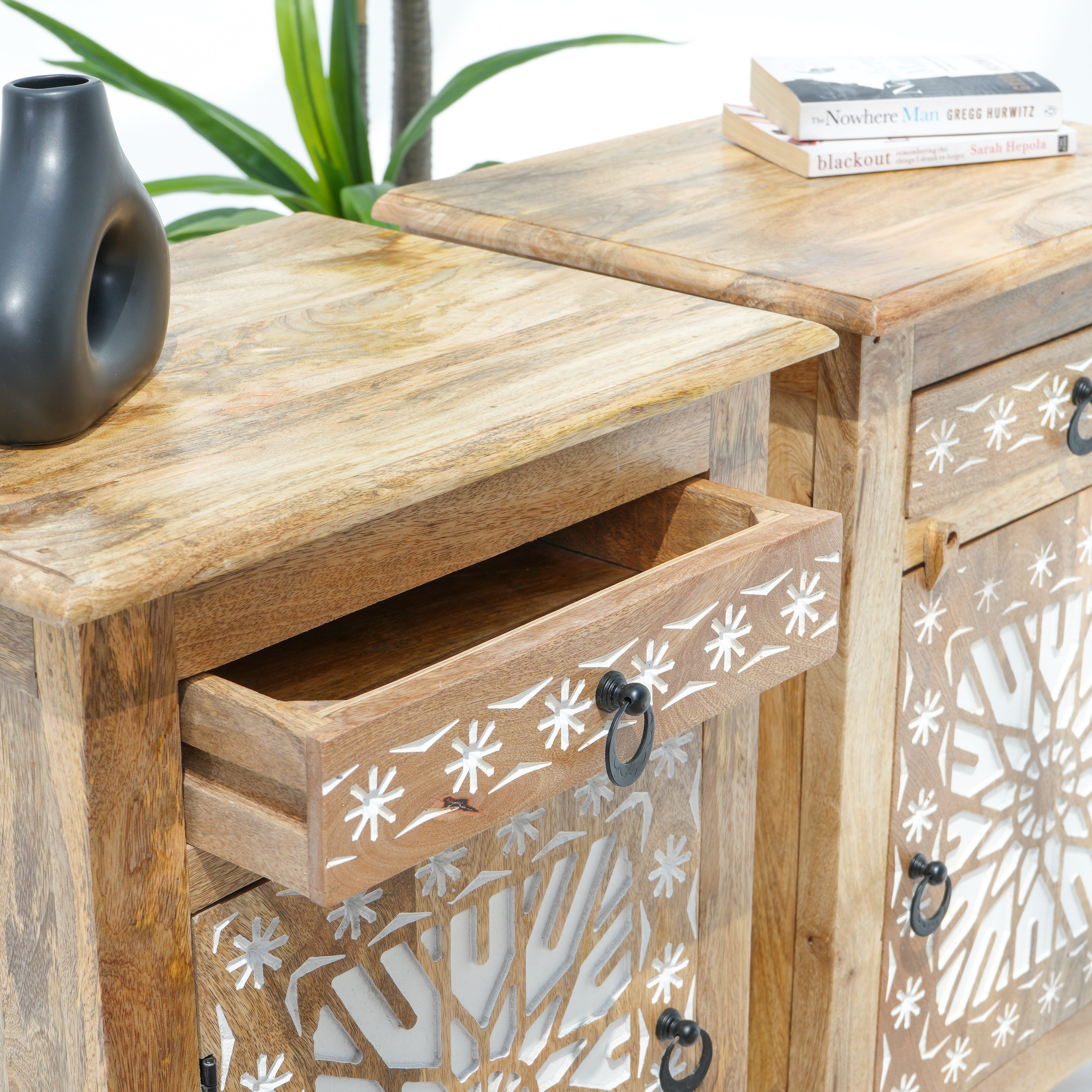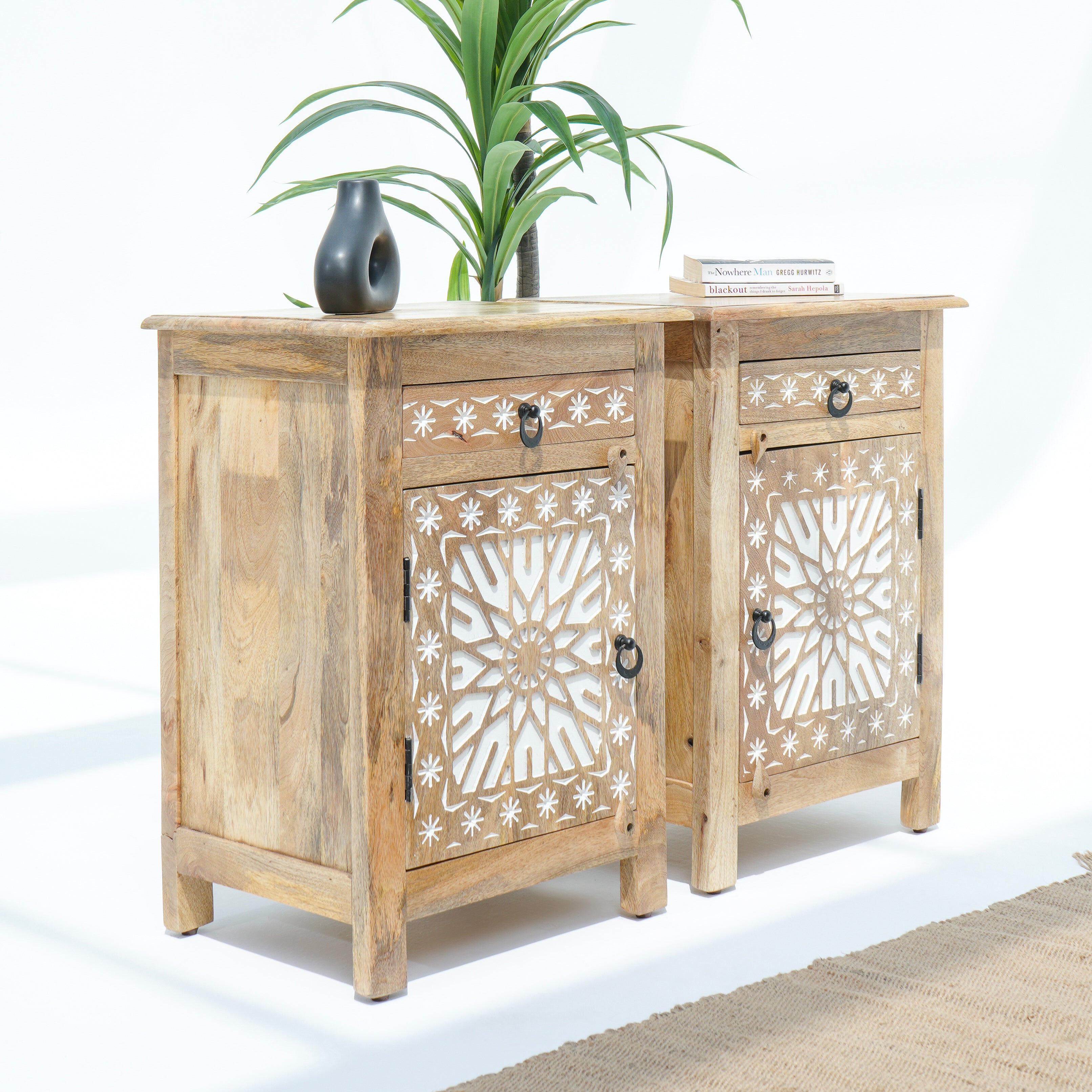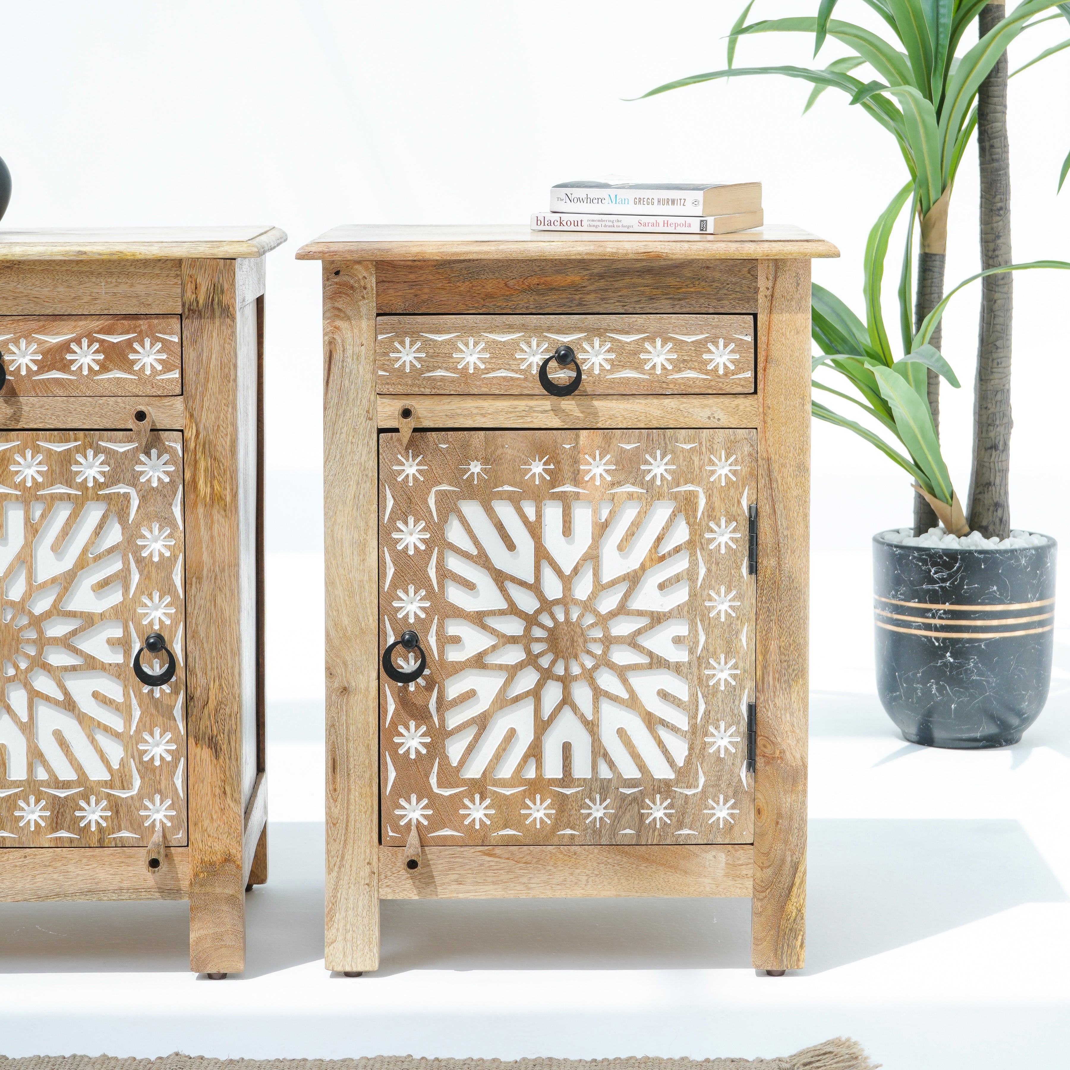 طاولة جانبية بتصميم عاجي بتقنية CNC: مصنوعة يدويًا من الخشب الصلب، تتميز هذه الطاولة الجانبية المعالجة ضد النمل الأبيض بتفاصيل دقيقة بتقنية CNC. تجمع بين العملية والتصميم الأنيق، وتأتي مع ضمان لمدة عام لضمان جودتها العالية.