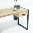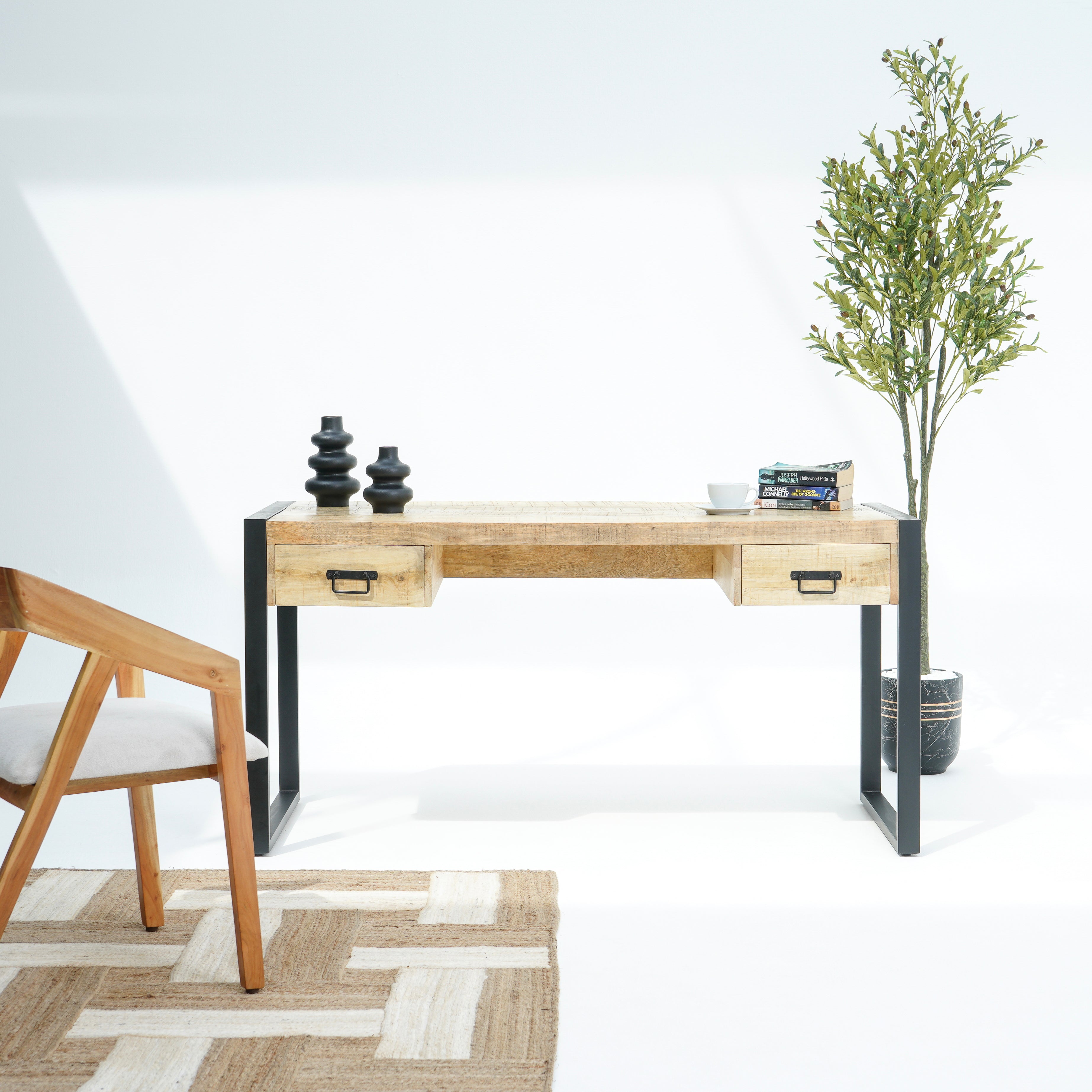 ابتكر ملاذًا لأفكارك مع مكتب الدراسة "آيرونيكس" من "آرت آند كرافت فرنتشر". تصميمه الكلاسيكي ومساحة العمل الواسعة فيه يحفزان الإنتاجية والإبداع. معالج ضد النمل الأبيض، ضمان لمدة عام، صنع في الهند.