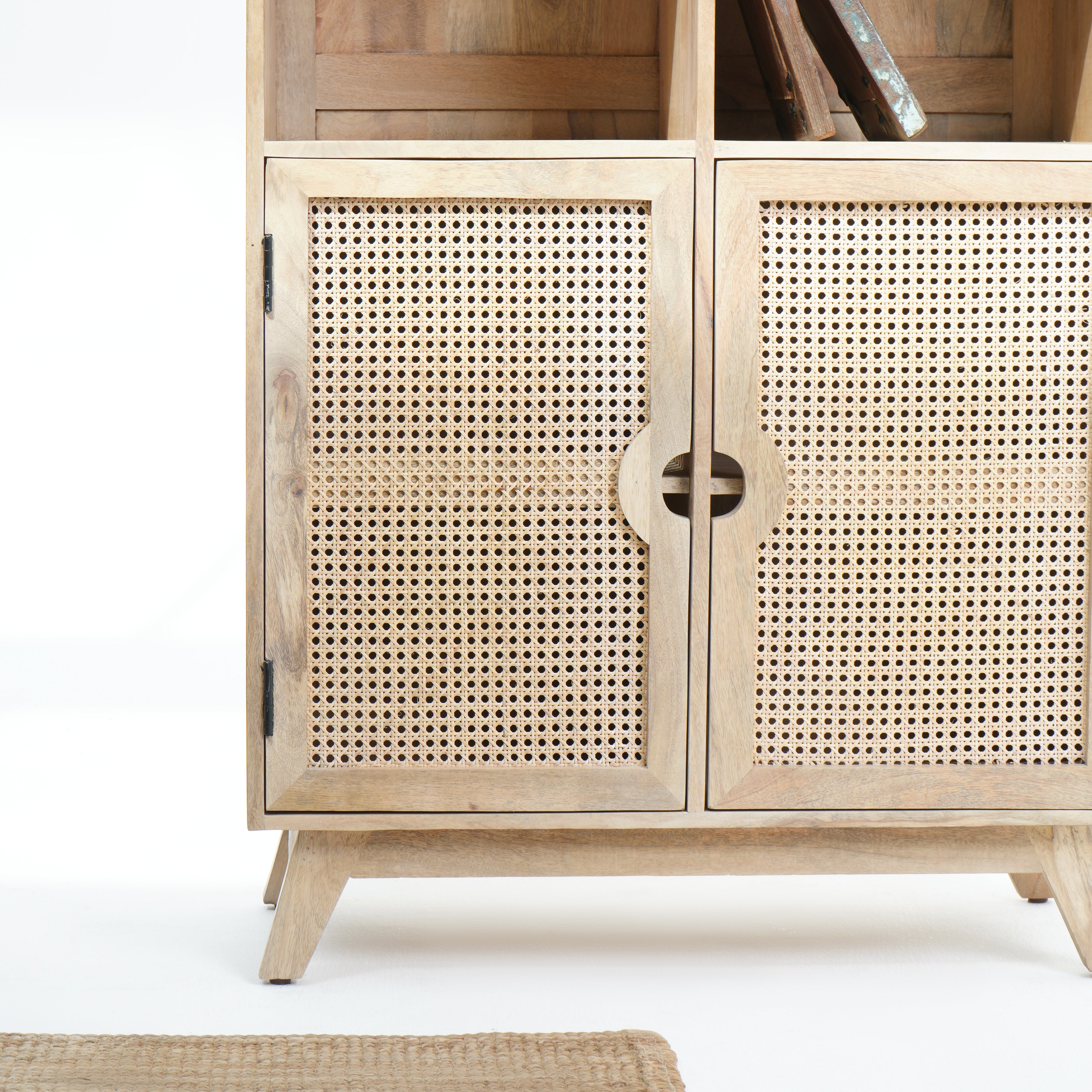 أضف لمسة من الرقي إلى ديكور منزلك مع مزيج من الأناقة الكلاسيكية والتصميم العملي. يتميز هذا المنتج بتفاصيل من الخيزران ولمسة نهائية راقية، ويخفي مساحة تخزين واسعة خلف بابين، بينما يعرض الكتب والديكورات على أرفف مفتوحة، مما يجعله ينسجم بسلاسة مع مختلف أنماط الديكور الداخلي.