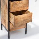 مصنوعة يدويًا من خشب المانجو الفاخر، تجمع هذه المكتبة ذات الأدراج الثلاثة بين سحر الريف ووظائف التخزين العملية. تُبرز كل قطعة جمال حبيبات الخشب الهندي الطبيعي ودفئه، حاملةً بصمات الحرفية الأصيلة. يضمن الهيكل الفولاذي المتين متانة تدوم طويلًا، بينما توفر الأدراج الثلاثة الواسعة مساحة تخزين مخفية للكتب والوثائق أو المقتنيات الثمينة. قطعة مميزة مثالية لمن يُقدّرون الحرفية التراثية والتصميم الخالد.