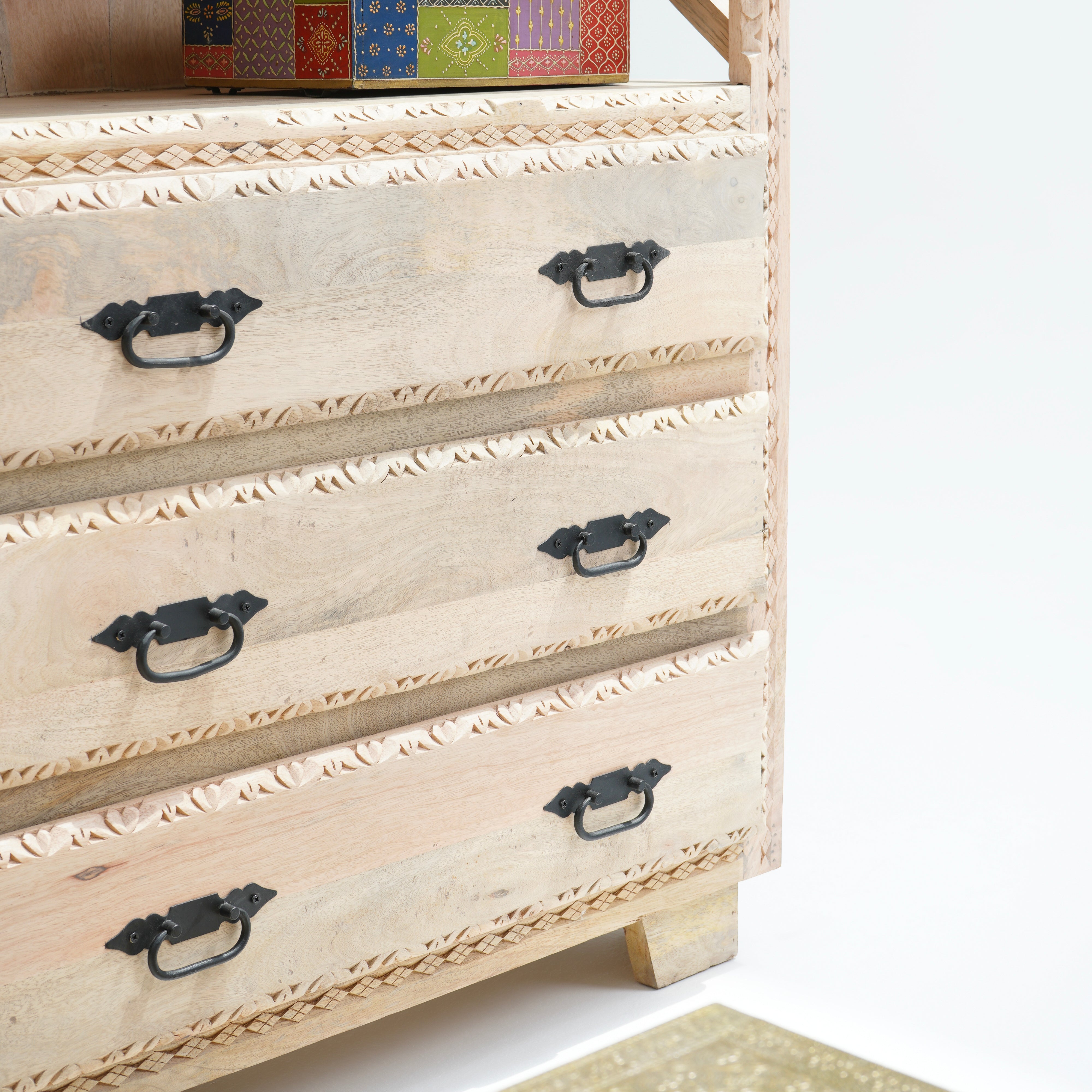 أضف لمسة من الرقي إلى منزلك مع مزيج متناغم من الأناقة والعملية. تتميز هذه القطعة الأنيقة بثلاثة أدراج للتخزين المخفي ورفوف مفتوحة لعرض الكتب والديكورات، مما يضفي لمسة من الرقي على أي غرفة.