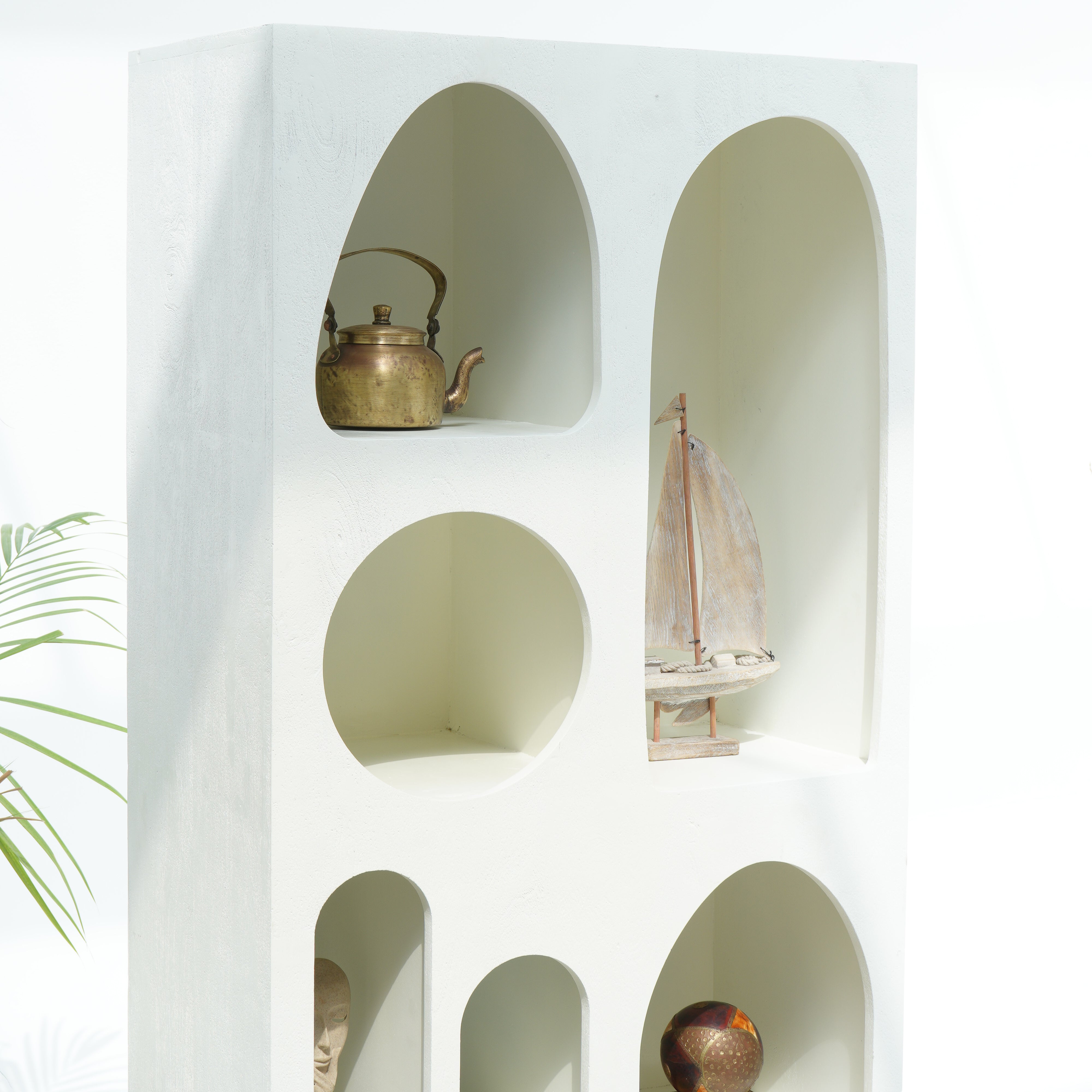 رف كتب مفتوح أبيض مقوس