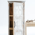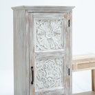 تجمع هذه الخزانة بين الأناقة والعملية، فهي تتميز بباب واحد مزخرف ومساحة داخلية واسعة لحفظ الأغراض الأساسية. كما أن تشطيبها الكلاسيكي يضفي لمسة جمالية على الديكورات العصرية والتقليدية على حد سواء.
