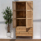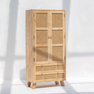 مصنوعة من خشب المانجو الصلب الفاخر، وبحرفية عالية في الهند، تجمع خزانة كانوفيا ذات البابين والدرجين بين تقنيات الحرف اليدوية التقليدية والتصميم العملي. تضفي تفاصيل القصب لمسة دافئة وملمسًا مميزًا، بينما يوفر البابان والدرجان حلول تخزين متعددة الاستخدامات لأي غرفة. صُممت هذه القطعة لتدوم طويلًا بفضل هيكلها المصنوع من الخشب الصلب عالي الجودة، لتضفي على مساحتك لمسة من الحرفية الأصيلة والجاذبية الخالدة.
