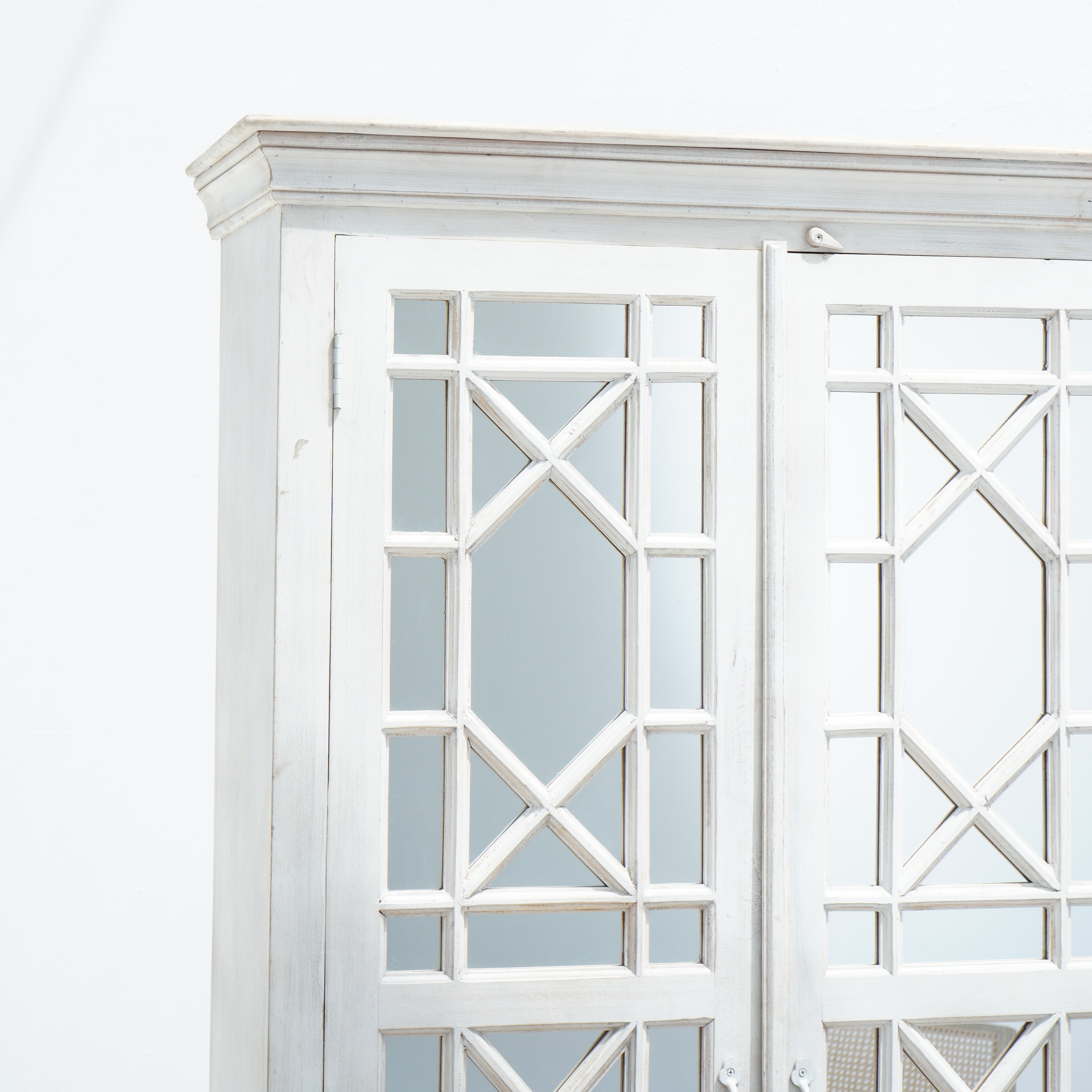 خزانة أنيقة ببابين عاكسين تضفي عليها فخامةً وتوسعاً بصرياً. تصميمها الكلاسيكي يوفر مساحة تخزين واسعة، مثالية لتنظيم الأغراض الأساسية في أي نمط ديكور.