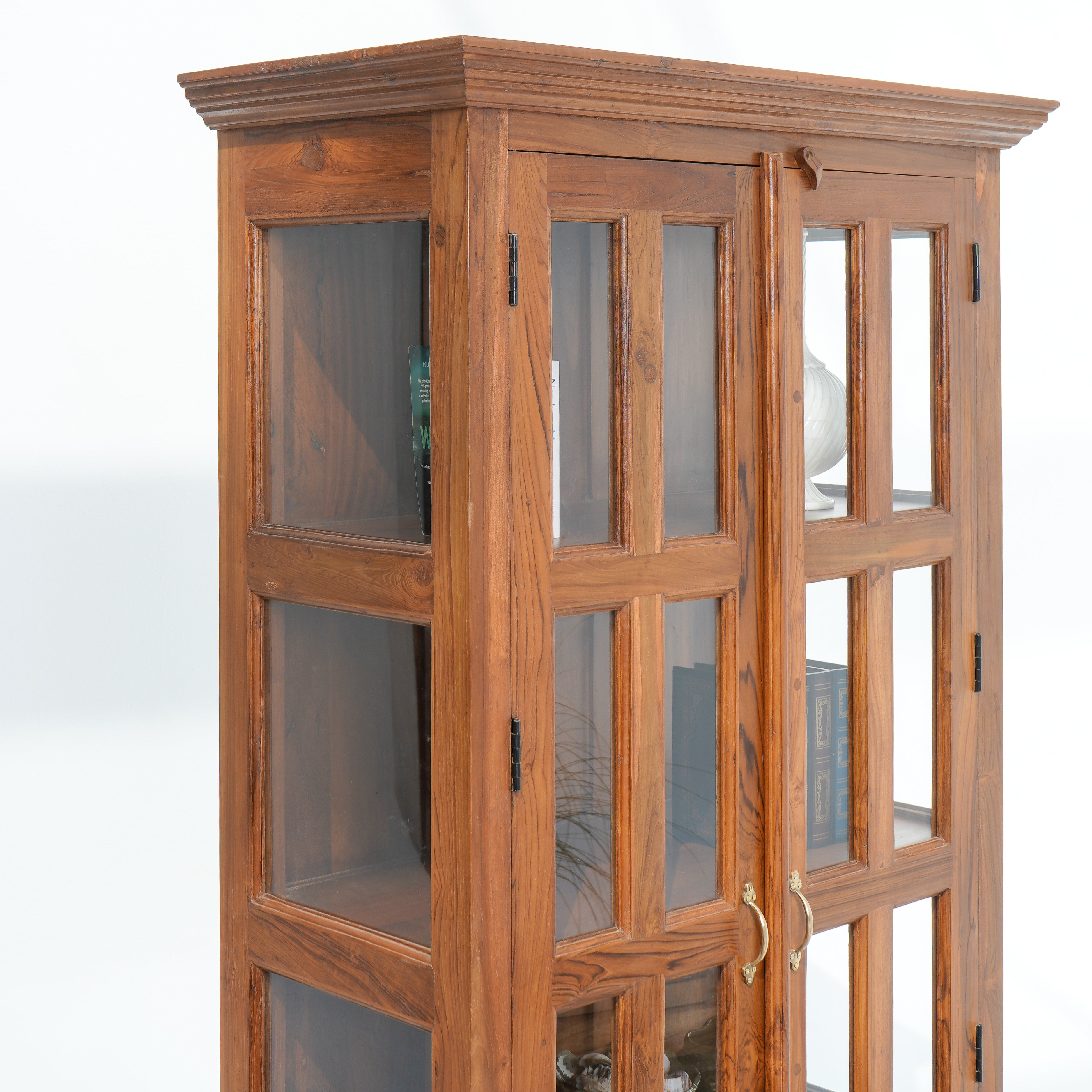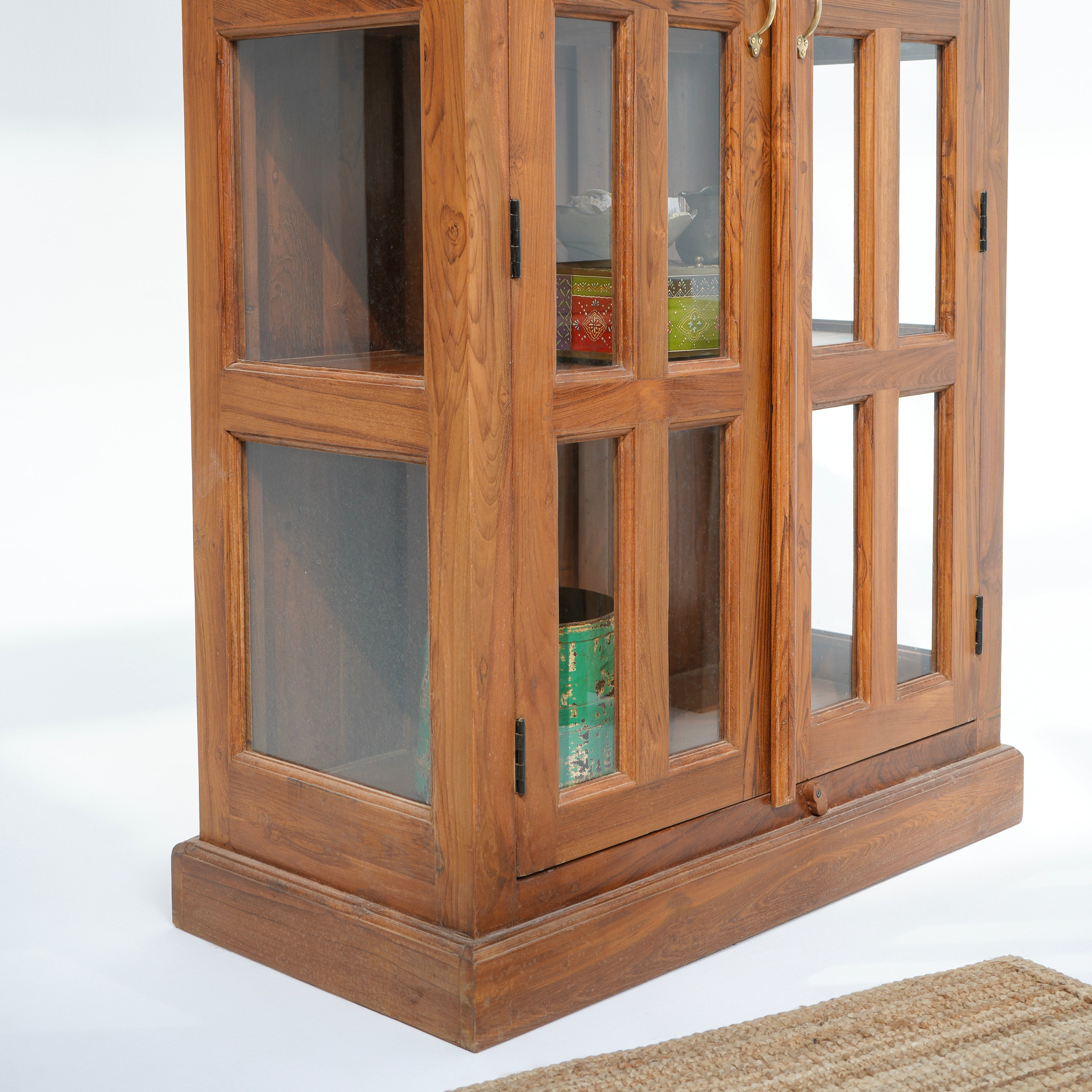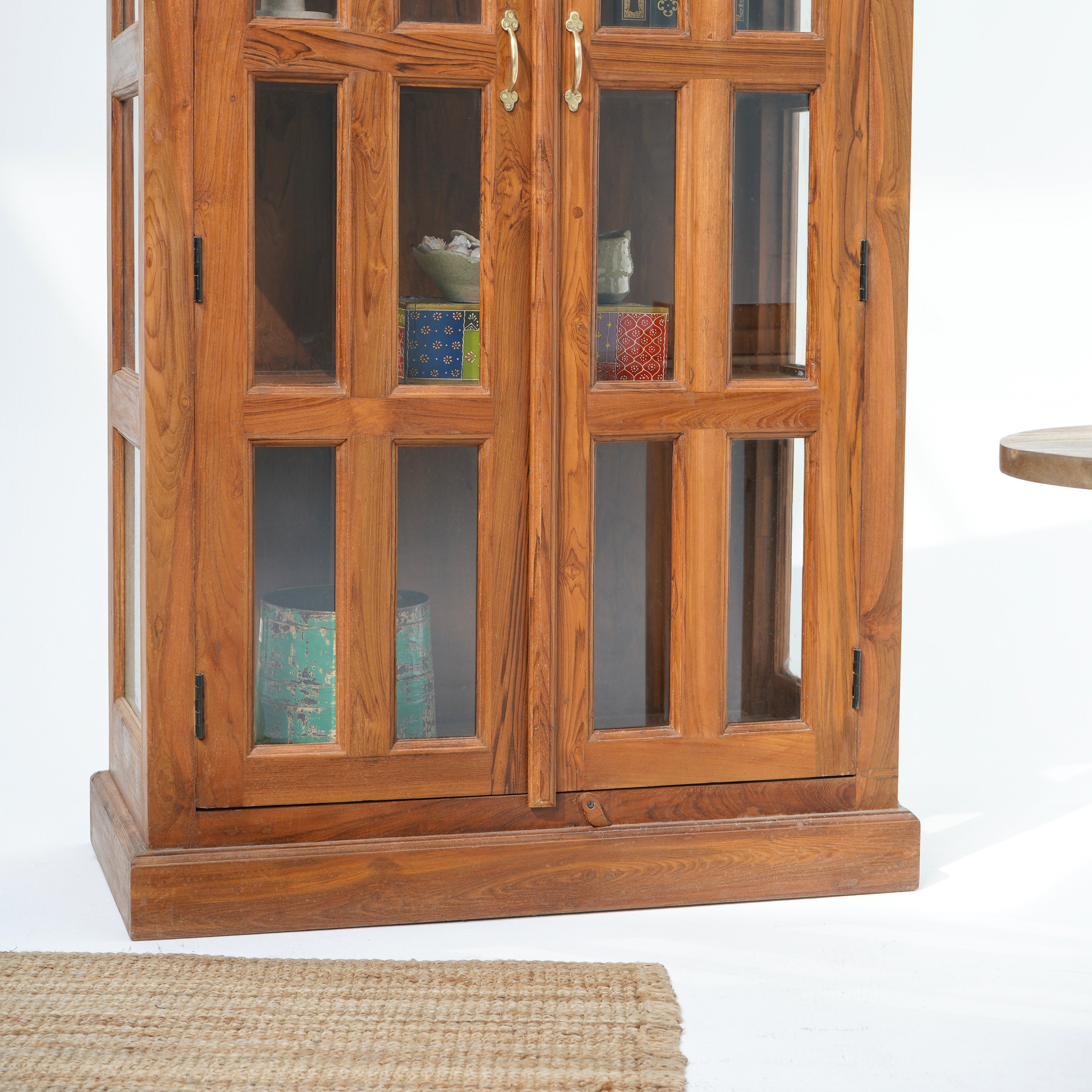 خزانة أنيقة ذات بابين زجاجيين لعرض التحف، تضفي لمسة من الرقي على أي غرفة. تصميمها الانسيابي وتشطيبها عالي الجودة يجعلانها مناسبة لمختلف أنواع الديكورات الداخلية.