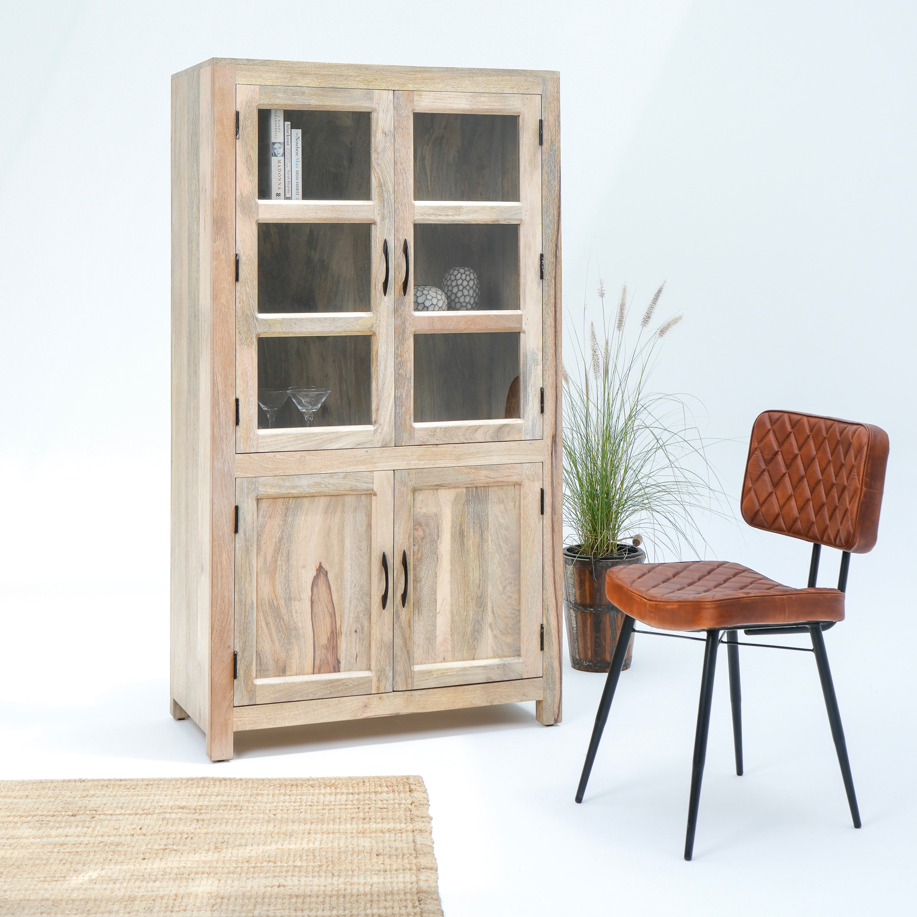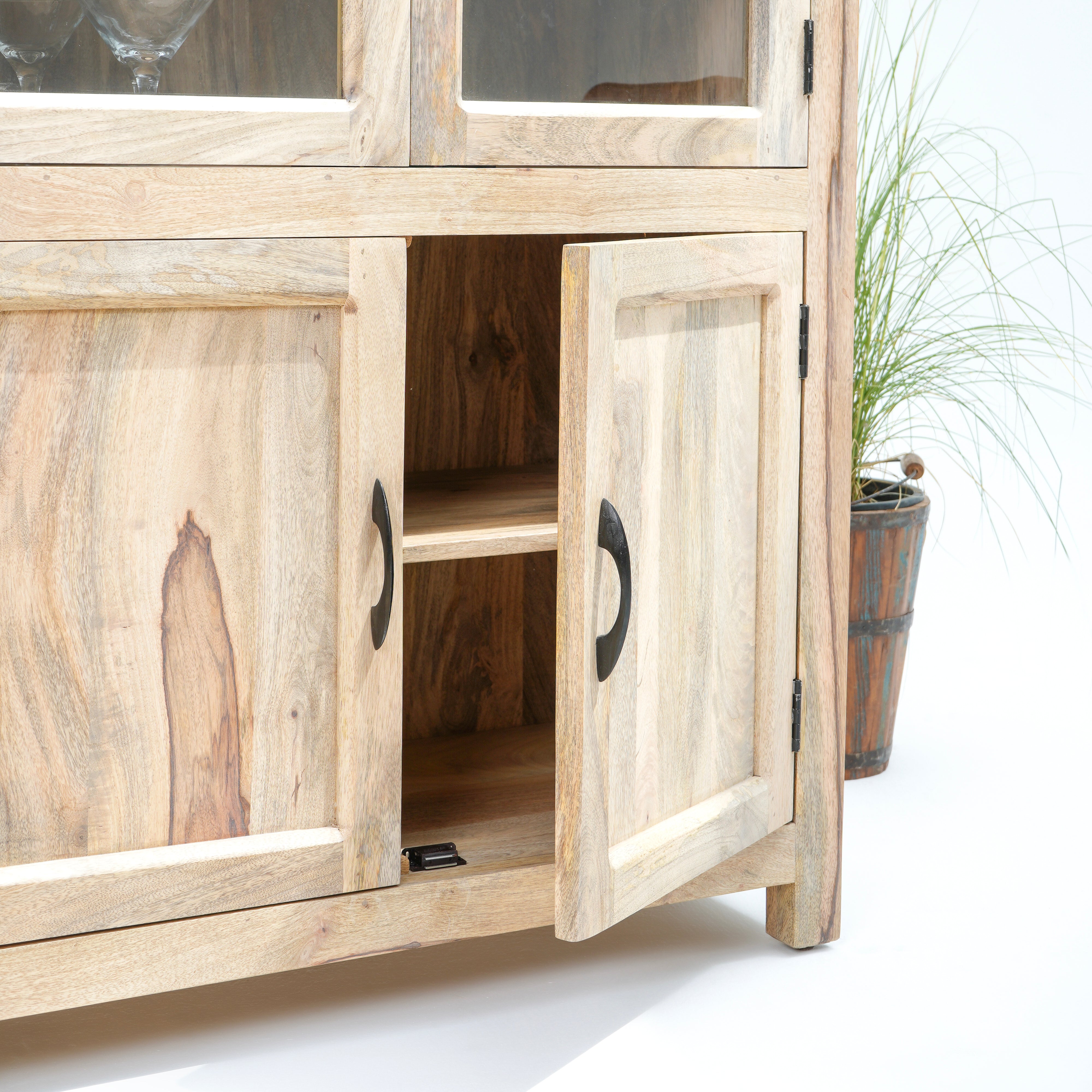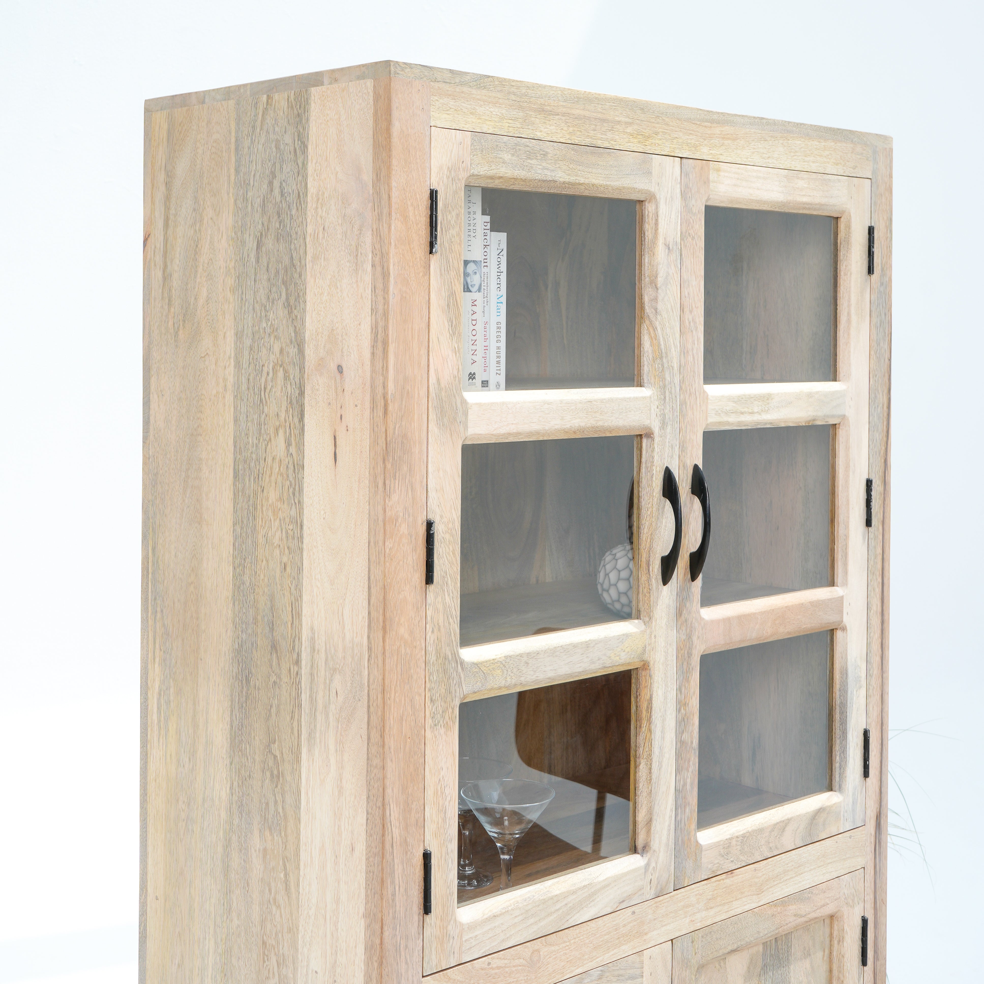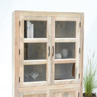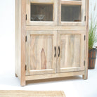 خزانة رائعة ذات بابين زجاجيين للعرض وبابين خشبيين للتخزين المخفي. يجمع تصميمها بين العناصر الكلاسيكية والمعاصرة لتناسب مختلف أنماط الديكور.