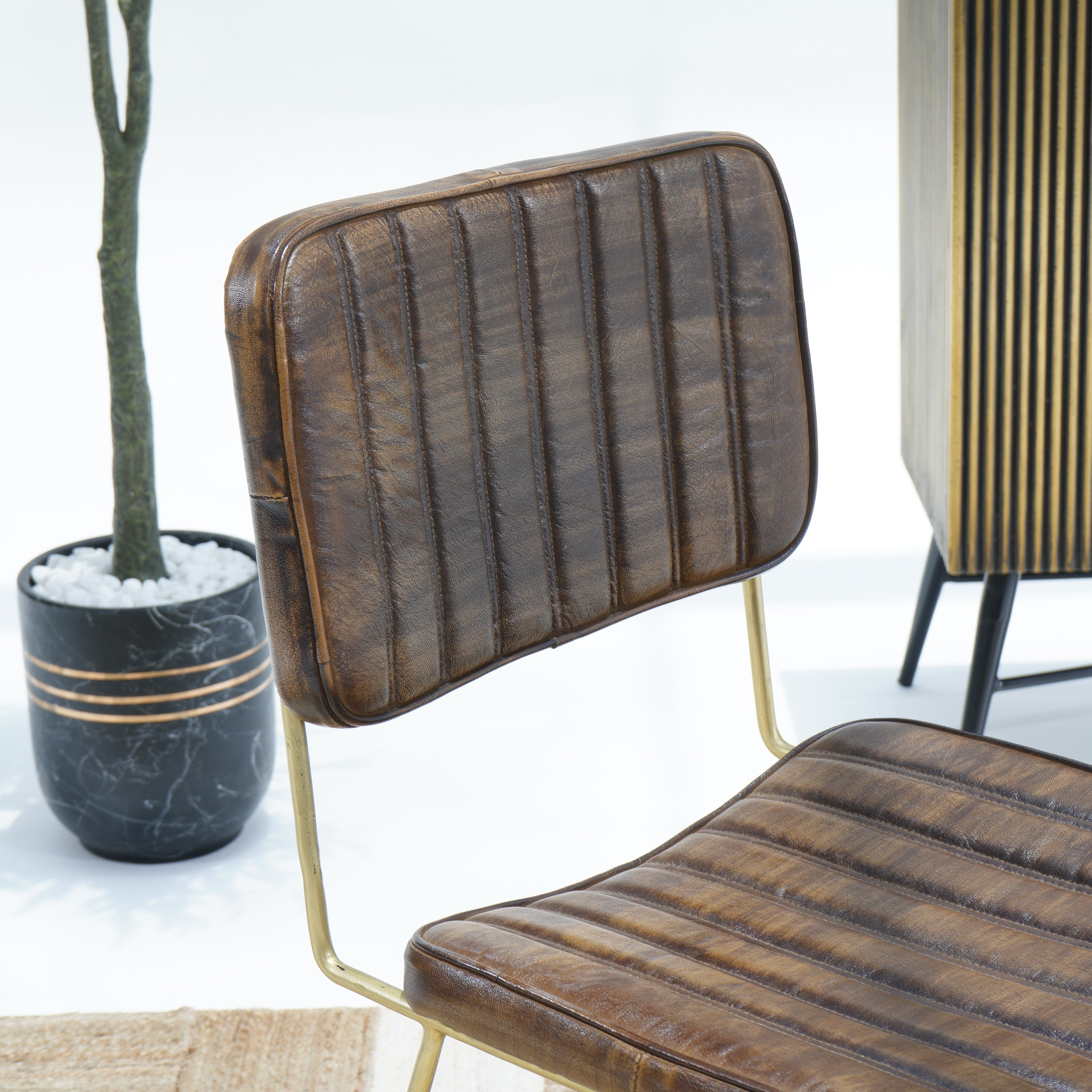 كرسي جراند سيرينيتي الجلدي: يتميز هذا الكرسي الأنيق بإطار خشبي مصنوع يدويًا ومقعد جلدي فاخر. يبلغ عرضه 43 سم وارتفاعه 47 سم، مما يوفر راحة استثنائية وأناقة فائقة. صنع في الهند، مع ضمان لمدة عام.