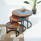 تجمع طاولات "ستايلش تريو" المتداخلة بين الشكل والوظيفة بتصميمها الأنيق. تتألف هذه المجموعة من ثلاث قطع، تتميز بأسطح من راتنج الإيبوكسي وإطارات معدنية متينة، مما يخلق لمسة جمالية عصرية تُناسب أي ديكور داخلي. تتداخل كل طاولة بسلاسة داخل الطاولة الأكبر، مما يُحسّن استغلال المساحة دون التضحية بالأناقة. تُعد هذه الطاولات المتداخلة مثالية كطاولات قهوة أو قطع ديكور مميزة، وتوفر تنوعًا في الاستخدام لغرف المعيشة والاستوديوهات والمساحات الإبداعية. يضمن هيكلها المتين جودة تدوم طويلًا، بينما يُضفي الإطار المعدني الأنيق والأسطح الراتنجية الفاخرة لمسة عصرية راقية تُعزز ديكور منزلك.