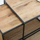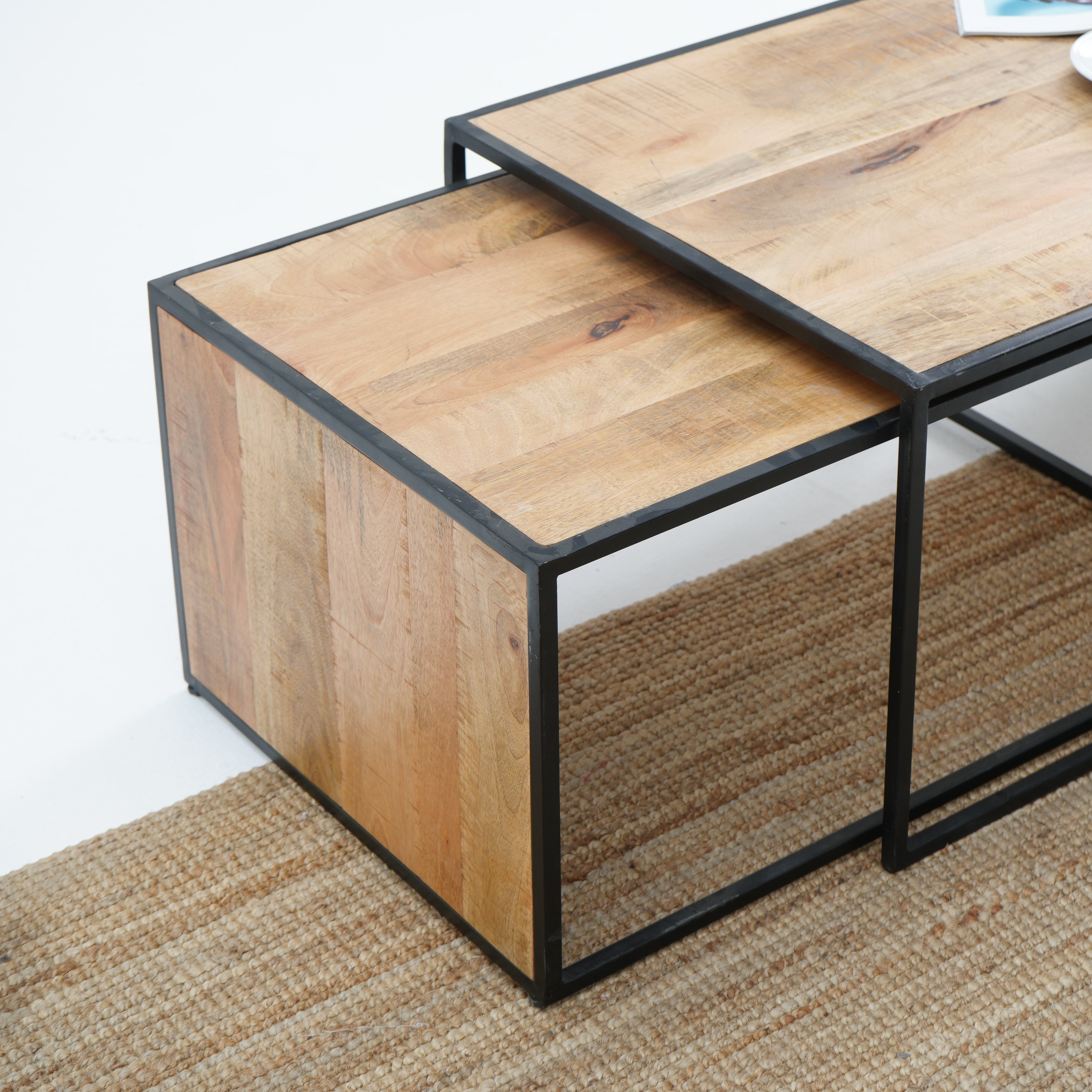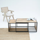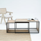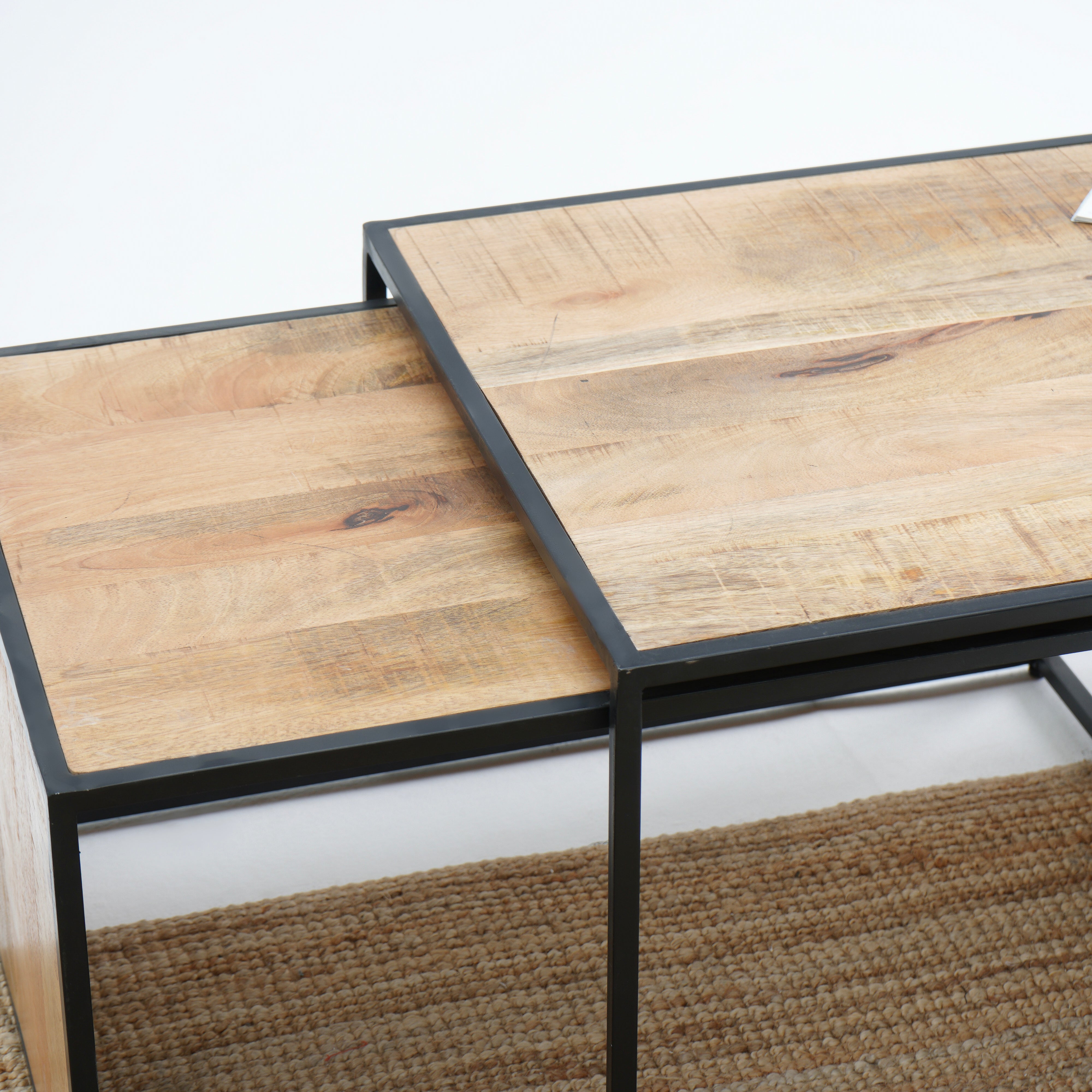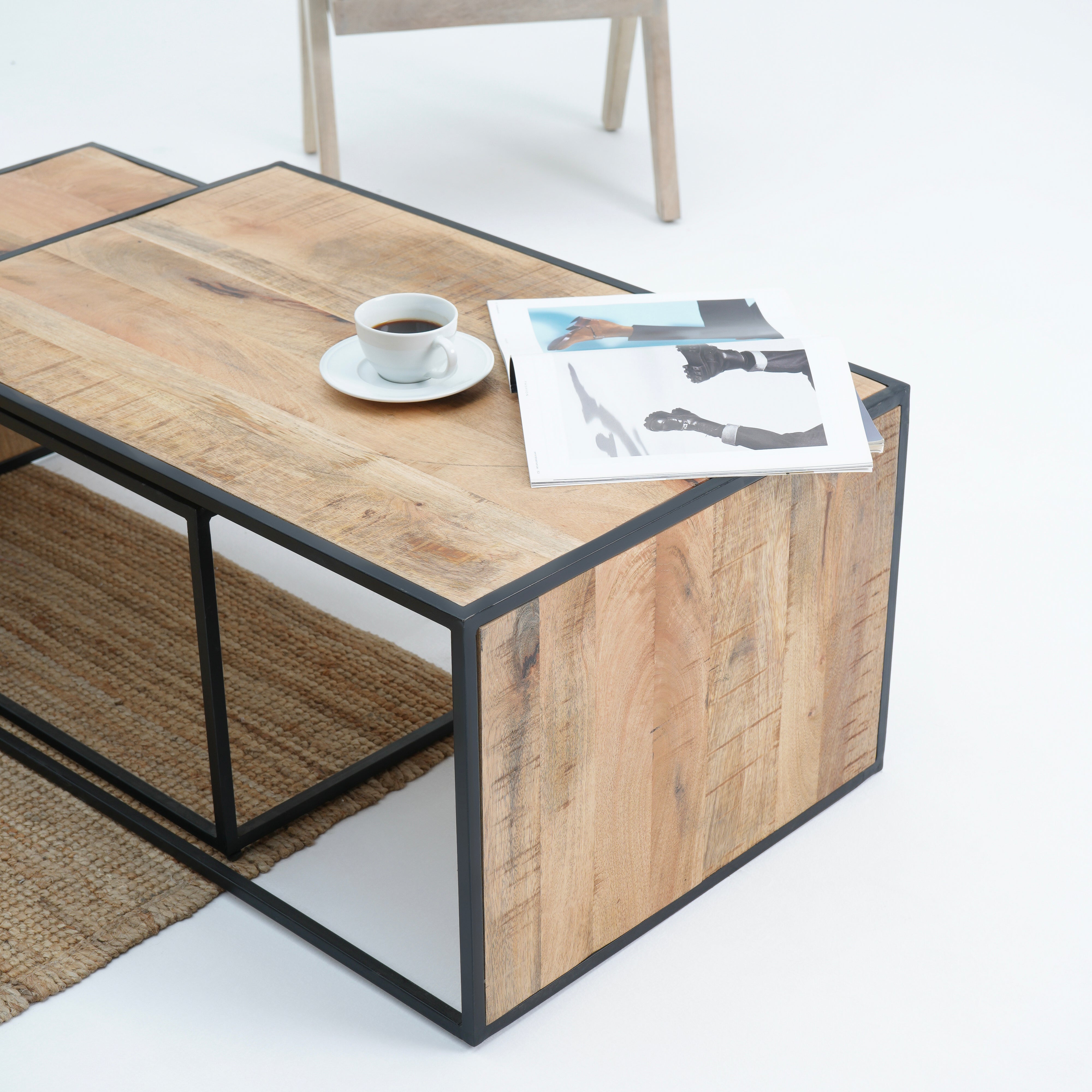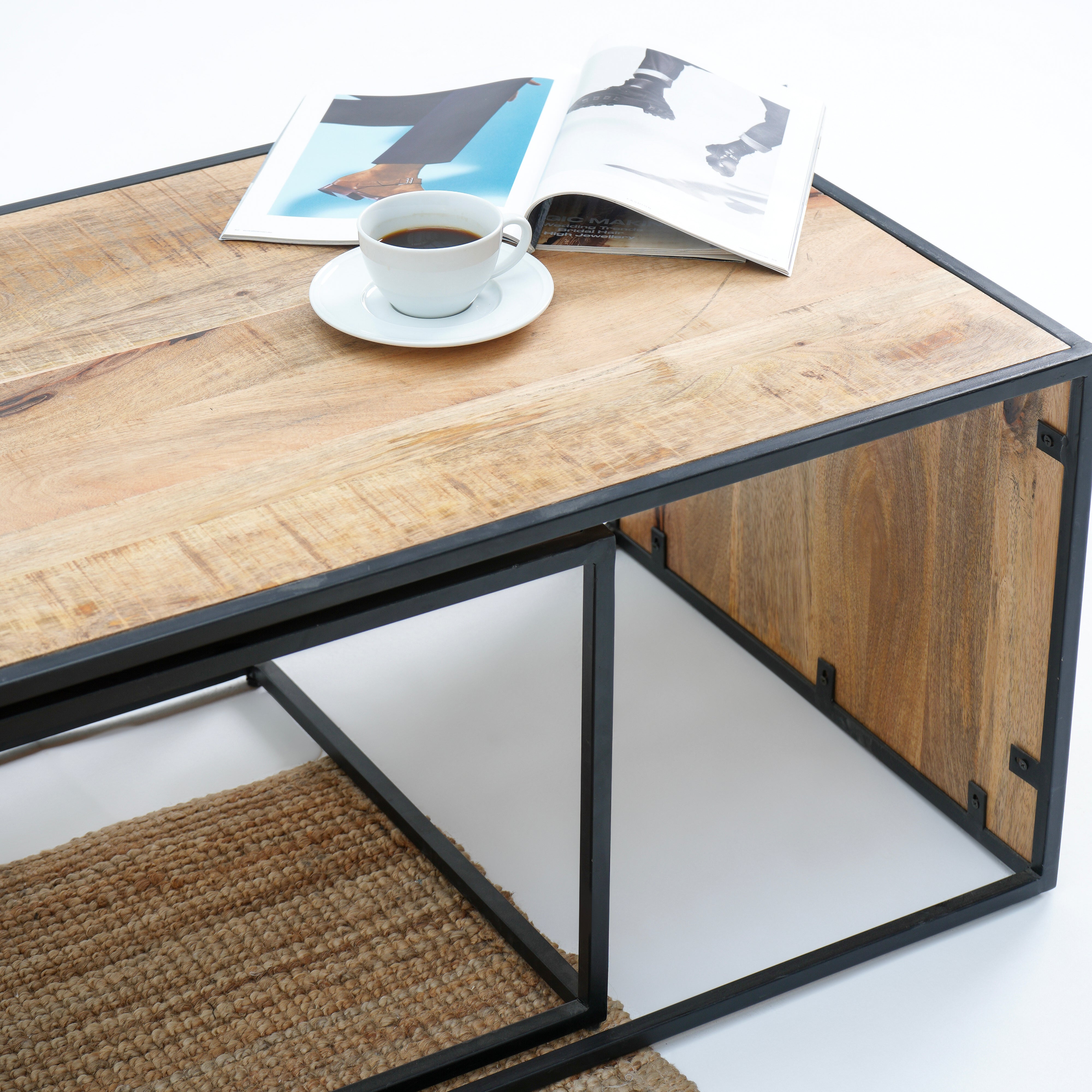 طاولة قهوة خشبية من خشب البلوط والحديد وخشب الوحدة