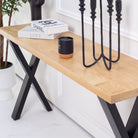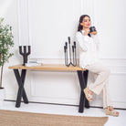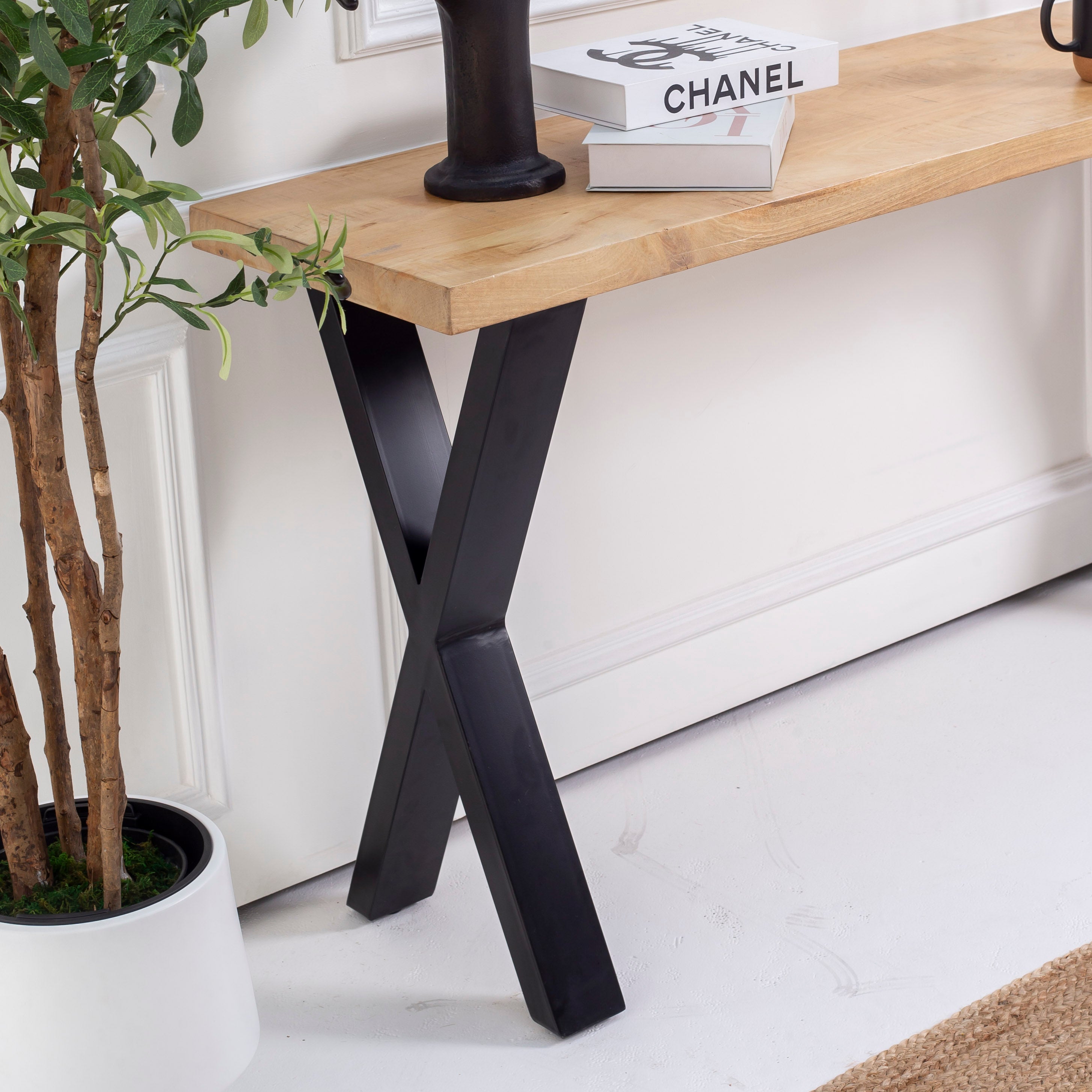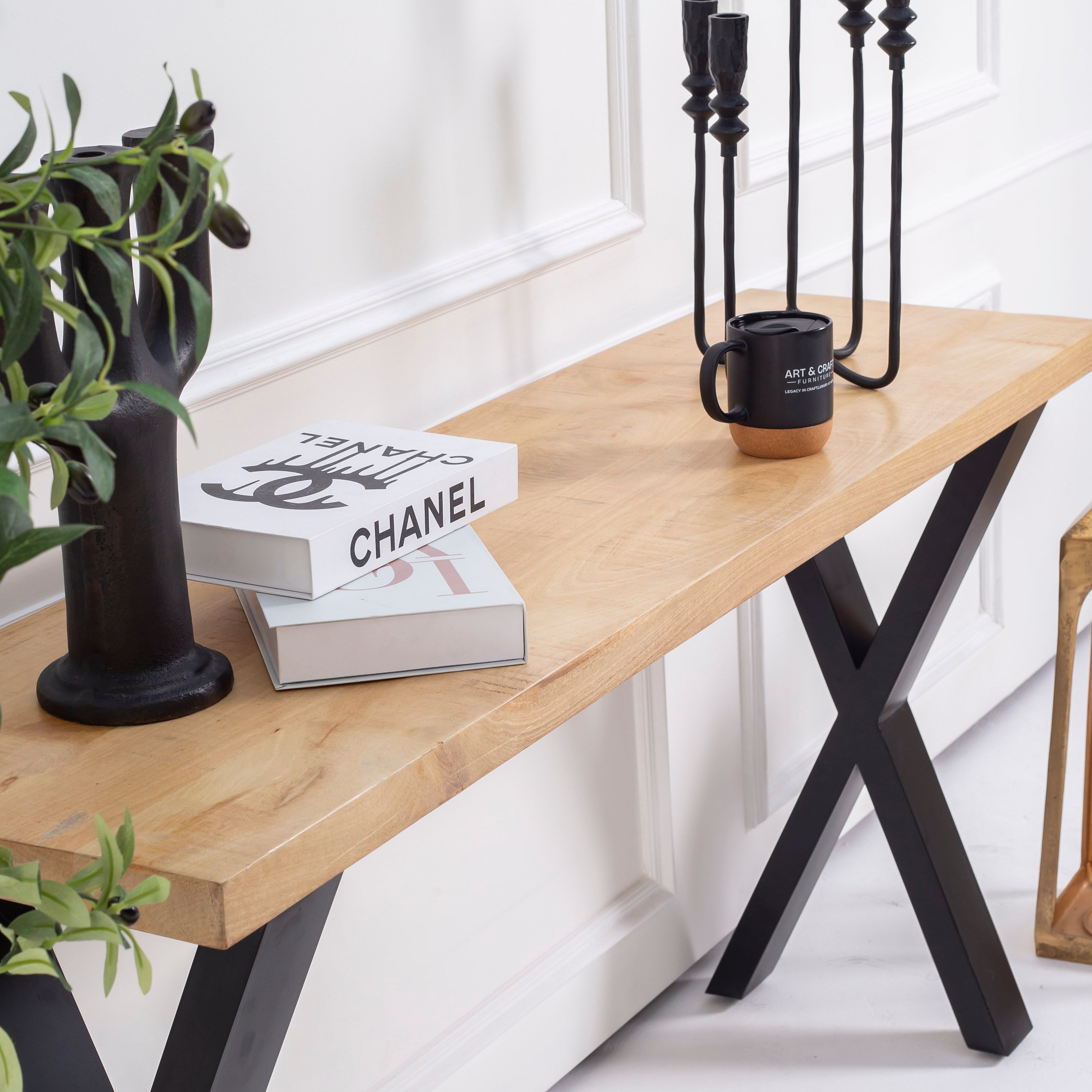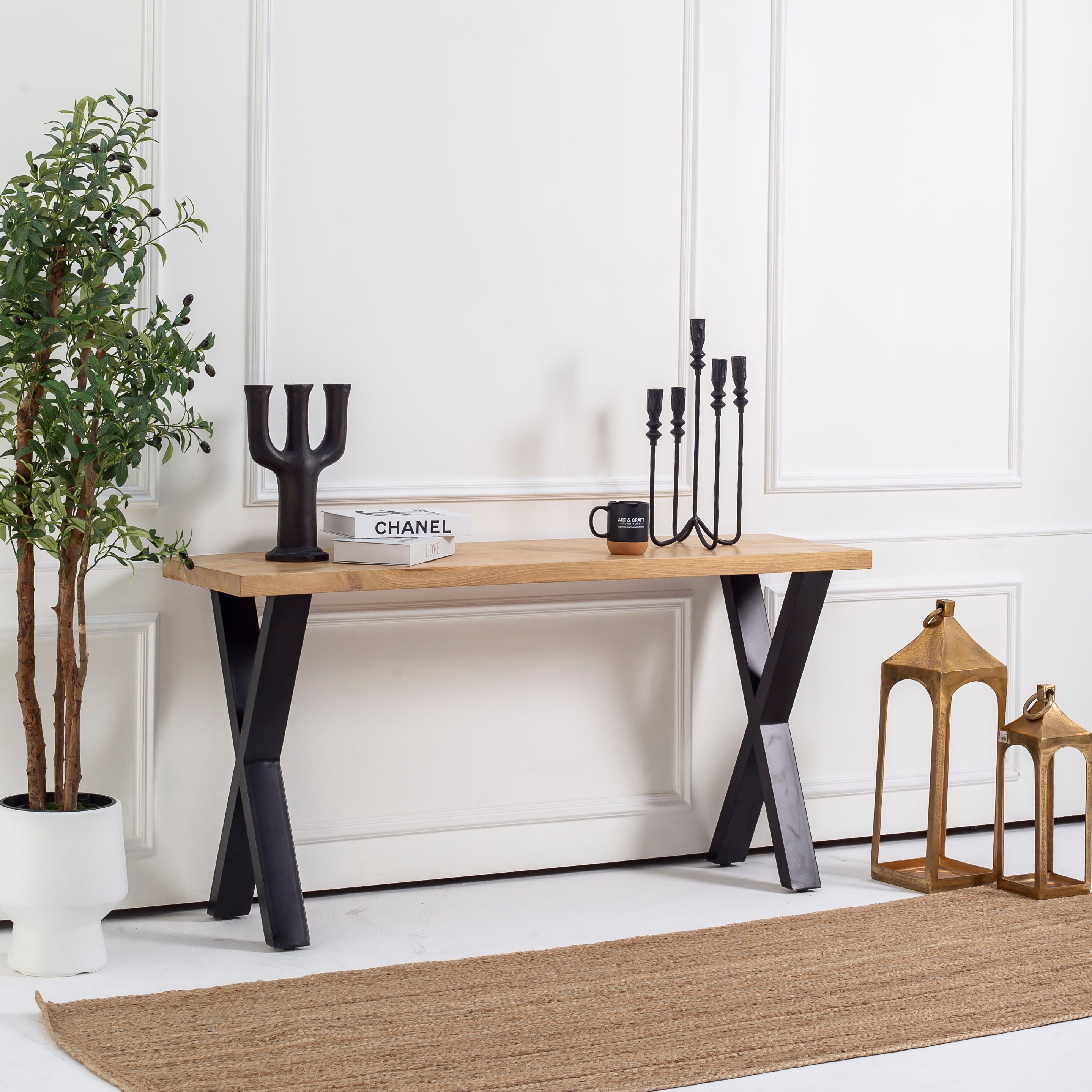 مصنوعة يدويًا من خشب المانجو الصلب المستورد من الهند، تجمع طاولة الكونسول الأنيقة هذه بين سحر الريف والتصميم العصري. يضفي إطارها المميز على شكل حرف U وأرجلها على شكل حرف V مظهرًا معماريًا جذابًا يلفت الأنظار في أي مدخل أو غرفة معيشة. تحتفي كل قطعة بجمال حبيبات خشب المانجو الطبيعية وألوانه الدافئة، مما يجعلها قطعة مميزة تُثير الإعجاب وتعكس براعة الصنع والتصميم المستدام. مثالية لعرض مقتنياتك الثمينة أو لإضفاء لمسة من الأناقة البسيطة على ديكور منزلك.