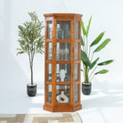 تجمع خزانة العرض الزجاجية الركنية الأنيقة بين الحرفية الهندية التقليدية والفخامة العملية. مصنوعة يدويًا من خشب الساج الفاخر، تتميز هذه الخزانة الركنية بواجهة زجاجية راقية تعرض مقتنياتك الثمينة بوضوح وأناقة. يوفر الإطار الخشبي المتين ثباتًا، بينما تتيح الألواح الزجاجية رؤية واضحة من زوايا متعددة. تُعد هذه الخزانة المصنوعة يدويًا مثالية لعرض المقتنيات الفنية أو القطع الزخرفية، فهي تضفي لمسة دافئة ومميزة على أي غرفة. استثمار في حرفية عالية الجودة ترتقي بتصميمك الداخلي.