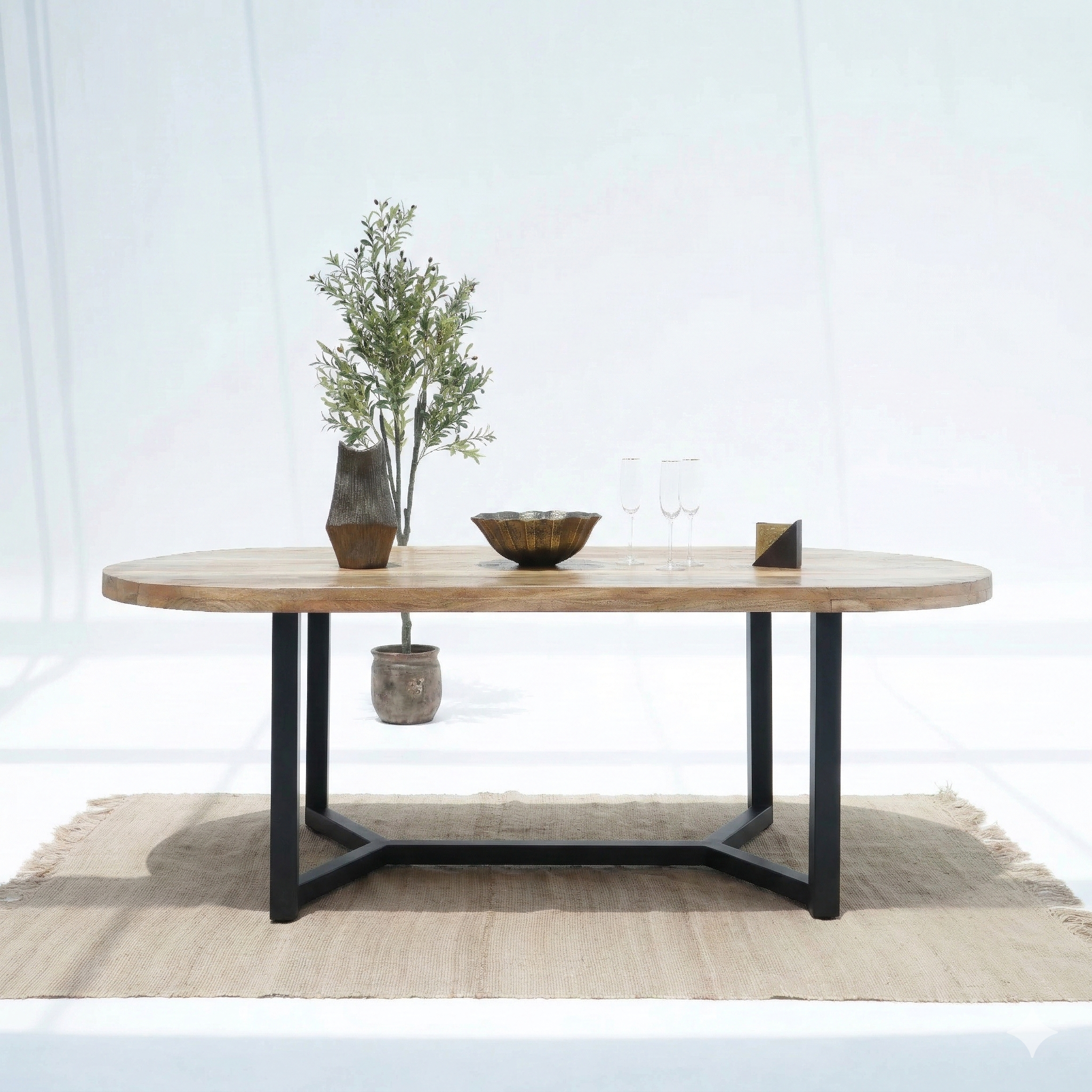 تتميز طاولة الطعام "برلين لوفت" من "آرت آند كرافت فرنتشر" بسطح من خشب المانجو وأرجل معدنية أنيقة، بأبعاد 220 سم طولاً × 100 سم عرضاً × 77 سم ارتفاعاً. تتميز هذه الطاولة بالمتانة والأناقة، وهي مصنوعة من الخشب الصلب وتأتي مع ضمان لمدة عام.