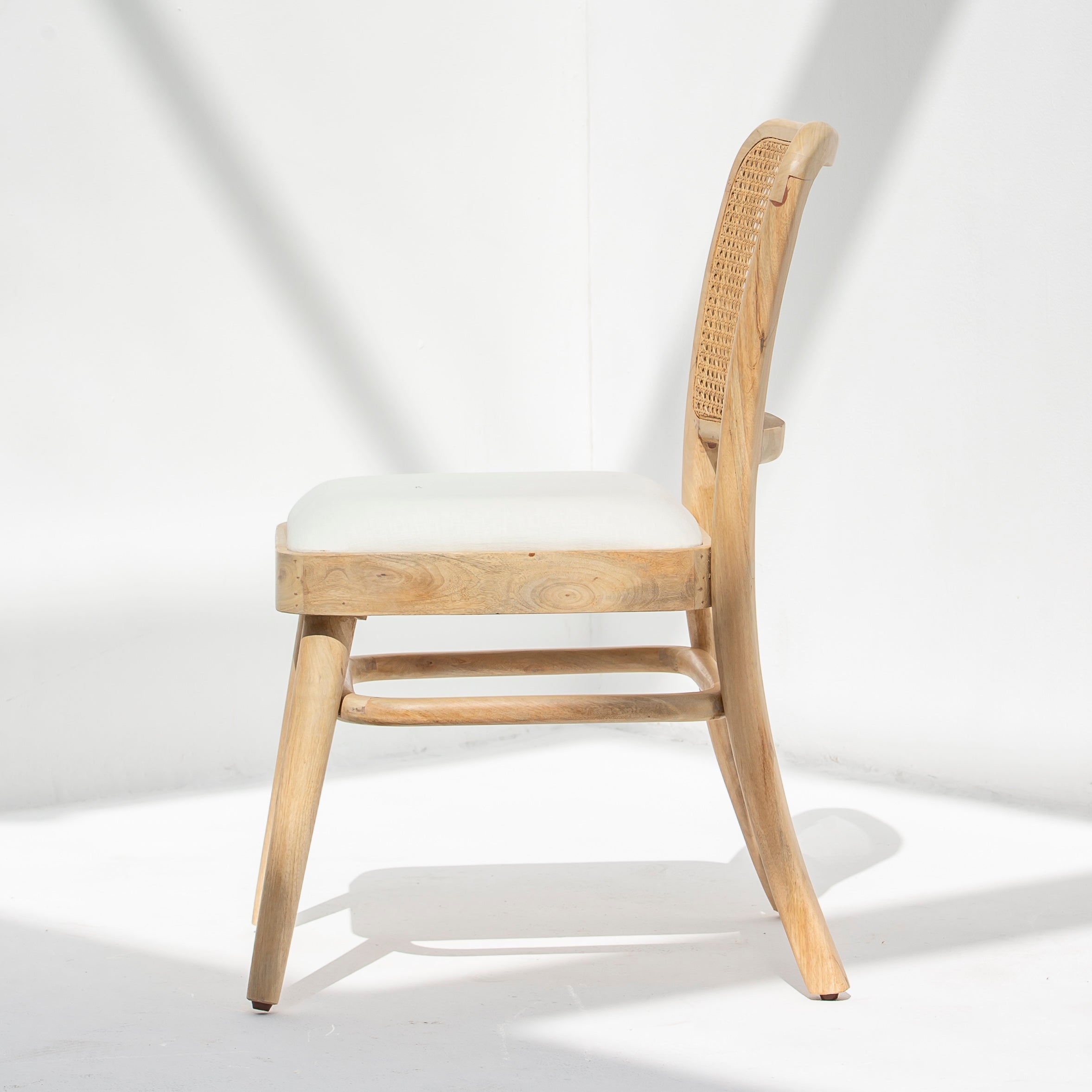كرسي طعام كانوفيا المصنوع من الخيزران: يتميز هذا الكرسي بتصميم أنيق وإطار خشبي مصنوع يدويًا مع لمسات من الخيزران. يوفر الكرسي راحةً وفخامةً بفضل عرض مقعده البالغ 45 سم وارتفاعه البالغ 50 سم. صُنع في الهند، ويشمله ضمان لمدة عام.
