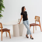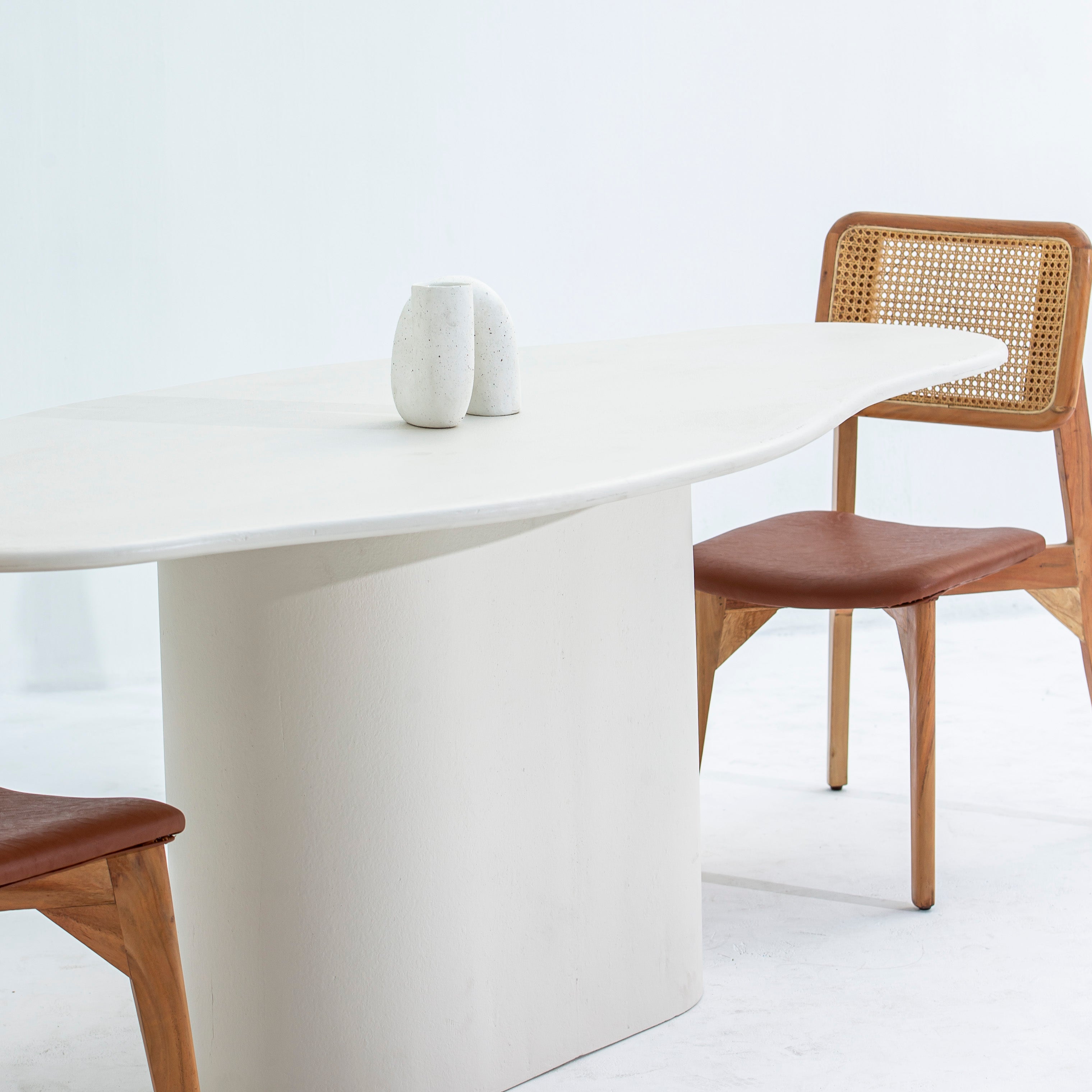 مستوحاة من مبادئ التصميم الاسكندنافي في منتصف القرن العشرين، تتميز طاولة الطعام هذه بسطح منحوت بانسيابية يضفي لمسة ناعمة على الأشكال المستطيلة التقليدية. تخلق الحواف المنحنية حركة بصرية مع الحفاظ على وظائفها العملية لتناول الطعام اليومي. صُنعت الطاولة بعناية فائقة لتراث التصميم الدنماركي الأصيل، ويكمل تصميمها الانسيابي الديكورات الداخلية البسيطة والانتقائية على حد سواء. يوفر سطحها الواسع مساحة مثالية للتجمعات العائلية والضيافة، بينما تضفي قاعدتها المنحوتة أناقة هيكلية مميزة. قطعة استثمارية خالدة تجمع بين الشكل والوظيفة برقيٍّ أنيق.