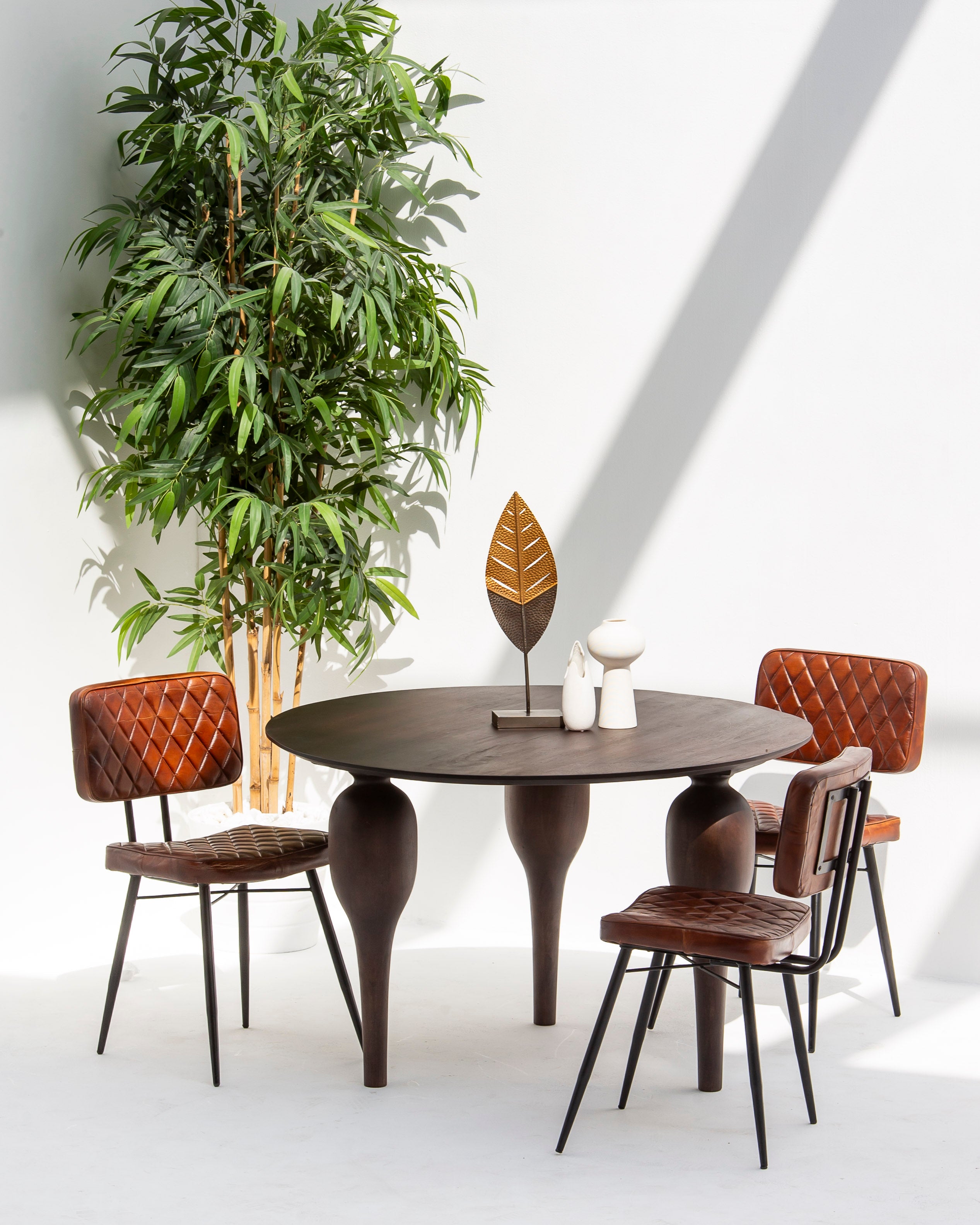 ارتقِ بمساحة طعامك مع طاولة الطعام الدنماركية المستديرة الرائعة هذه، تحفة فنية تجمع بين التصميم البسيط والأناقة العملية. مصنوعة من اللون البني الداكن الغني، تتميز هذه الطاولة بقاعدة ثلاثية الأرجل، وهي سمة مميزة للأثاث الاسكندنافي الأصيل، ما يوفر مساحة واسعة للأرجل مع ثبات استثنائي. سطح الطاولة الدائري يُشجع على الحوارات الحميمة ويستوعب الضيوف بسهولة من جميع الزوايا. صُنعت هذه القطعة بدقة وحرفية تشتهر بها صناعة الأثاث الدنماركي، وهي تُكمل بسلاسة الديكورات الداخلية العصرية والكلاسيكية على حد سواء. استثمار خالد يُحوّل أي غرفة طعام إلى مساحة راقية للتجمعات.