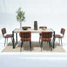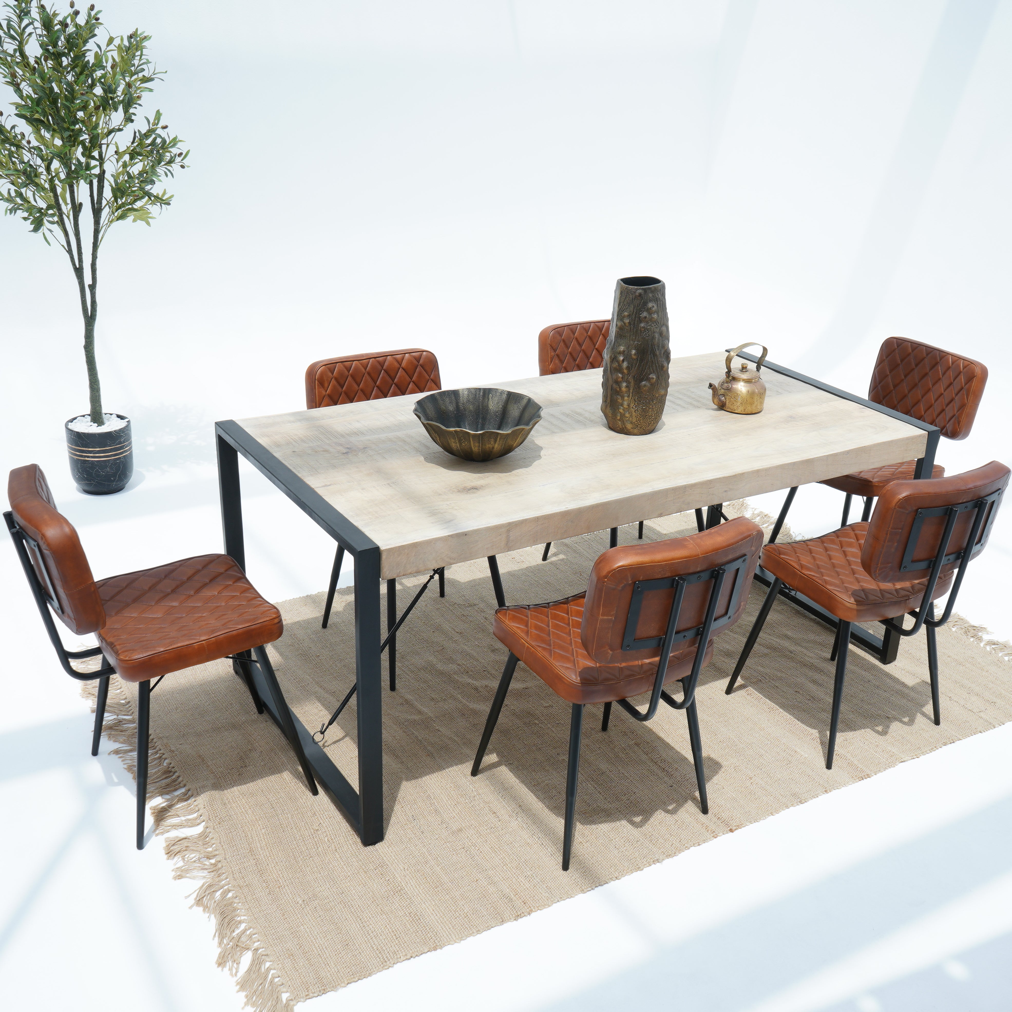 تتميز طاولة الطعام "برلين بيكون" من "آرت آند كرافت فرنتشر" بسطح خشبي متين ذي مظهر طبيعي وقواعد معدنية أنيقة. يبلغ مقاسها 180 سم طولاً × 90 سم عرضاً × 76 سم ارتفاعاً، وتجمع بين المتانة الصناعية والجمال الطبيعي، وتأتي مع ضمان لمدة عام.