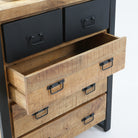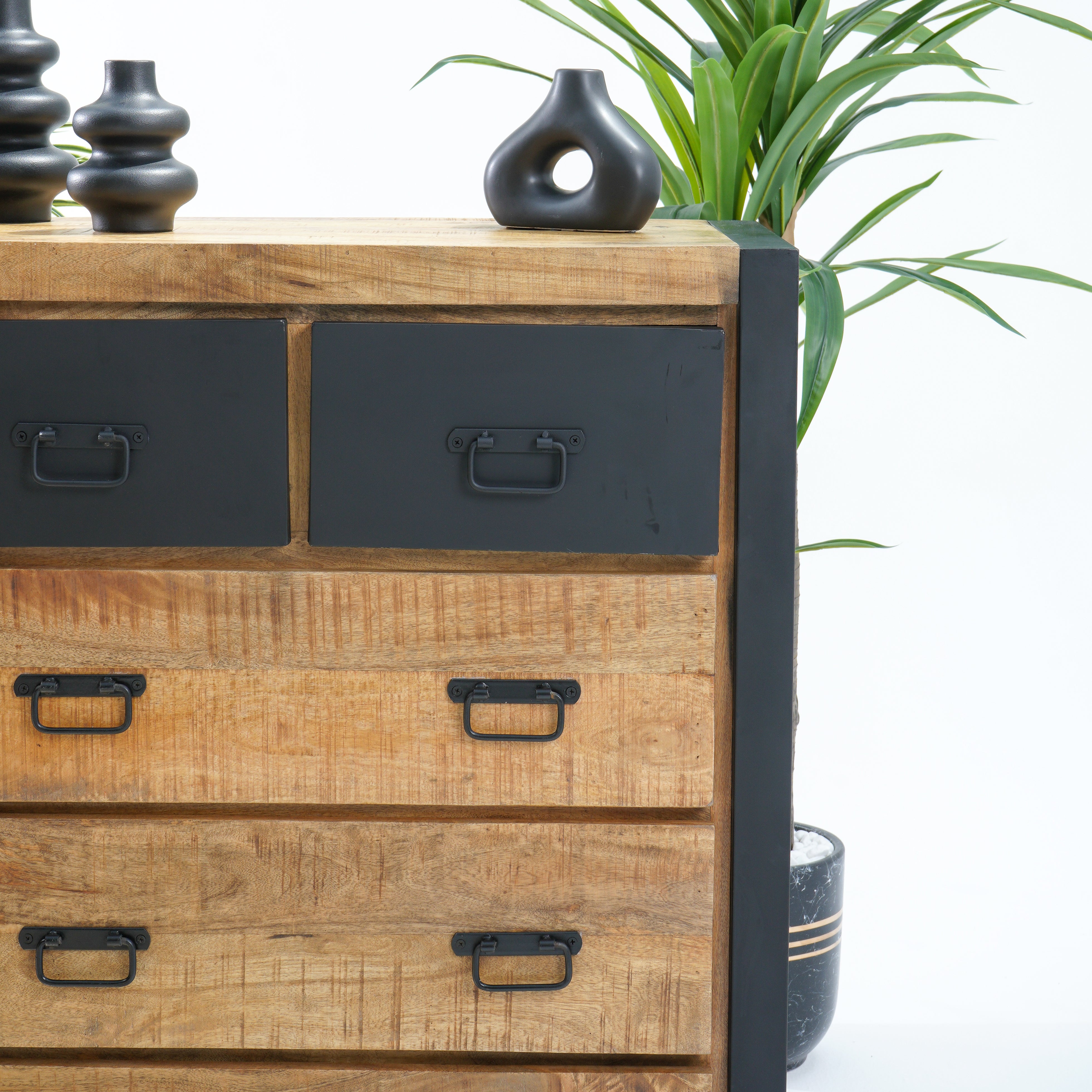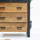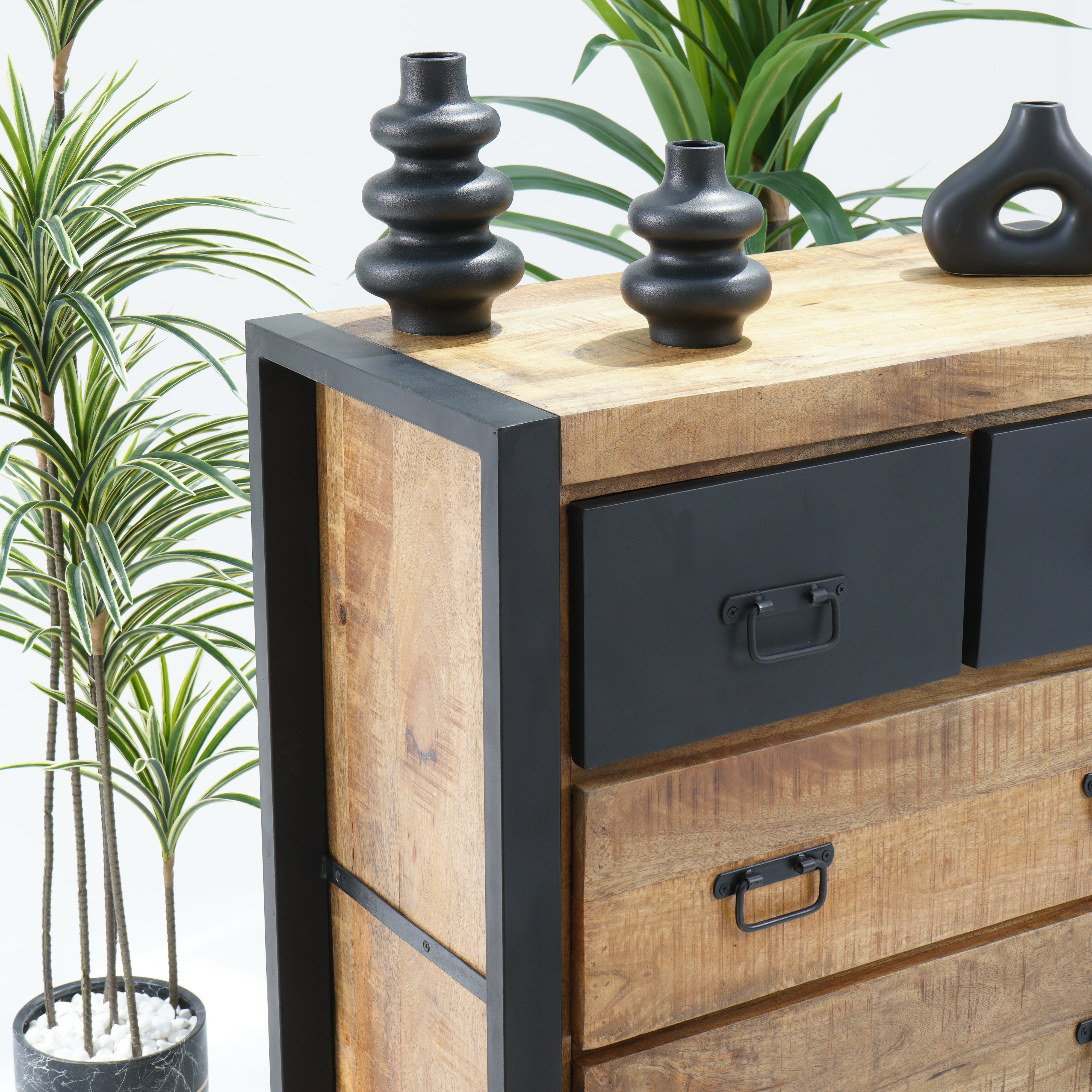 أضف لمسةً من الرقي إلى مساحتك مع خزانة الأدراج الصناعية "مانجو إنفي" ذات الثمانية أدراج. مصنوعة من خشب المانجو الفاخر والمتين، ومزينة بتفاصيل معدنية أنيقة، تجمع هذه الخزانة بين الدفء واللمسة الصناعية العصرية. توفر أدراجها الثمانية الواسعة مساحة تخزين كبيرة، مثالية لتنظيم أغراضك الأساسية بأناقة. تصميمها المميز وجودة صناعتها العالية تجعلها قطعةً فريدةً لأي منزل عصري. عزز ديكور منزلك بهذه الإضافة العملية واللافتة للنظر.