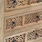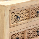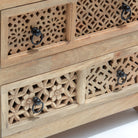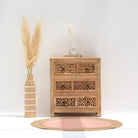 تُجسّد خزانة الأدراج الخشبية المنحوتة من سييرا براعة الحرفيين الهنود التقليديين، فهي مصنوعة يدويًا من خشب المانجو الصلب بتفاصيل منحوتة دقيقة. تجمع هذه الخزانة ذات الأدراج الثلاثة بين التصميم العملي والجاذبية الفنية، حيث تتميز بنقوش خشبية طبيعية وزخارف منحوتة يدويًا تُبرز مهارة الحرفيين. يوفر كل درج مساحة تخزين واسعة، بينما يضمن هيكل خشب المانجو المتين المتانة وطول العمر. تُضفي الألوان الدافئة والملمس الطبيعي للخشب الصلب طابعًا أصيلًا على أي مساحة داخلية، مما يجعل هذه الخزانة حلًا عمليًا للتخزين ورمزًا للفن الثقافي.