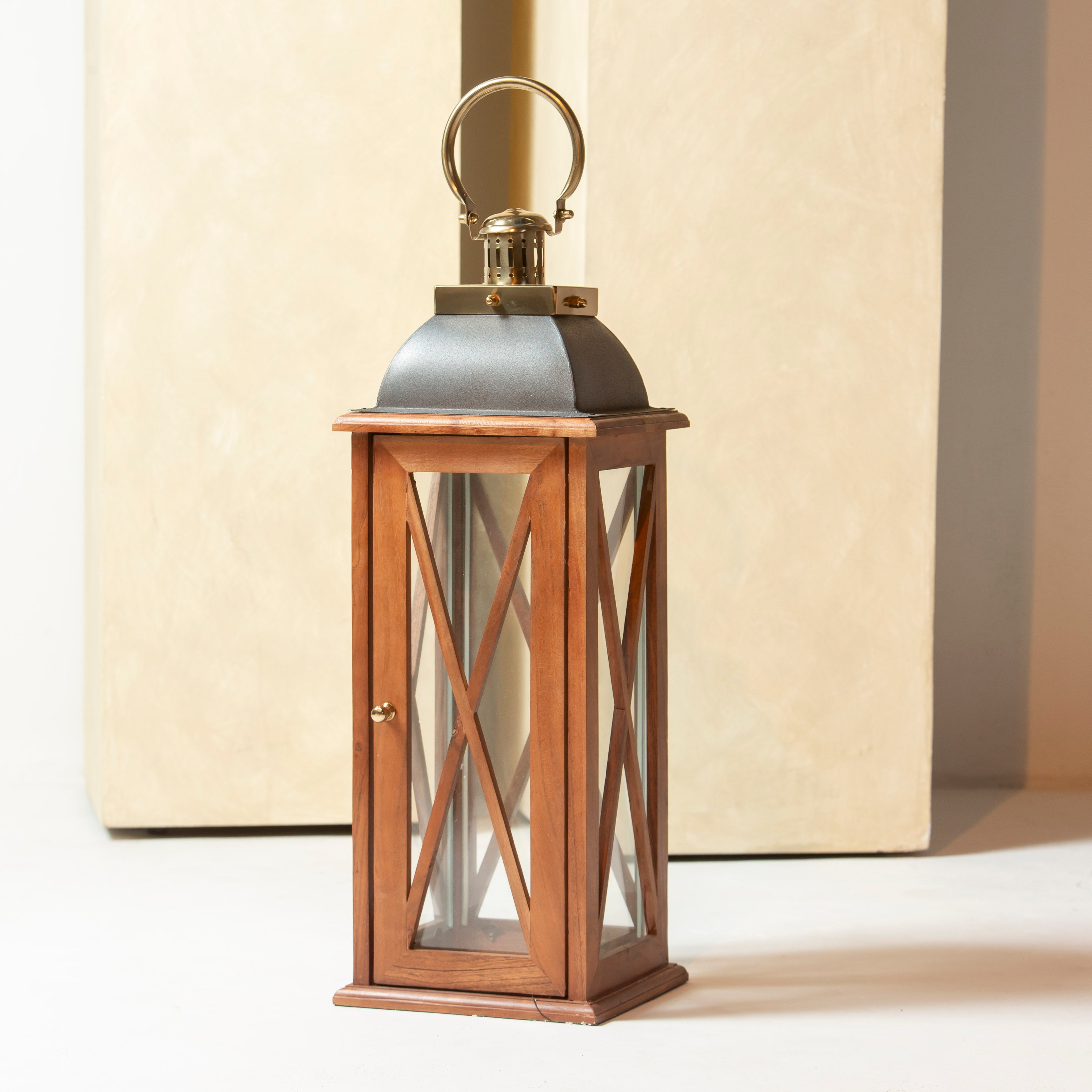 بفضل لمساته الذهبية والسوداء ولمسات الخشب الطبيعي، يضفي هذا الفانوس جواً دافئاً على أي غرفة. الأبعاد: 25.40 × 60.96 سم.