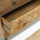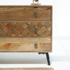 نقدم لكم خزانة الأدراج الثلاثية من خشب المانجو من بيرث هيلز، إضافة أنيقة وعملية لأي مساحة. مصنوعة من خشب المانجو الفاخر، تتميز بلمسة نهائية طبيعية تعزز متانتها ودفئها. توفر الأدراج الثلاثة الواسعة مساحة تخزين وفيرة مع الحفاظ على تصميم أنيق. مثالية للديكورات الداخلية العصرية والكلاسيكية على حد سواء، تجمع هذه الخزانة بين العملية والجمال الخالد. ارتقِ بديكور منزلك بتصميمها الأنيق والمتين.
