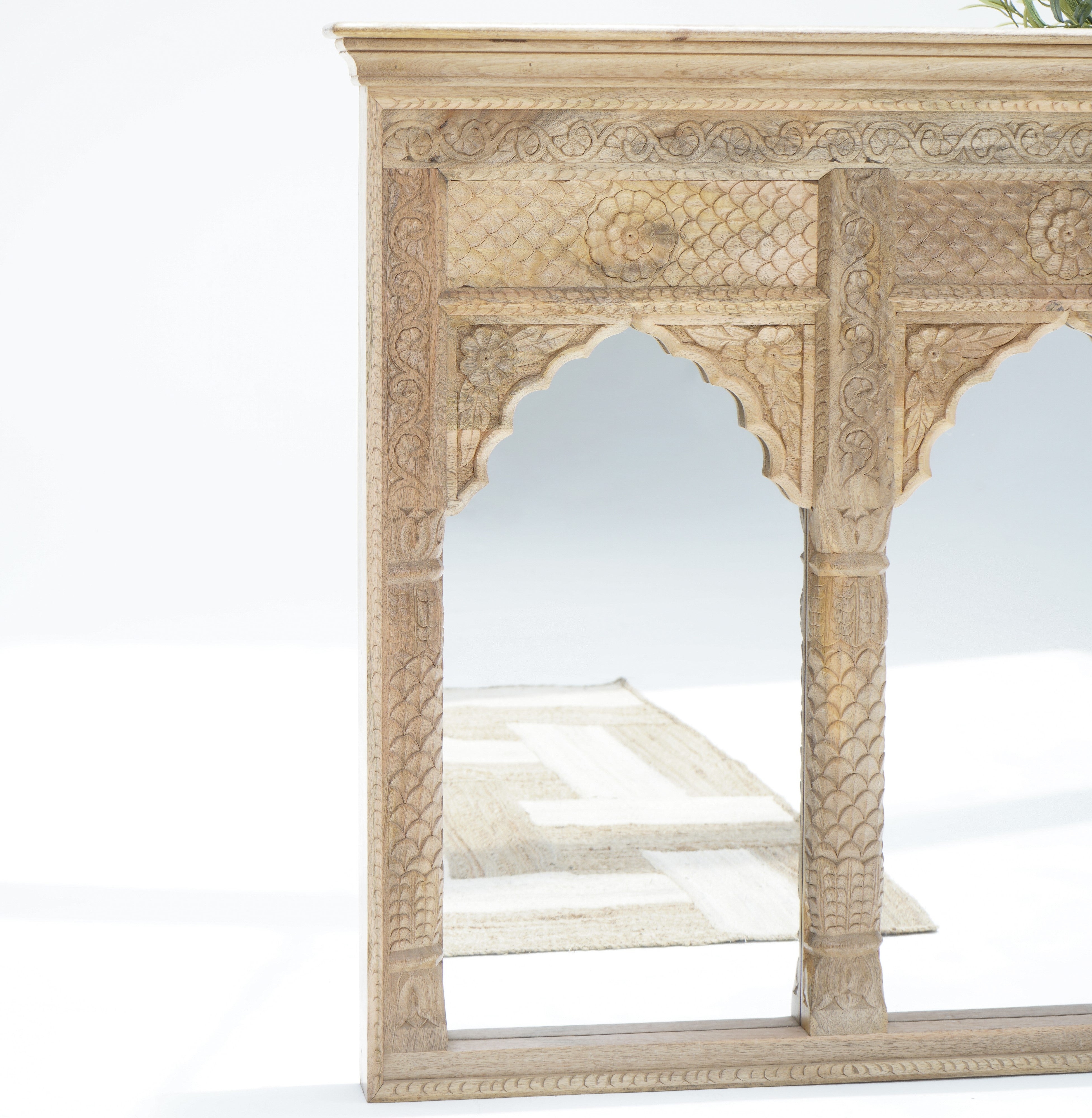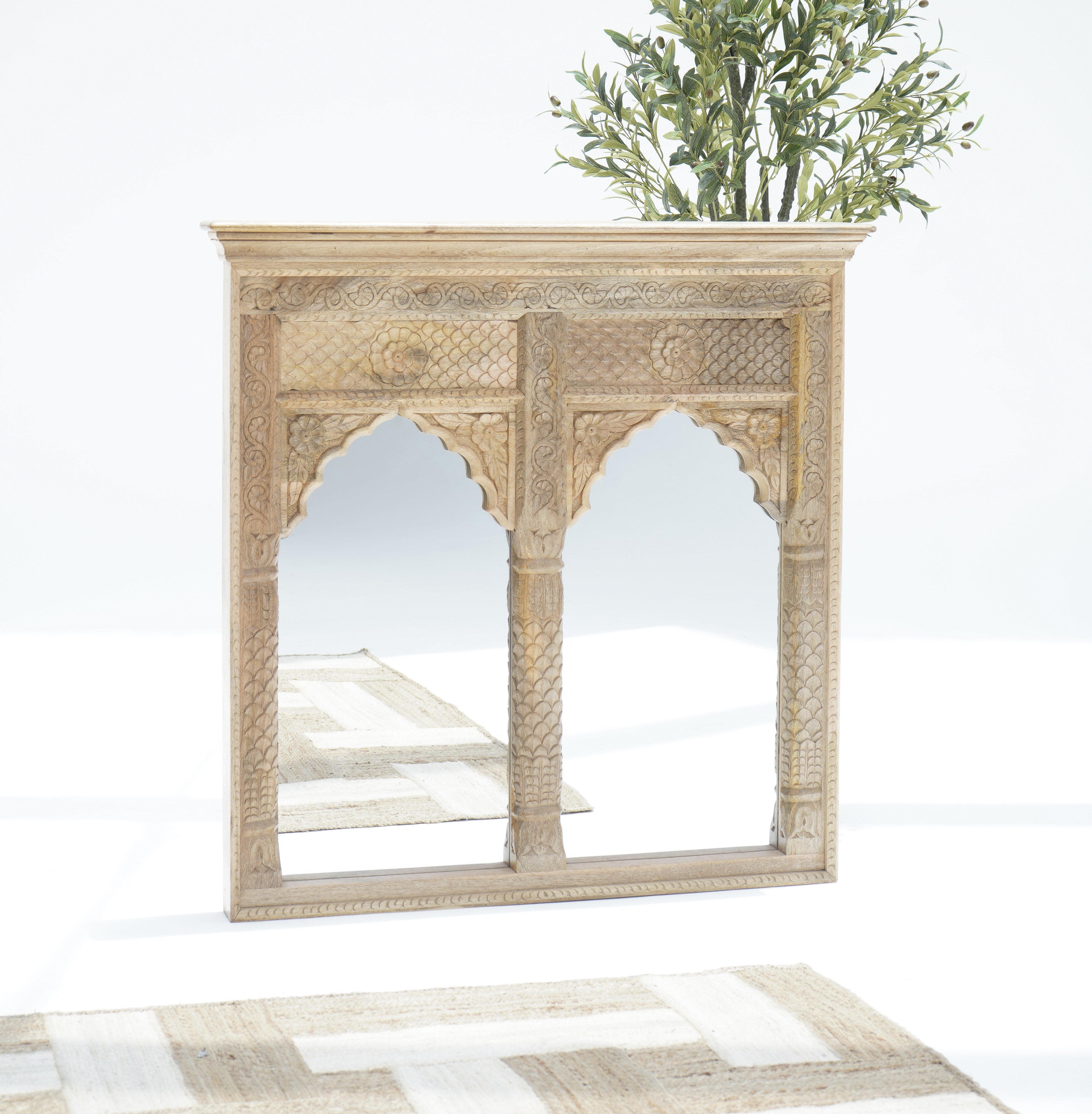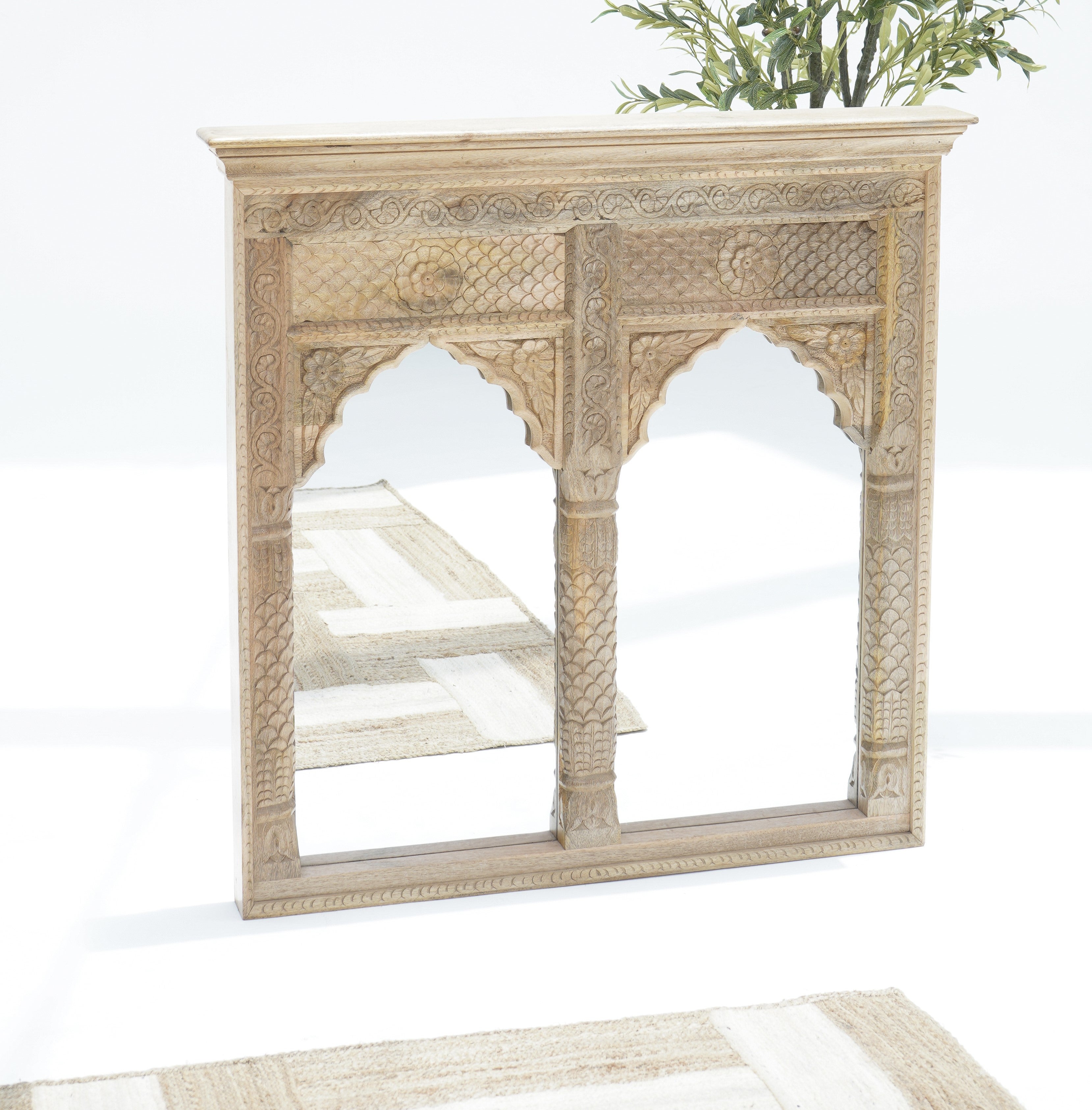 إطار مرآة محراب بريليانس (ارتفاع ١٠٨ × عرض ١٠٨ سم): بتصميمه الأنيق المصنوع من الخشب الصلب، يضفي هذا الإطار لمسة من الرقي على أي غرفة. مدعوم بضمان لمدة عام، يجمع بين الجمال الخالد والجودة العالية.
