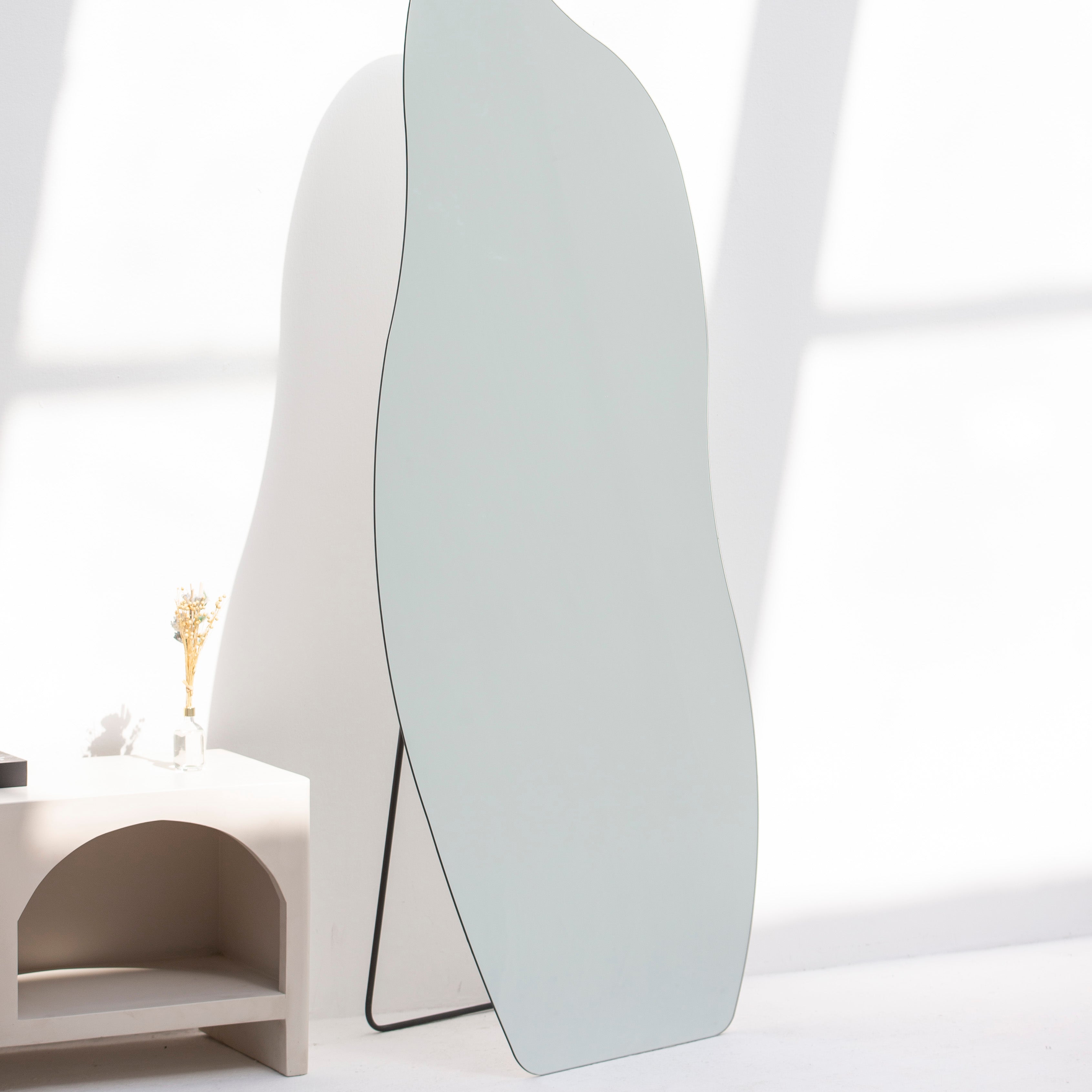 The Byron Curve Mirror Frame brings sculptural elegance to any room with its gracefully arched silhouette. Handcrafted with meticulous attention to detail, this artisanal piece features organic curves that soften architectural spaces while reflecting light beautifully. The frame's refined design complements both contemporary and classic interiors, making it a versatile statement piece. Perfect for creating visual interest above a console, in an entryway, or as a gallery wall focal point. A timeless addition that celebrates the art of thoughtful design.