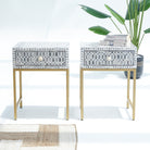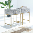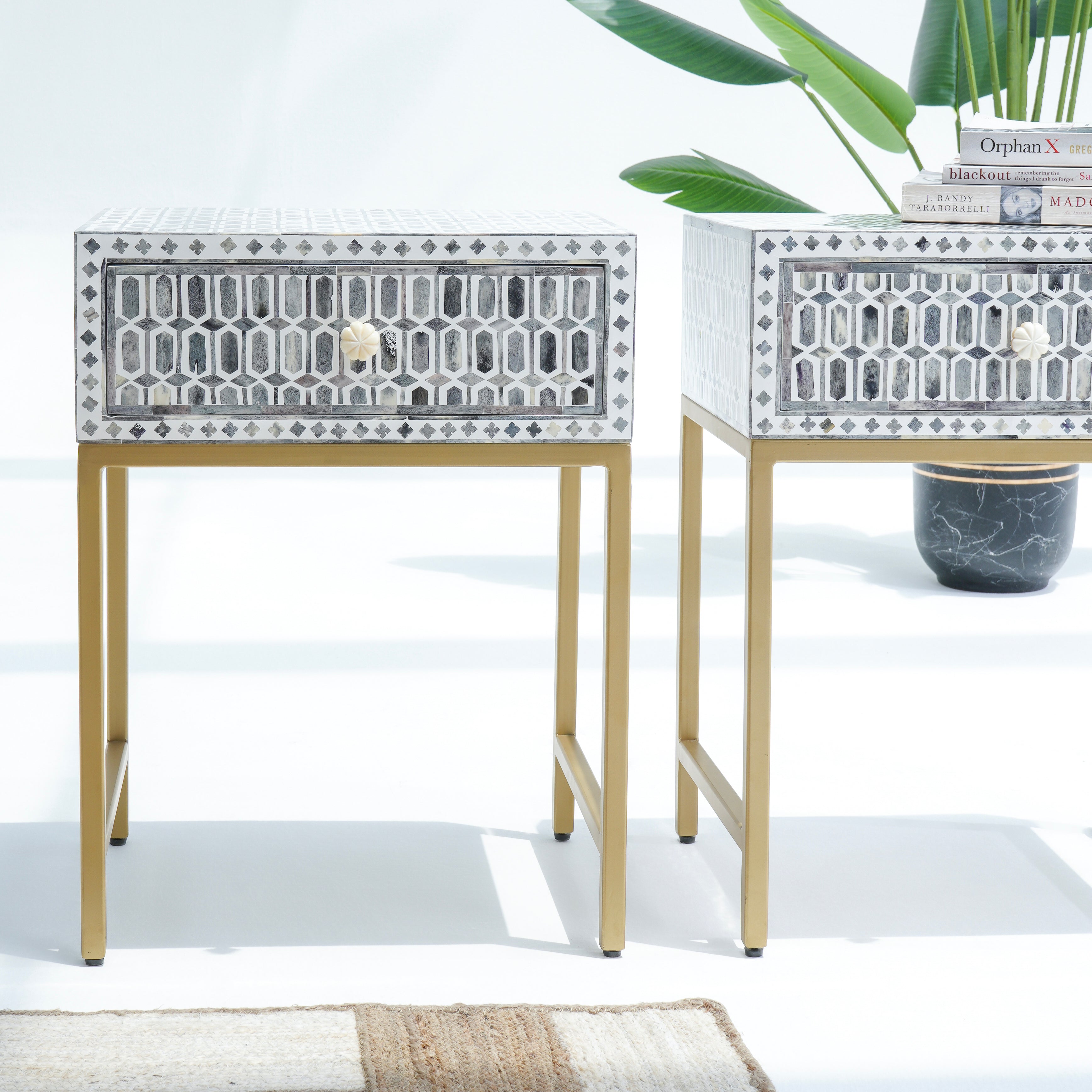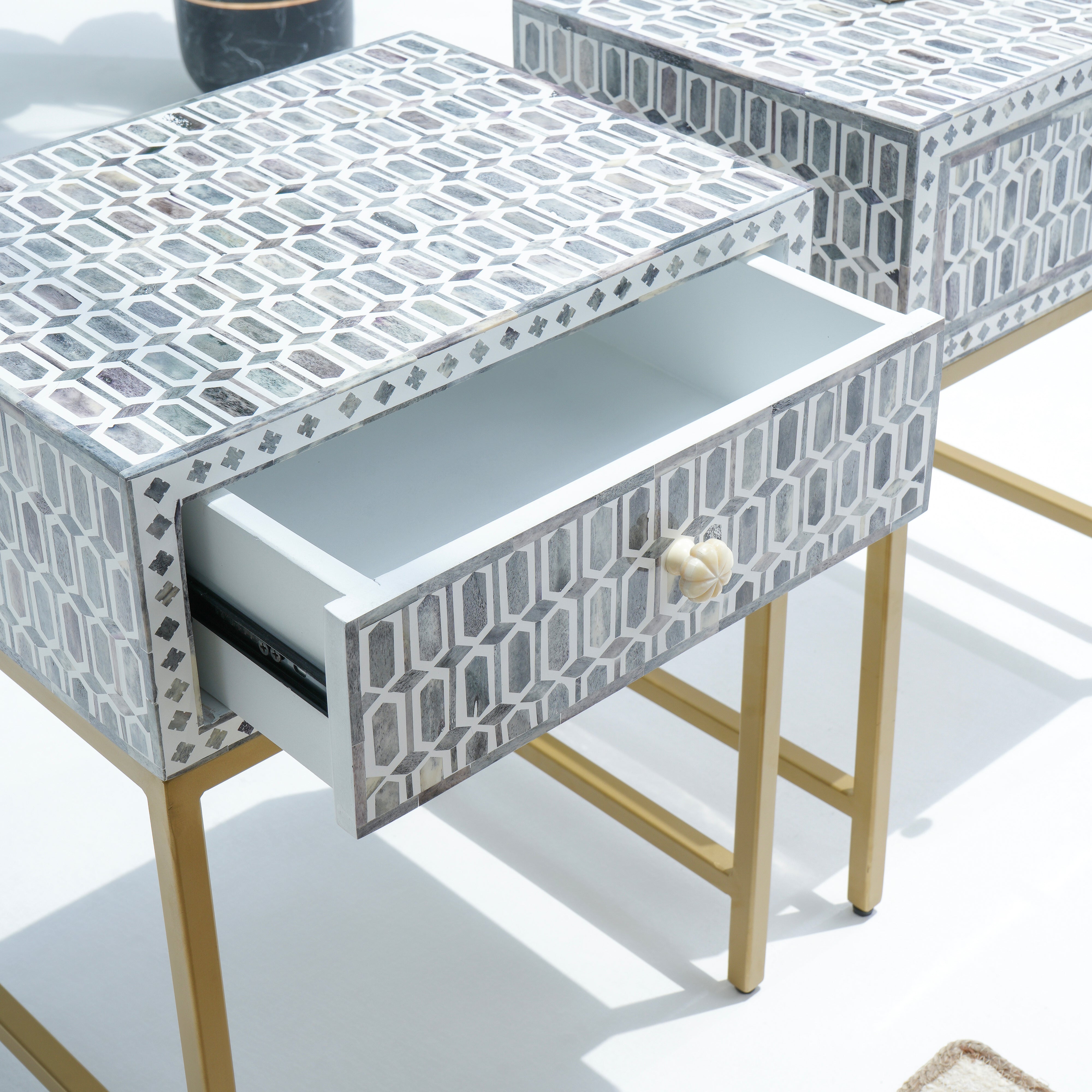 طاولة جانبية للسرير بلون رمادي فاتح مرصع