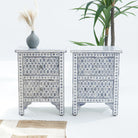طاولة جانبية للسرير بلون رمادي فاتح مرصع