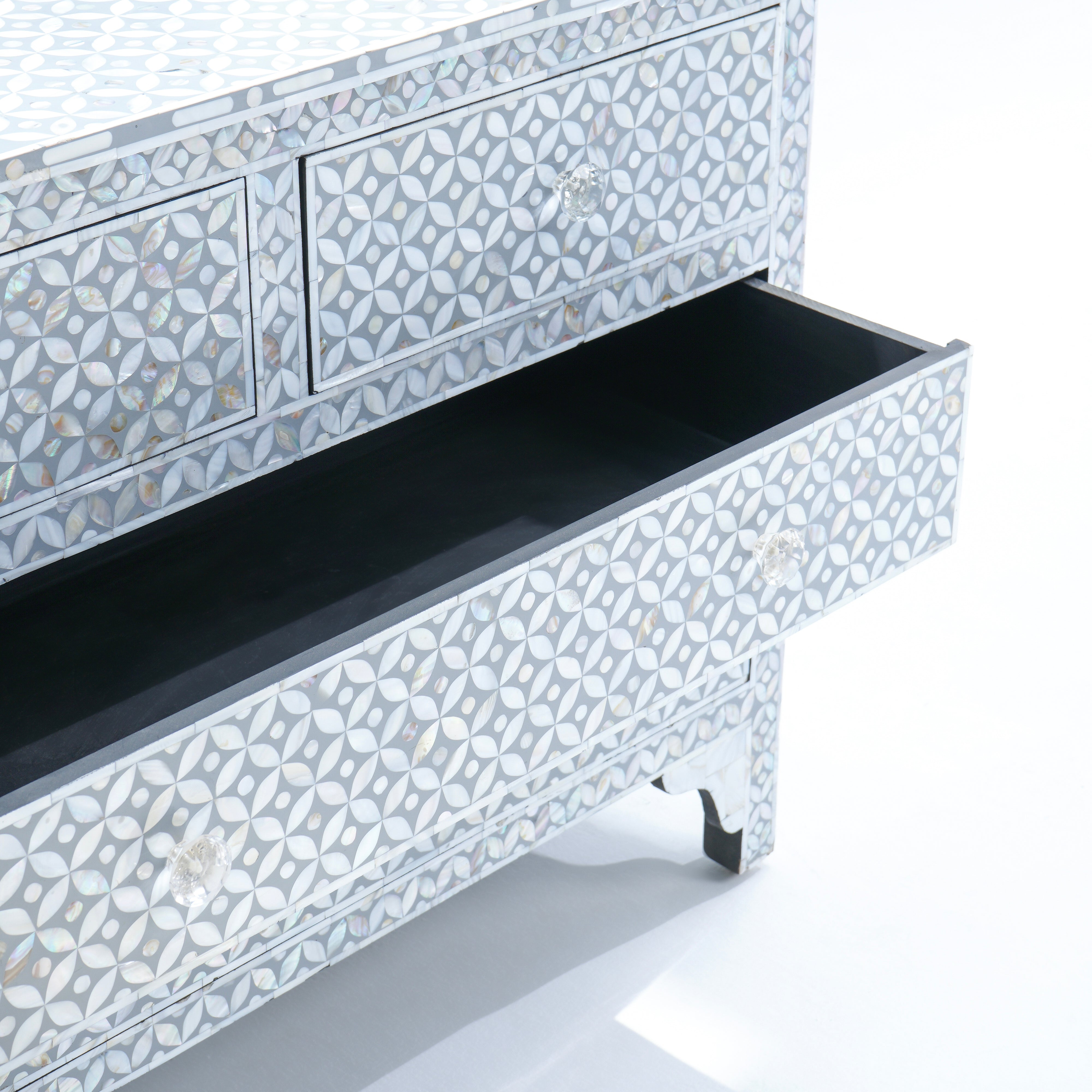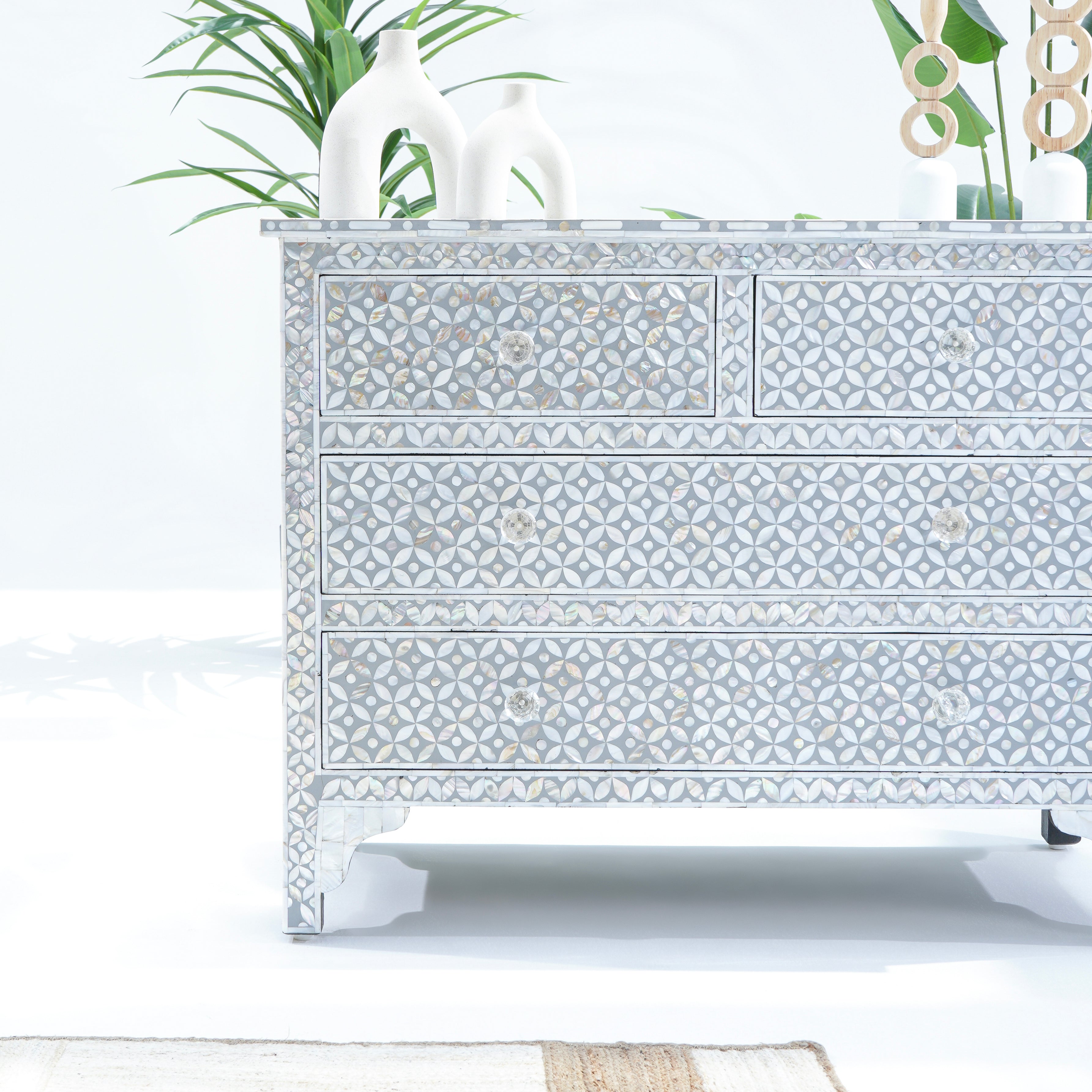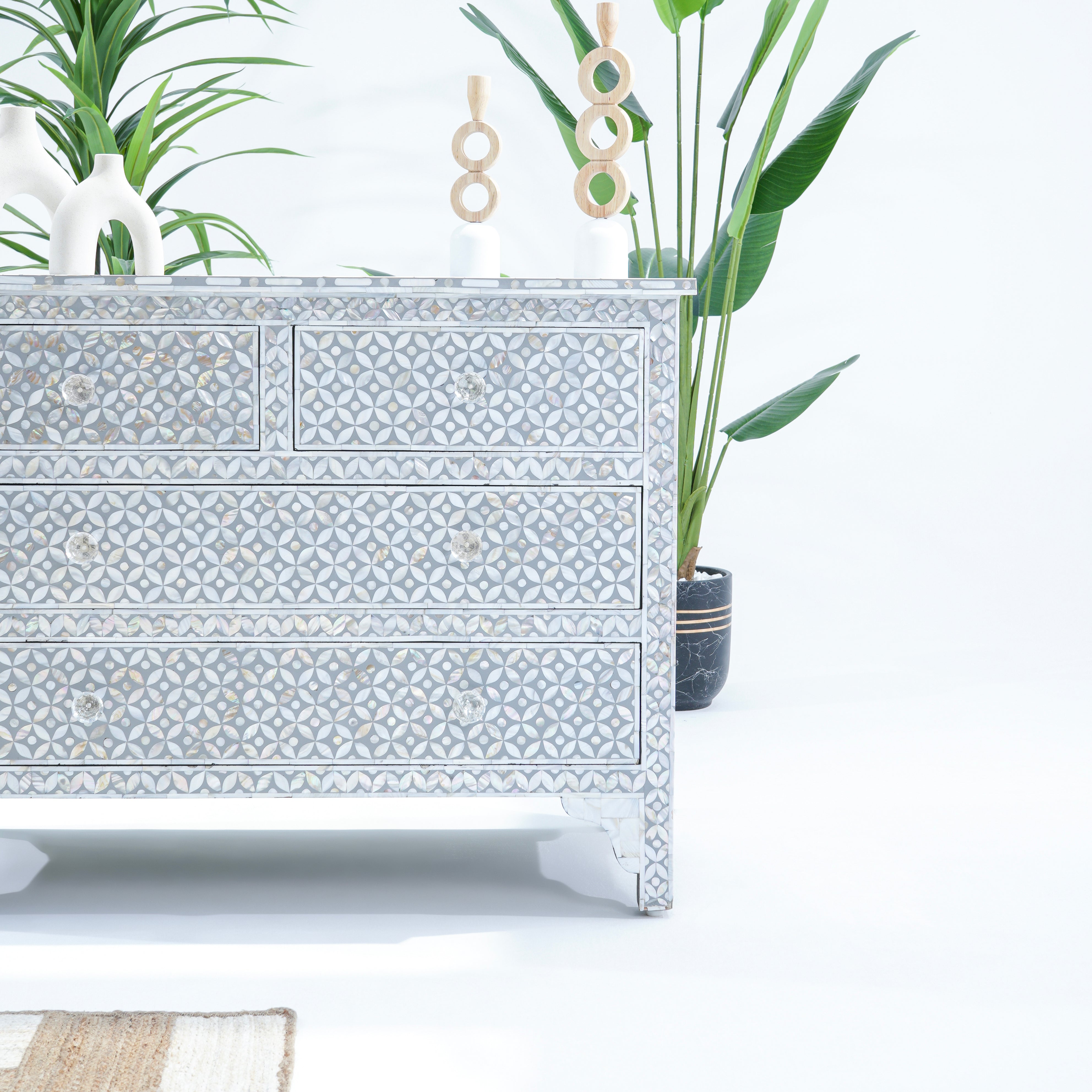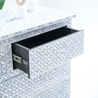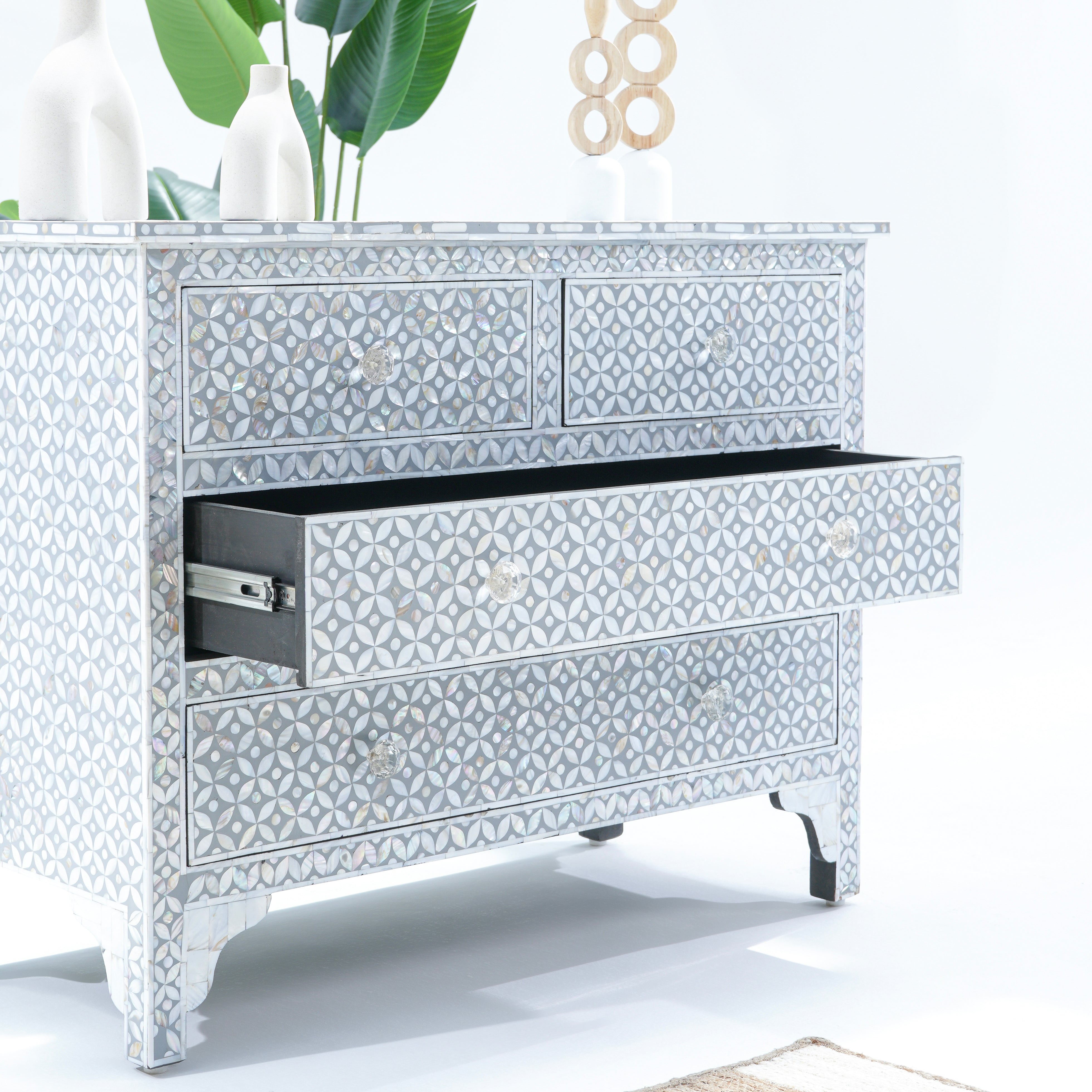 خزانة الأدراج الرمادية ذات الأدراج الأربعة، بتصميمها الأنيق، مثالية لتنظيم أغراضك. صُنعت في الهند، ومشمولة بضمان لمدة عام كامل لراحتك.