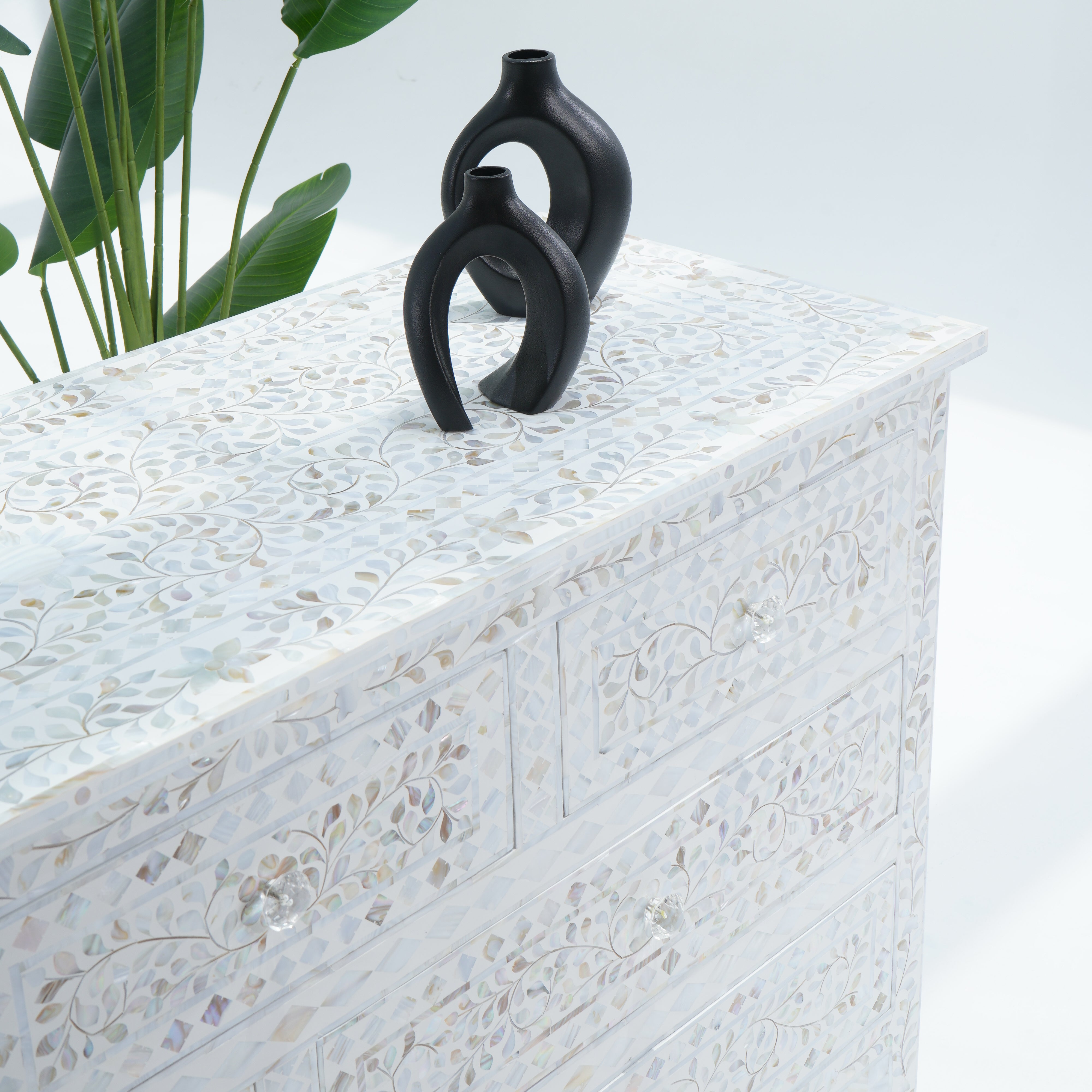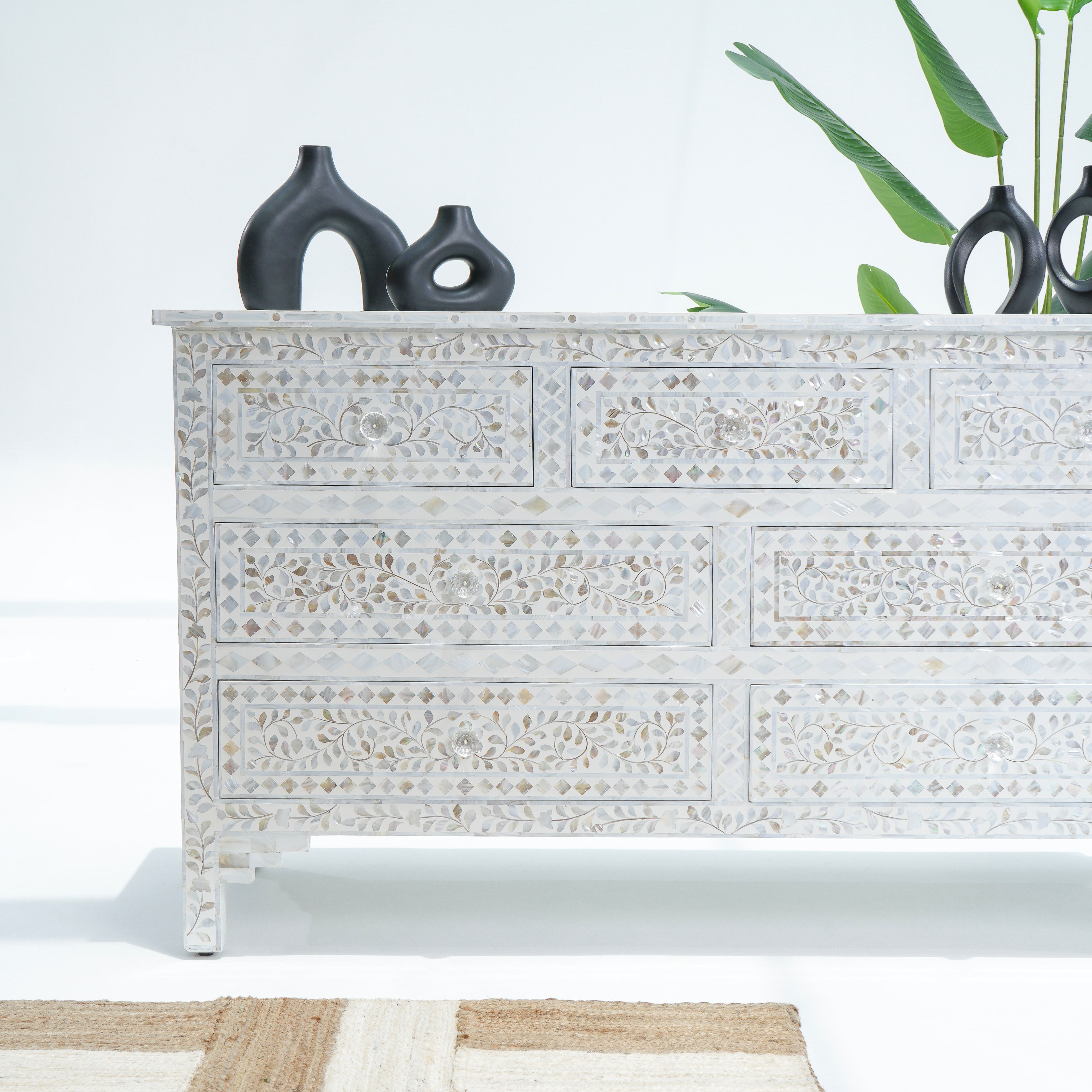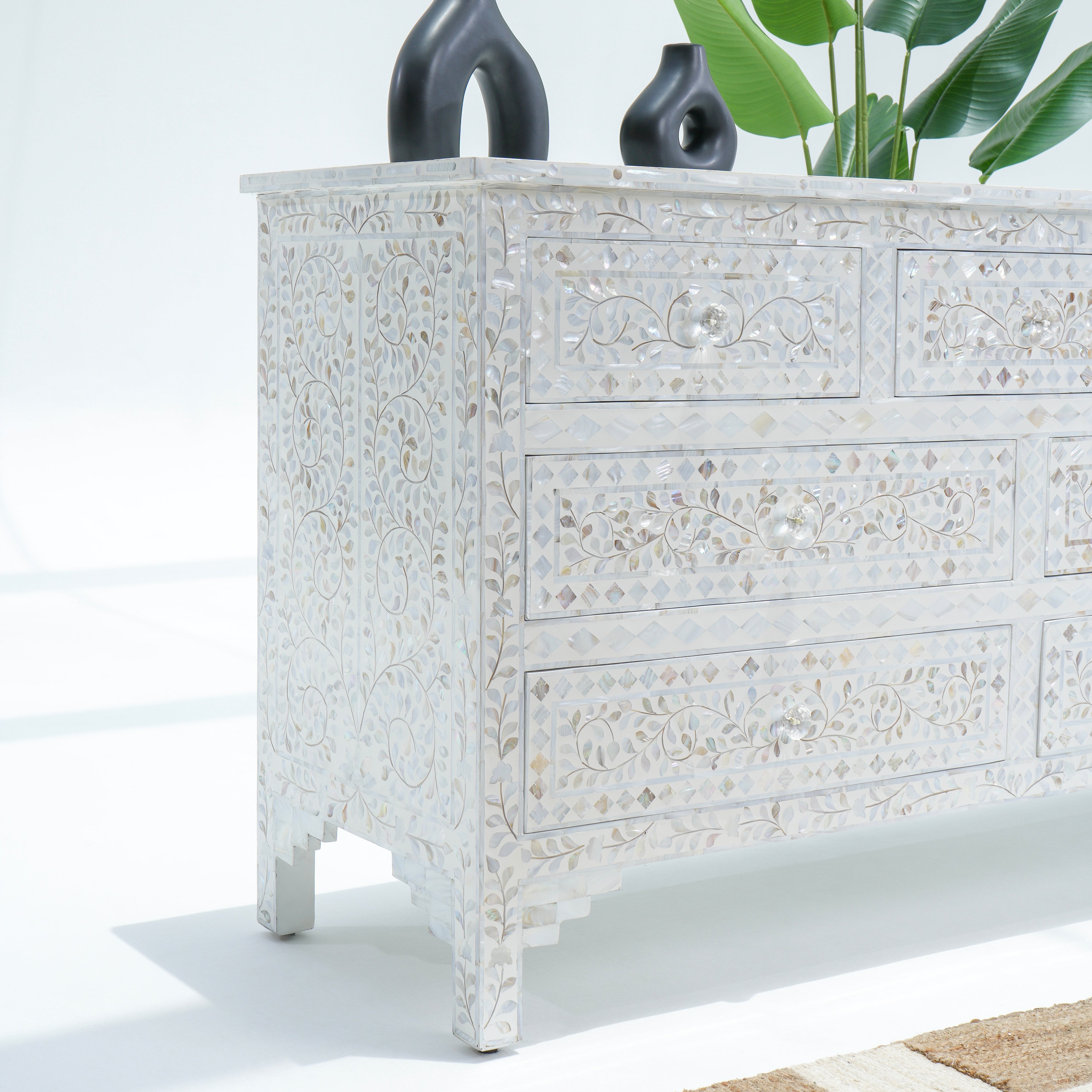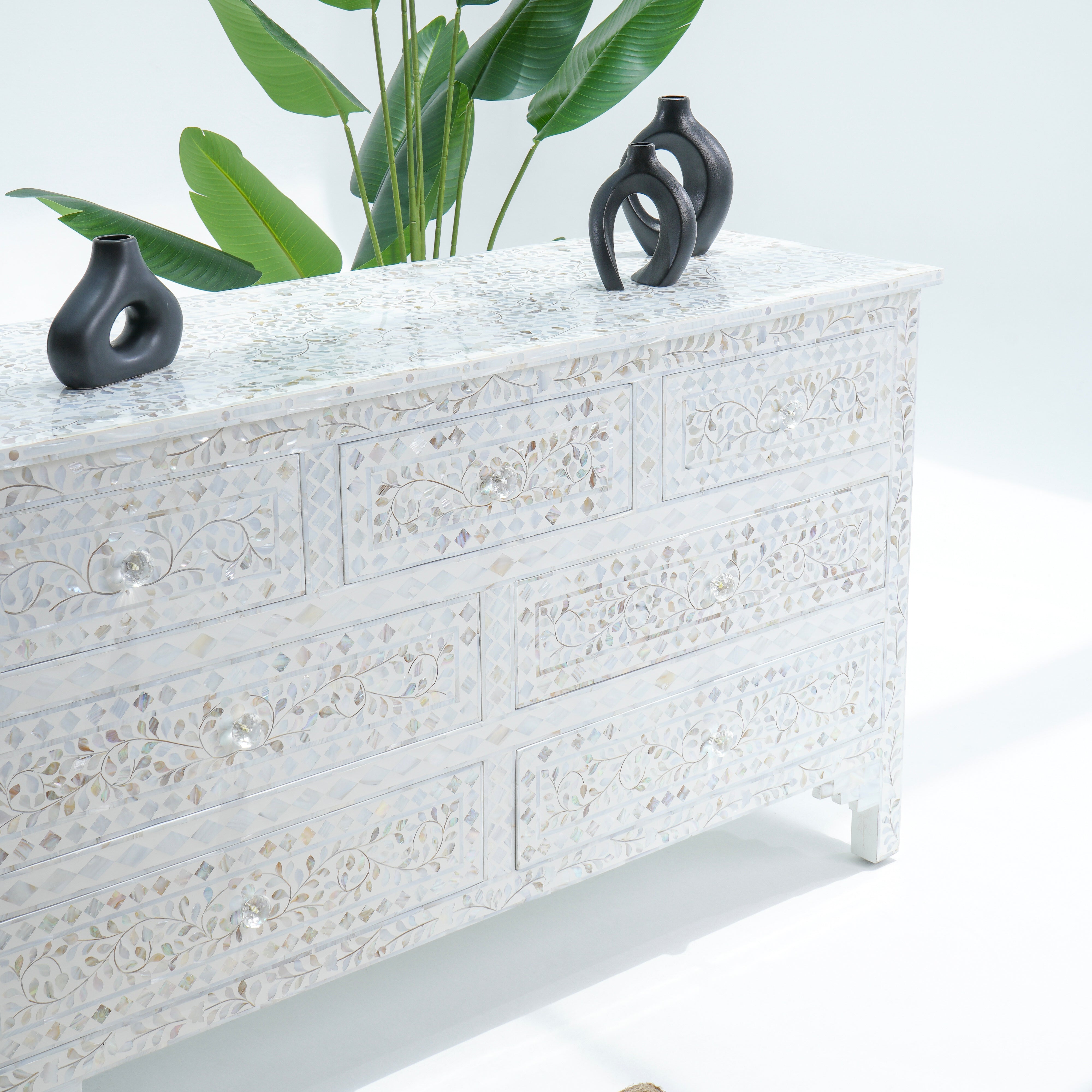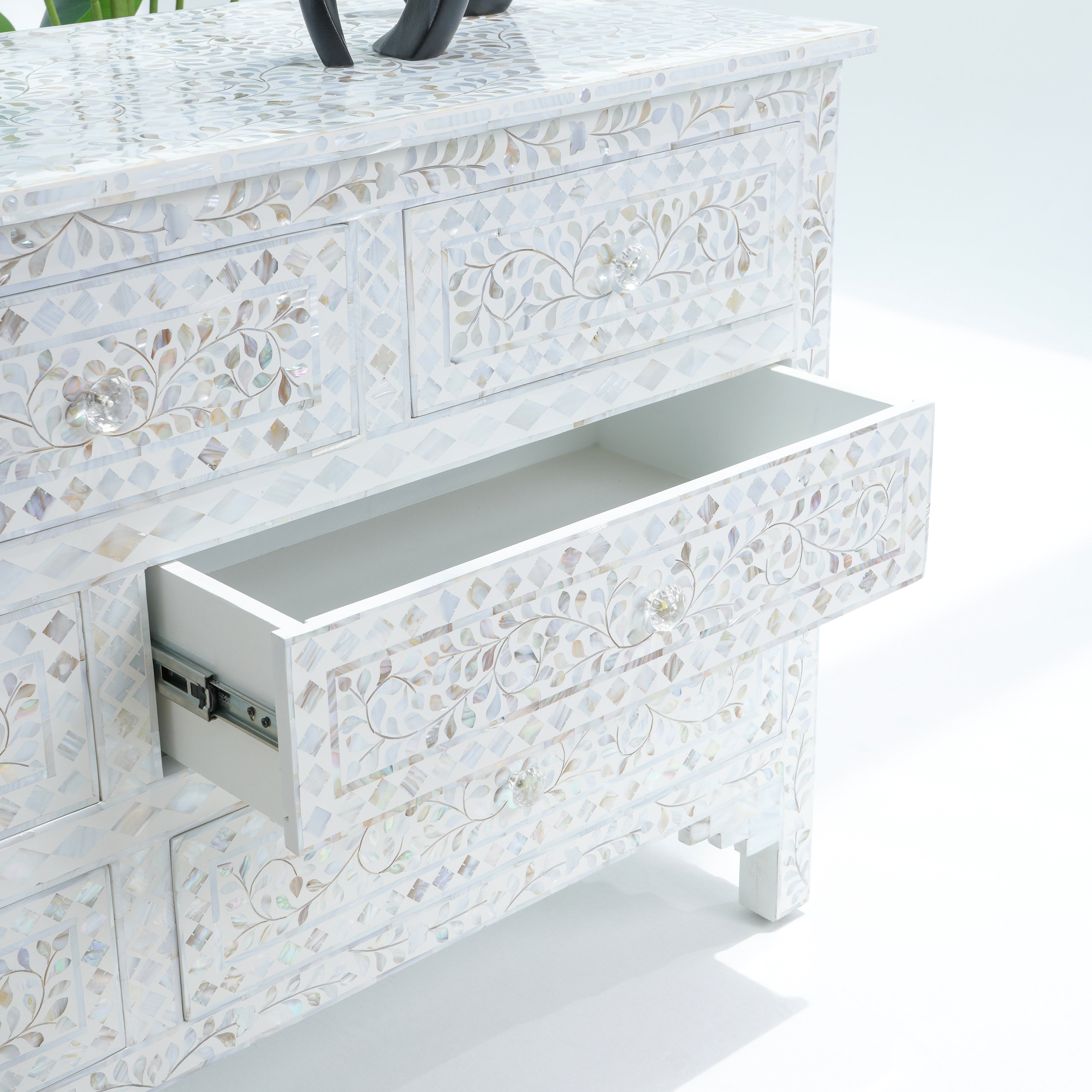 حقق أقصى قدر من التنظيم مع خزانة الأدراج البيضاء ذات السبعة أدراج المصنوعة من عرق اللؤلؤ. هذه القطعة الأنيقة مصنوعة في الهند وتأتي مع ضمان لمدة عام واحد لراحتك.