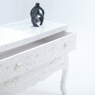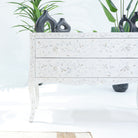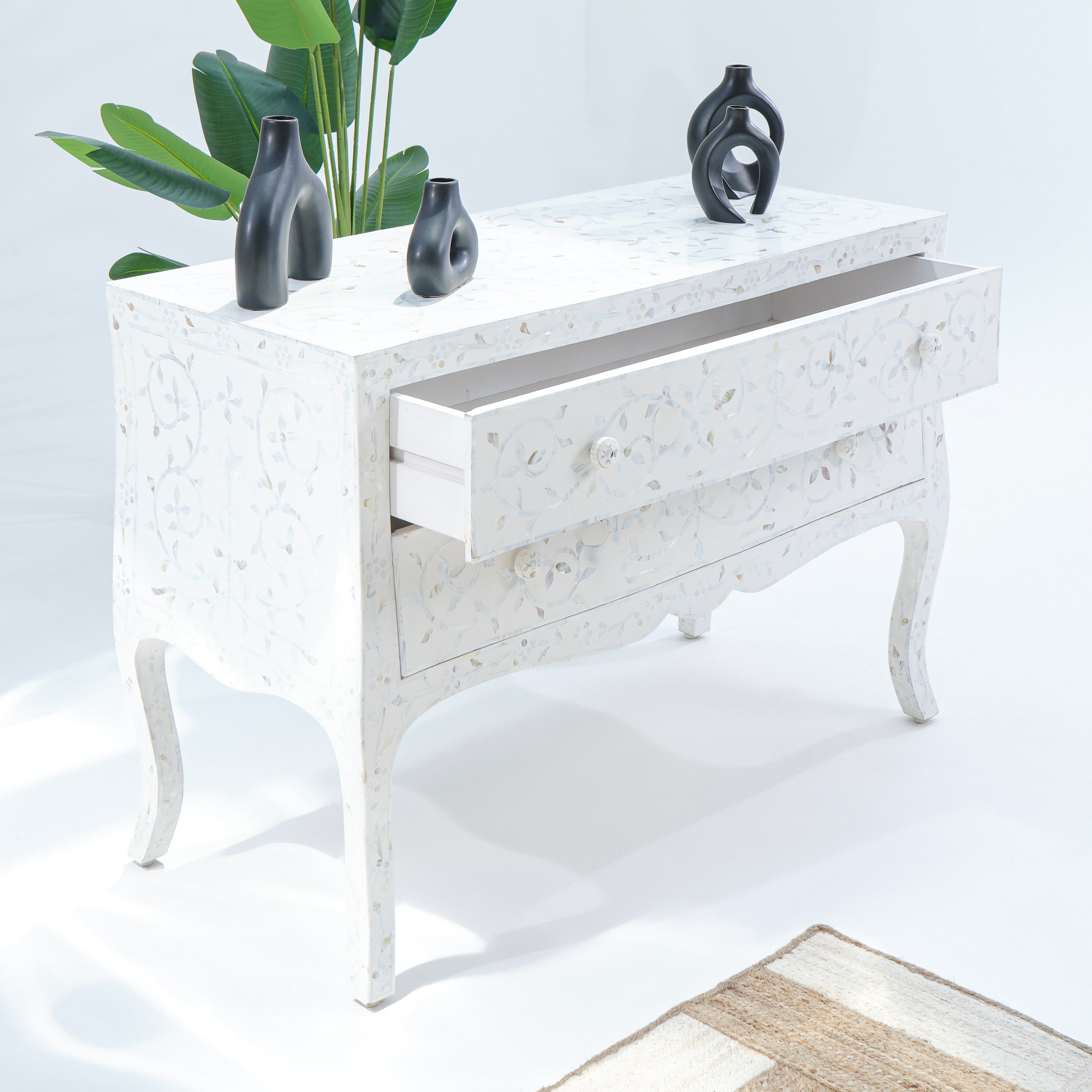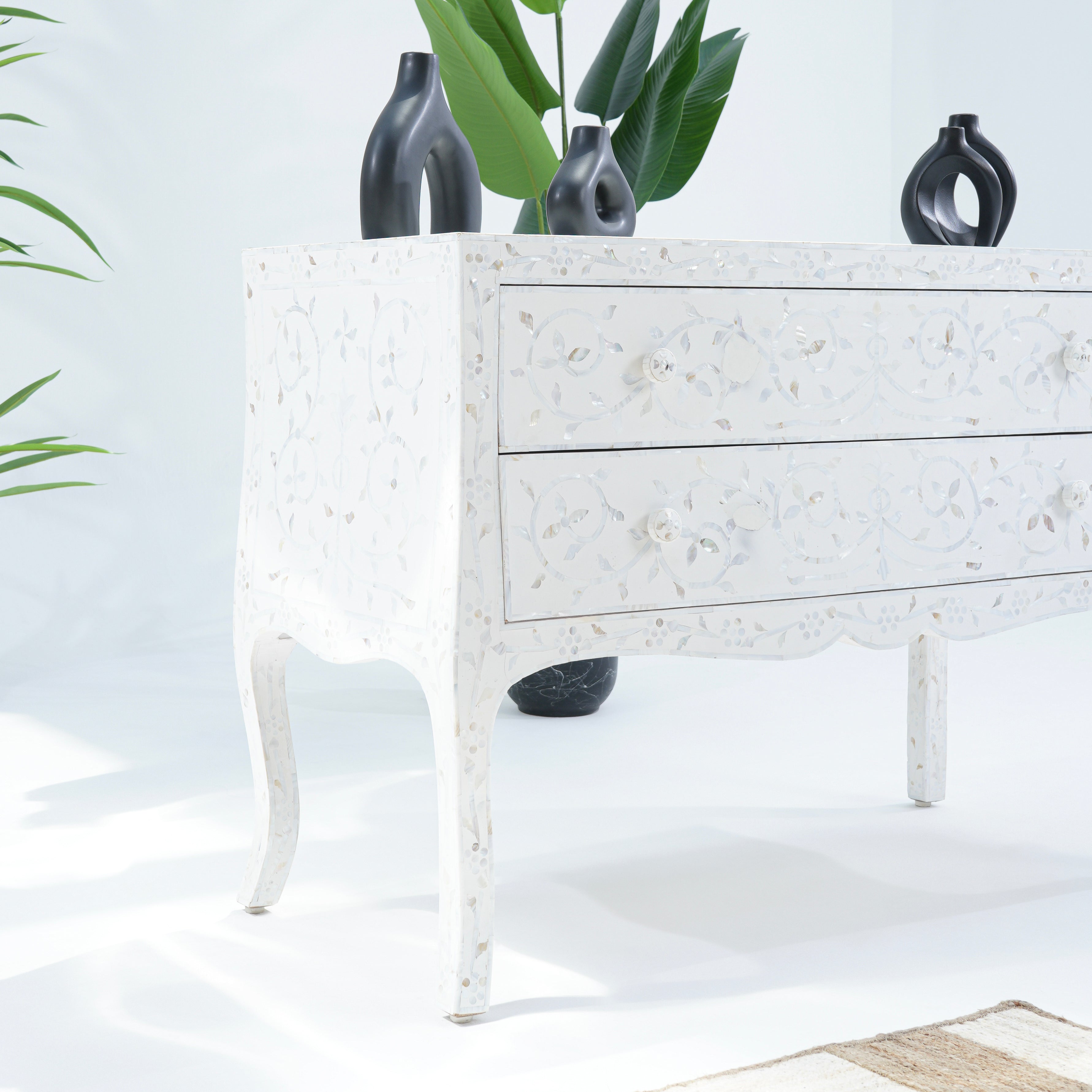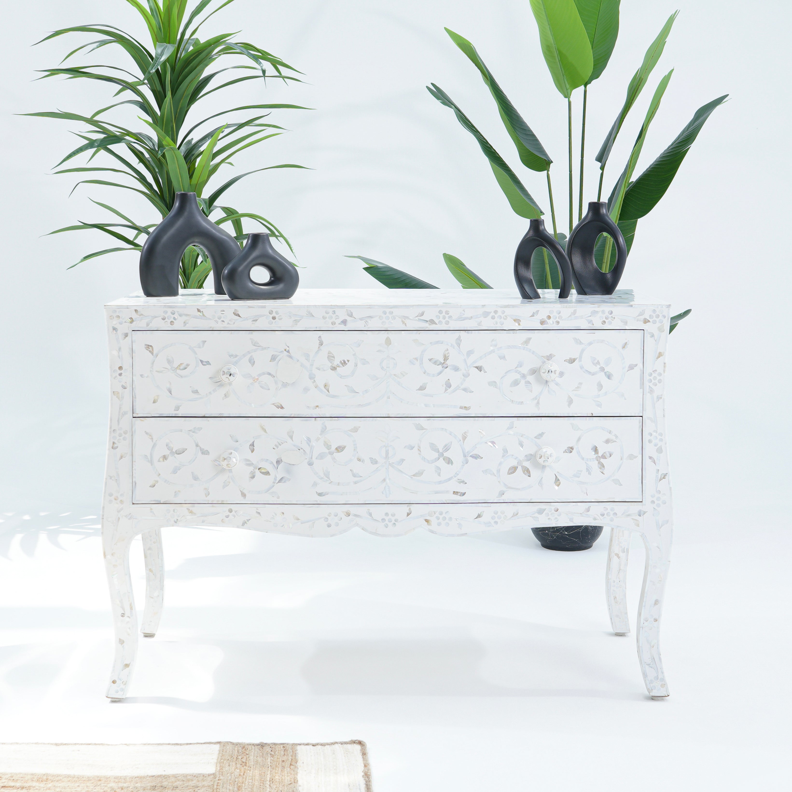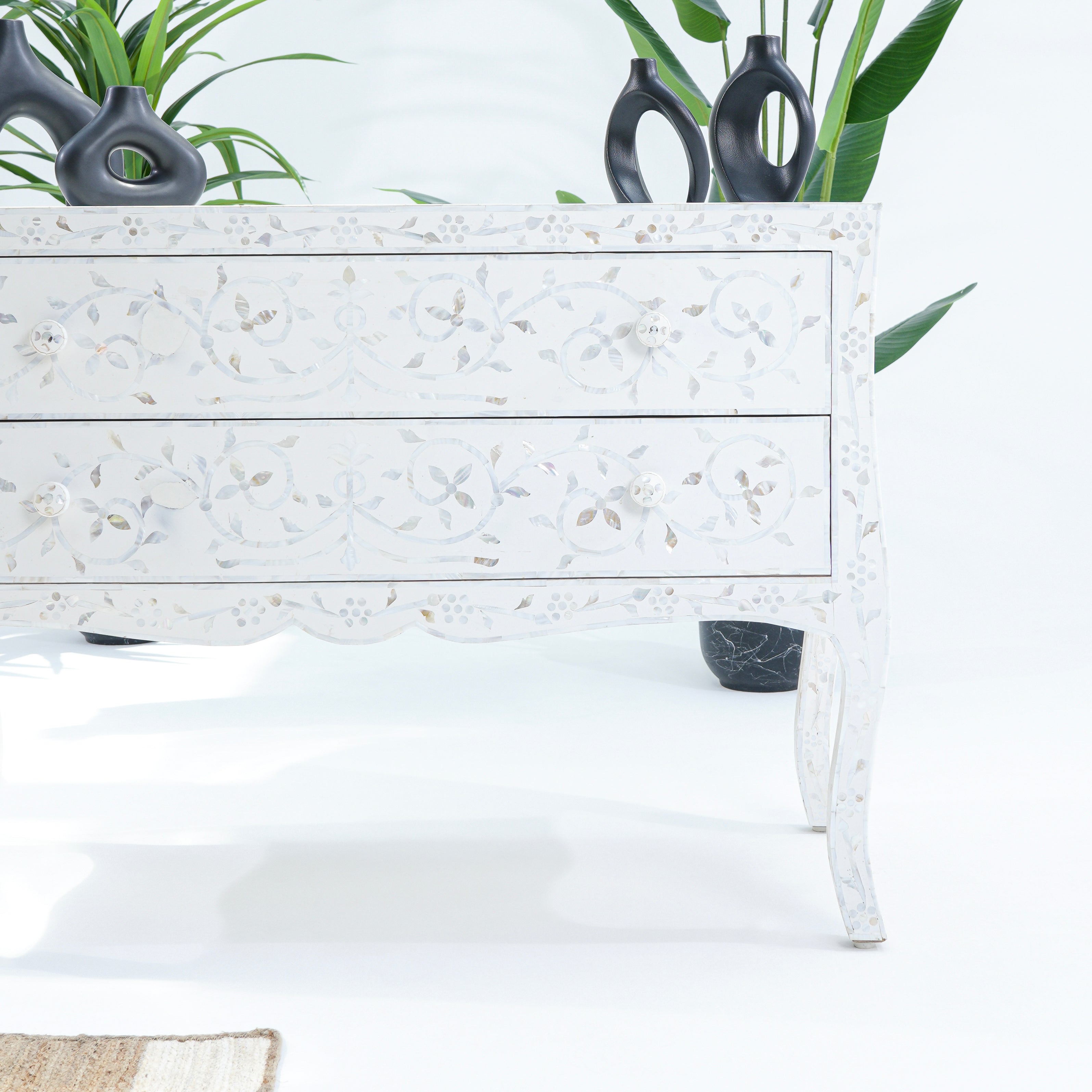 يوفر هذا الصندوق ذو الدرجين المصنوع من عرق اللؤلؤ حلاً أنيقاً للتخزين يناسب أي غرفة. صُنع في الهند، ويأتي مع ضمان لمدة عام كامل لضمان جودته.