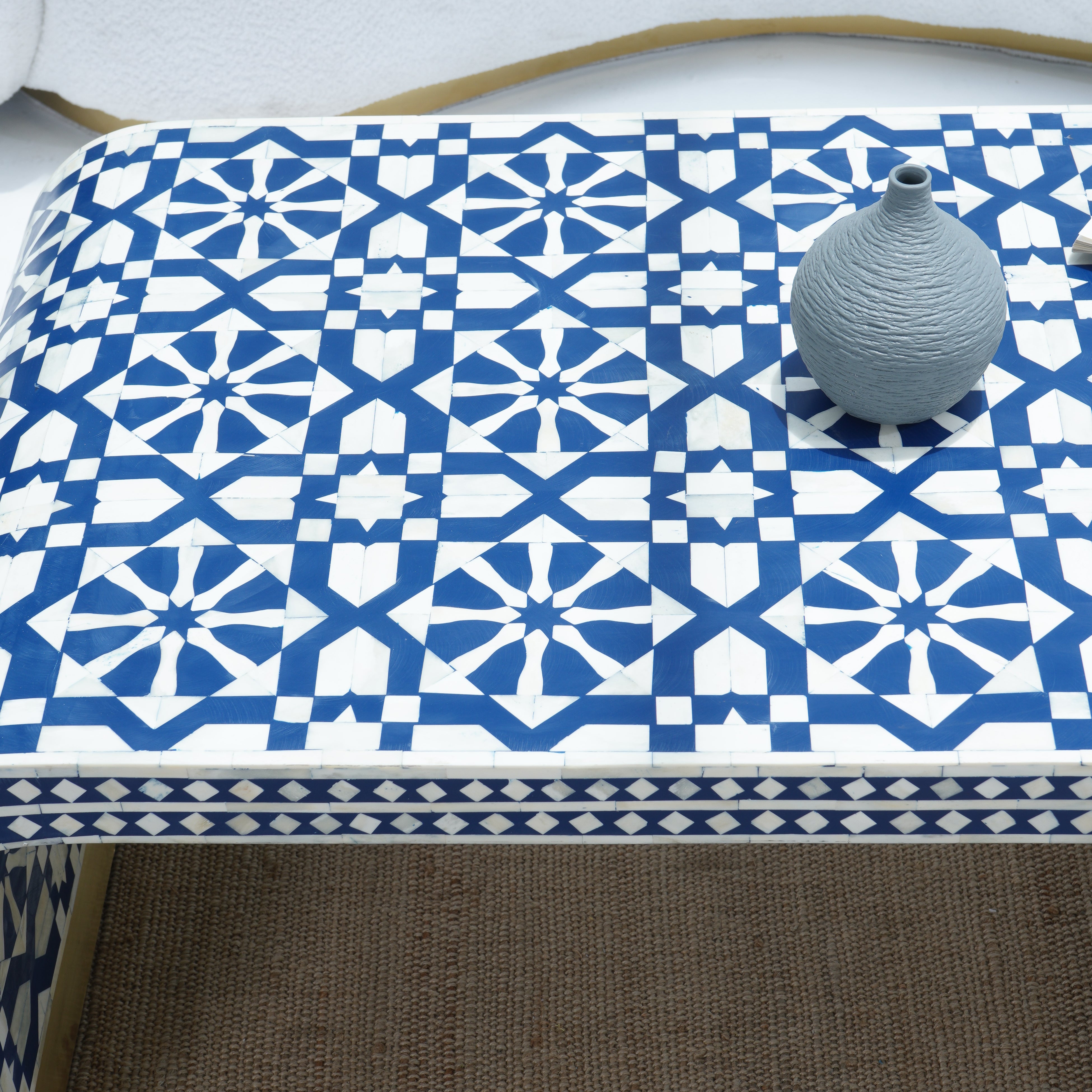 تُضفي طاولة القهوة المربعة الزرقاء المرصعة لمسةً من الألوان والتصميم العصري على ديكور منزلك. صُنعت في الهند، وتأتي مع ضمان لمدة عام لمزيد من الاطمئنان.