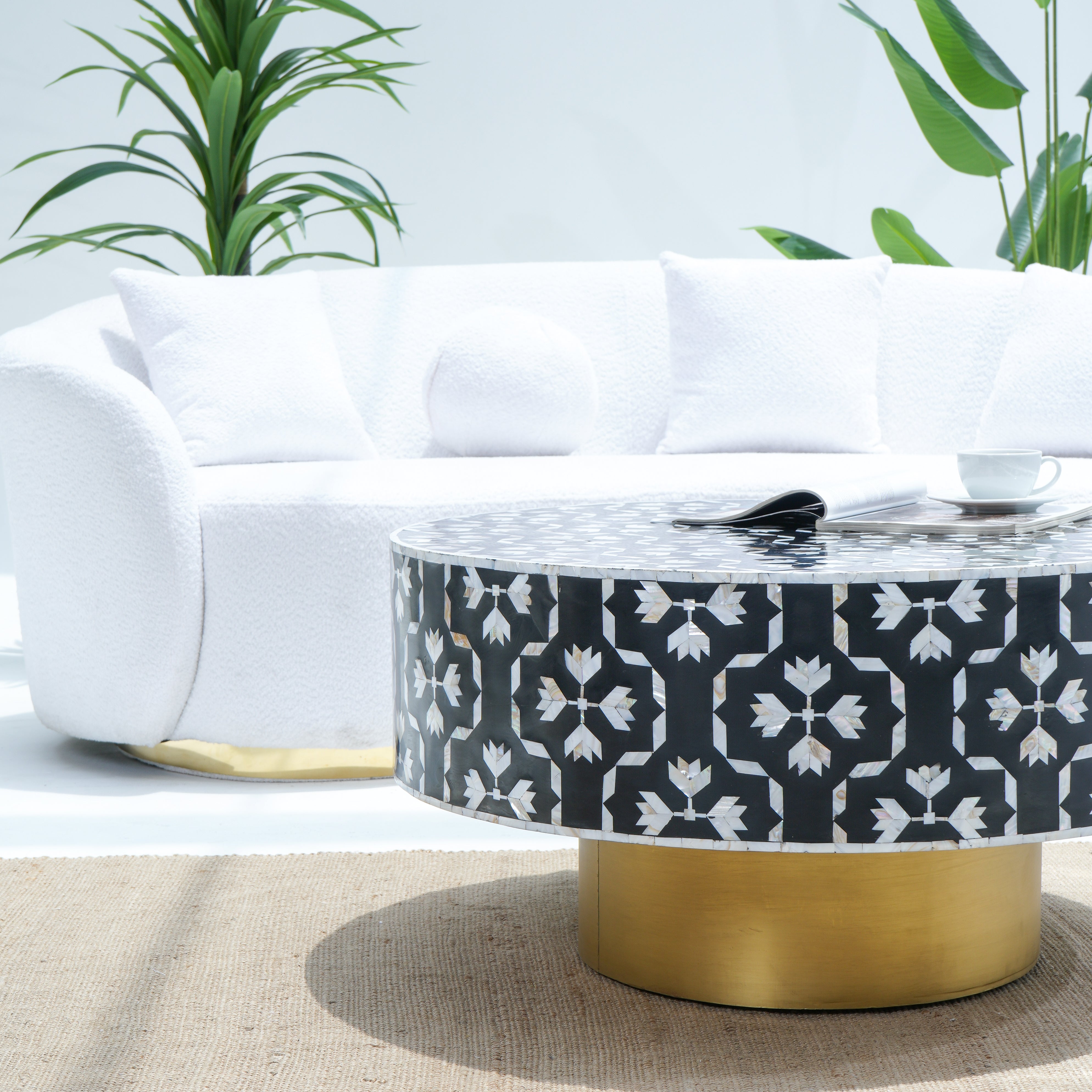 تتميز طاولة القهوة المستديرة المصنوعة من عرق اللؤلؤ الأسود بمظهر أنيق ووظائف متعددة. صُنعت في الهند، وتأتي مع ضمان لمدة عام كامل لضمان راحتك.