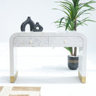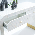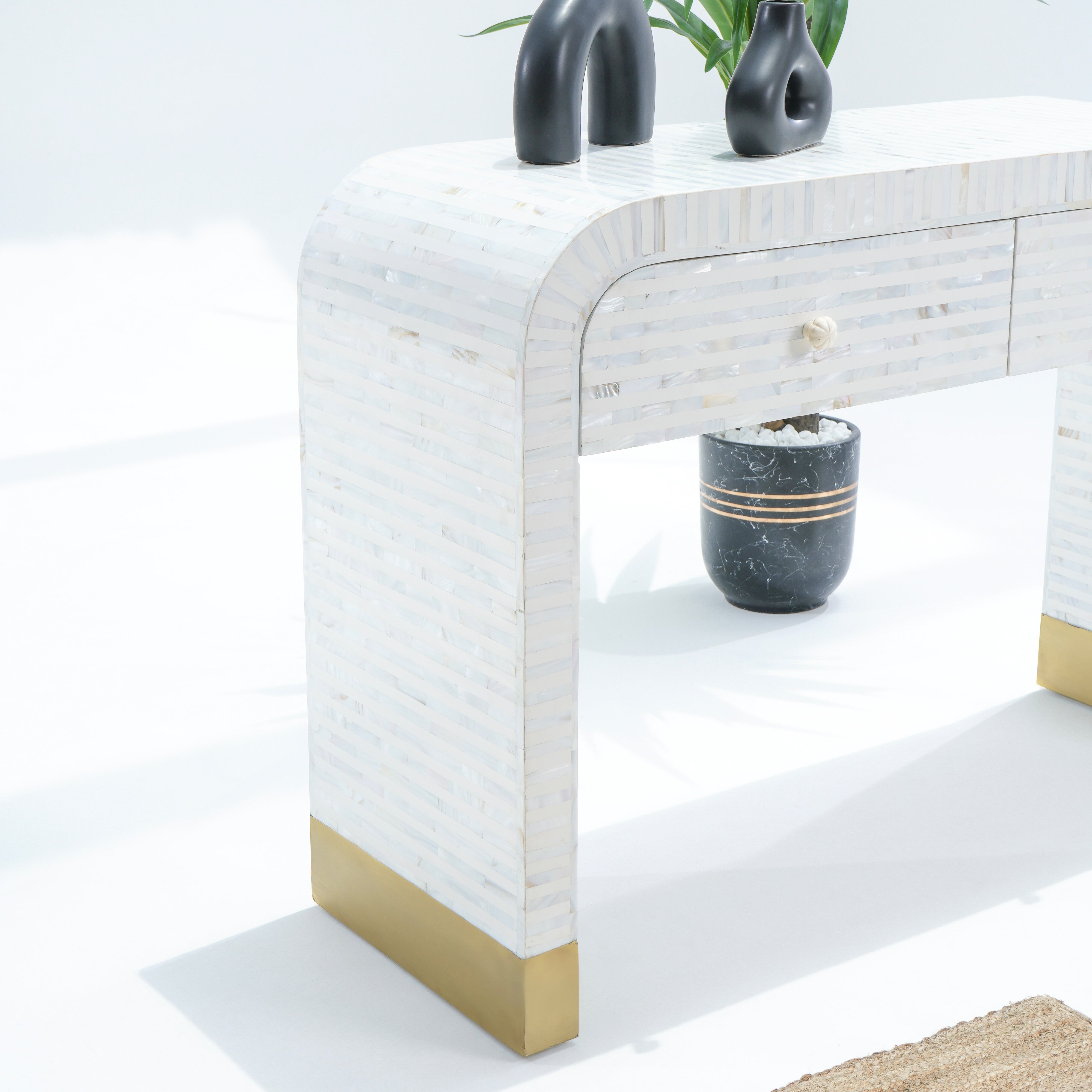 بفضل تصميمها الفريد على شكل حرف U، توفر وحدة التخزين البيضاء ذات الدرجين المصنوعة من عرق اللؤلؤ مزيجًا من الأناقة والتخزين. صُنعت في الهند، وهي مكفولة بضمان لمدة عام كامل لضمان راحتك.