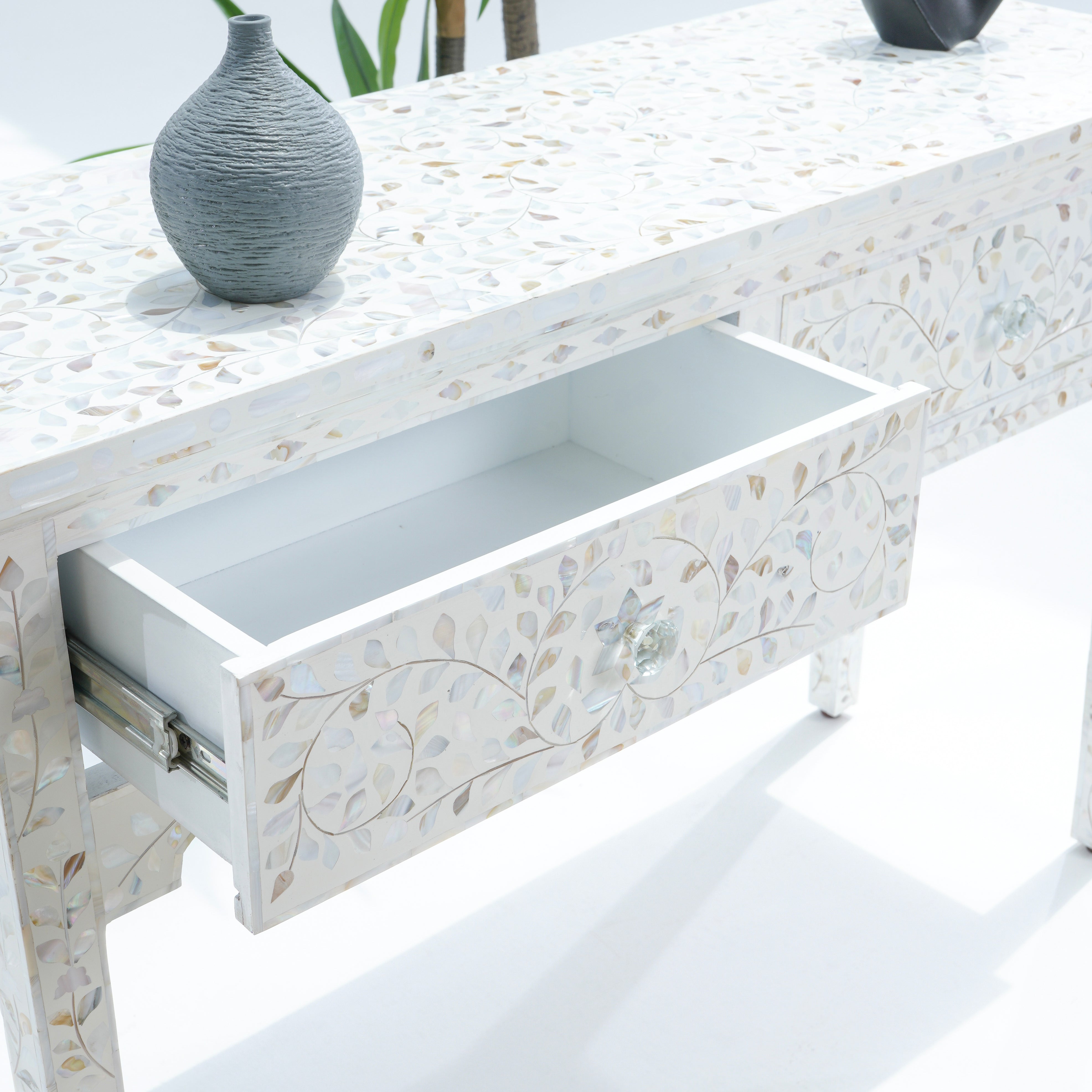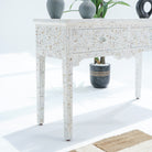تجمع وحدة التخزين البيضاء ذات الدرجين المصنوعة من عرق اللؤلؤ بين العملية والأناقة. صُنعت في الهند، وتتميز بمساحة تخزين واسعة، وتأتي مع ضمان لمدة عام كامل لراحتك.