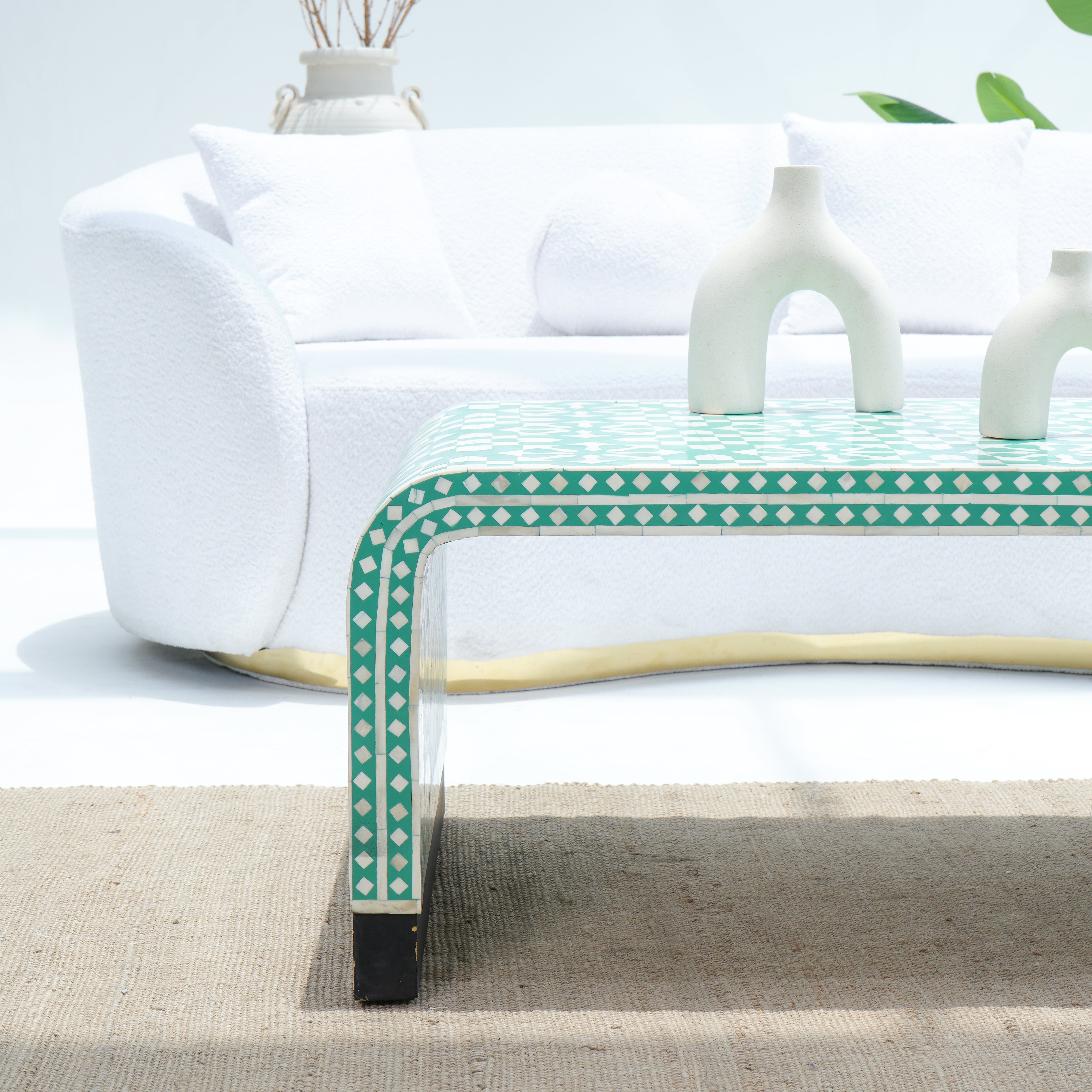 أضف لمسة من الأناقة إلى غرفتك مع طاولة القهوة المستديرة الخضراء المرصعة، المصممة لتجمع بين الأناقة والعملية. صُنعت في الهند، وتأتي مع ضمان لمدة عام كامل لراحة بالك.