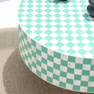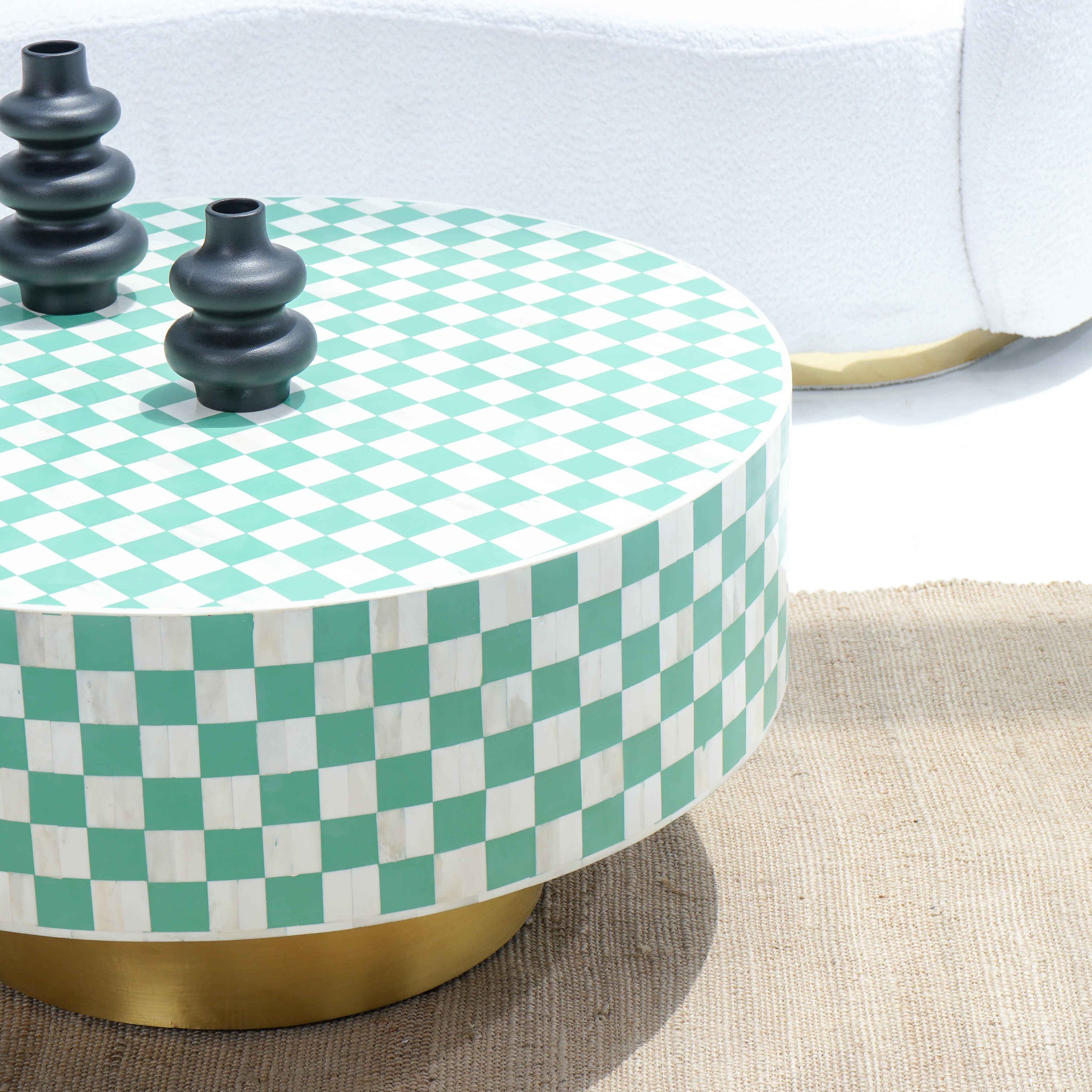 طاولة قهوة مستديرة زرقاء فاتحة مرصعة