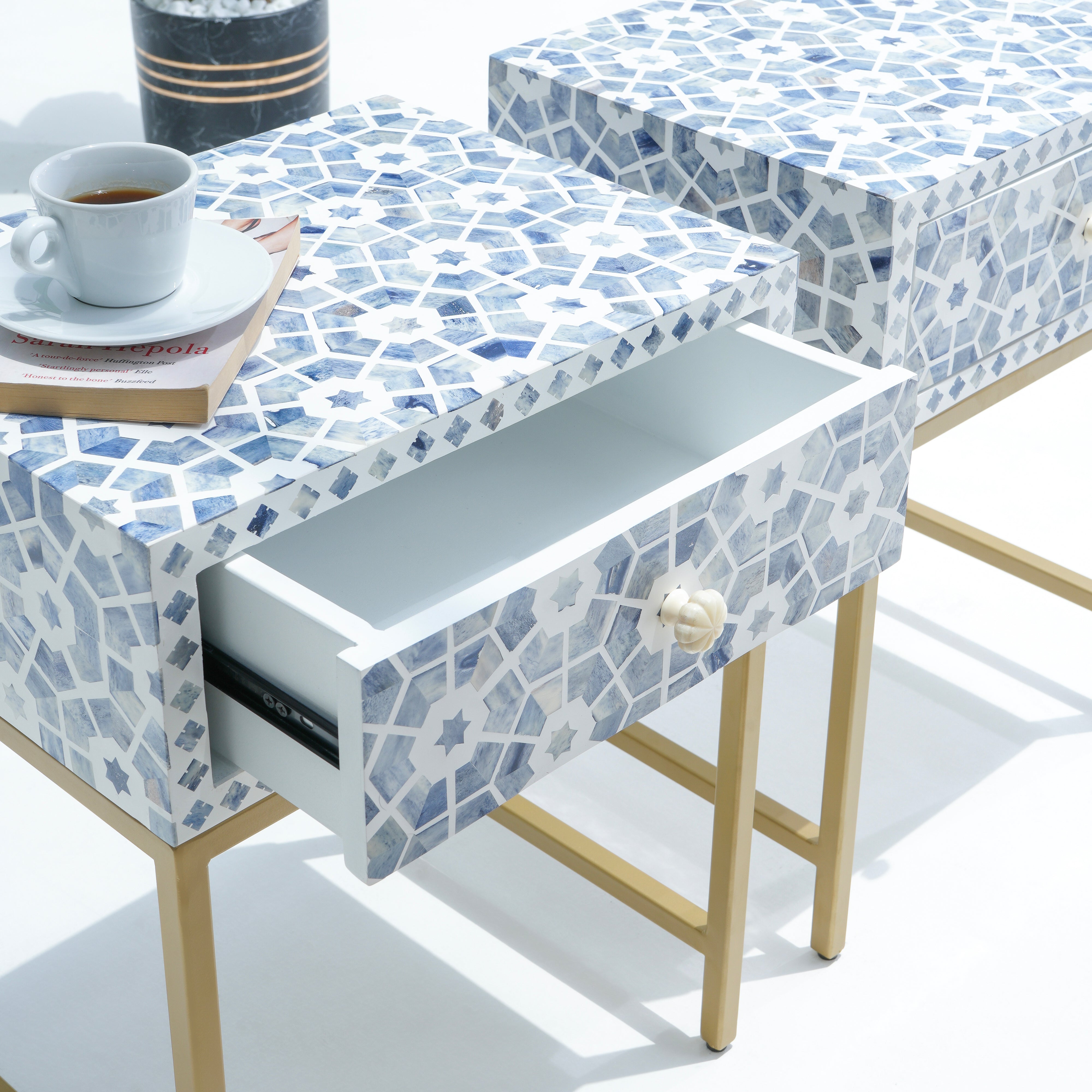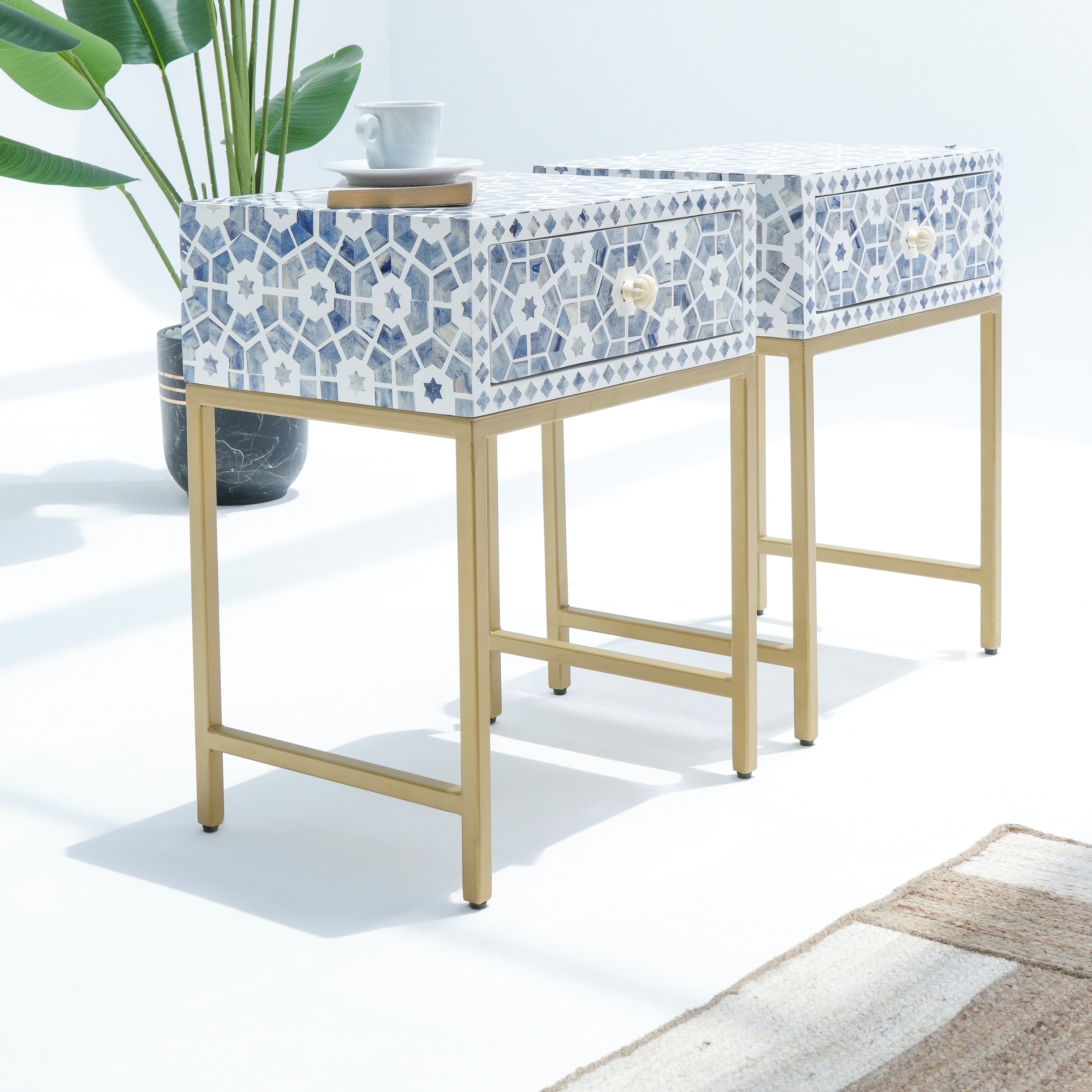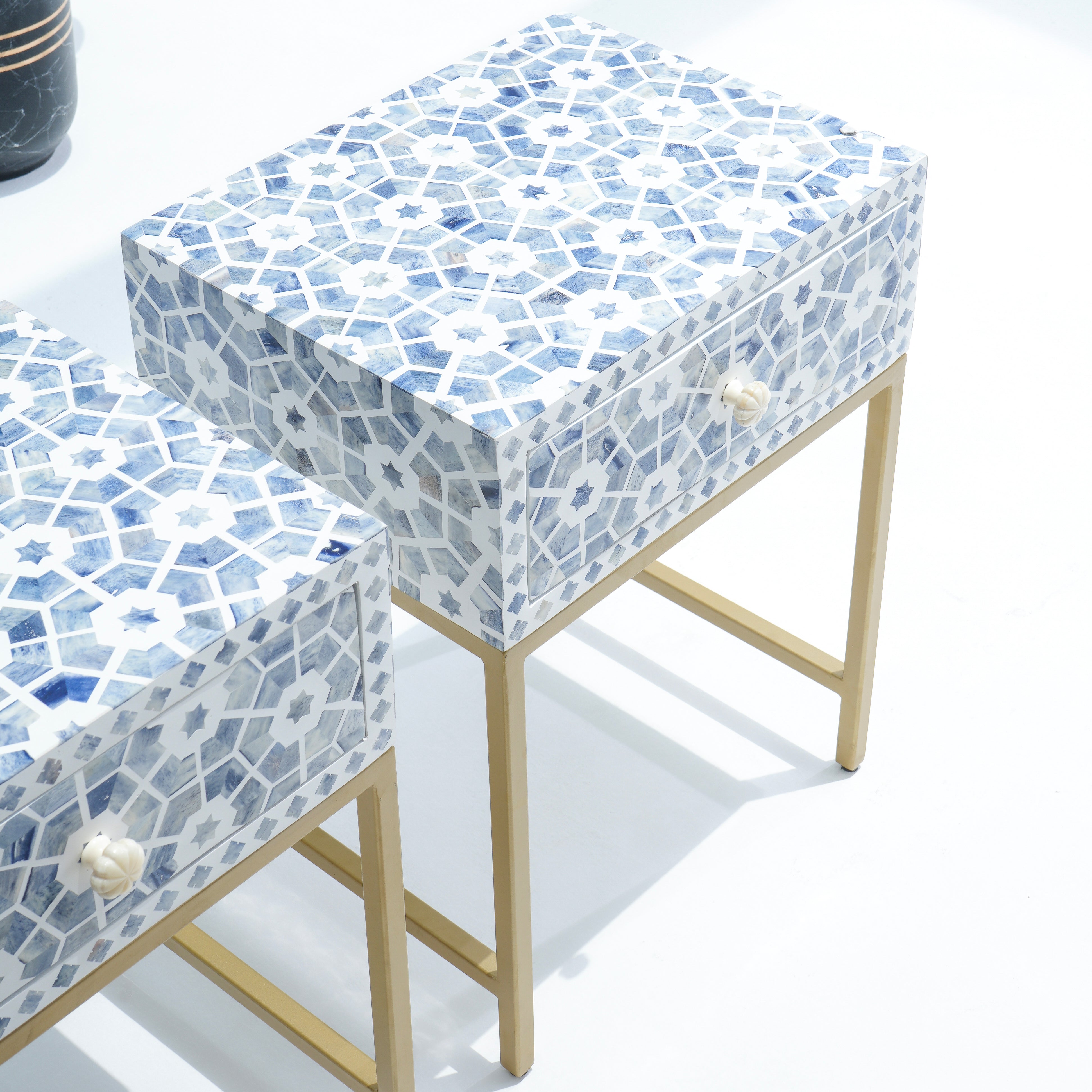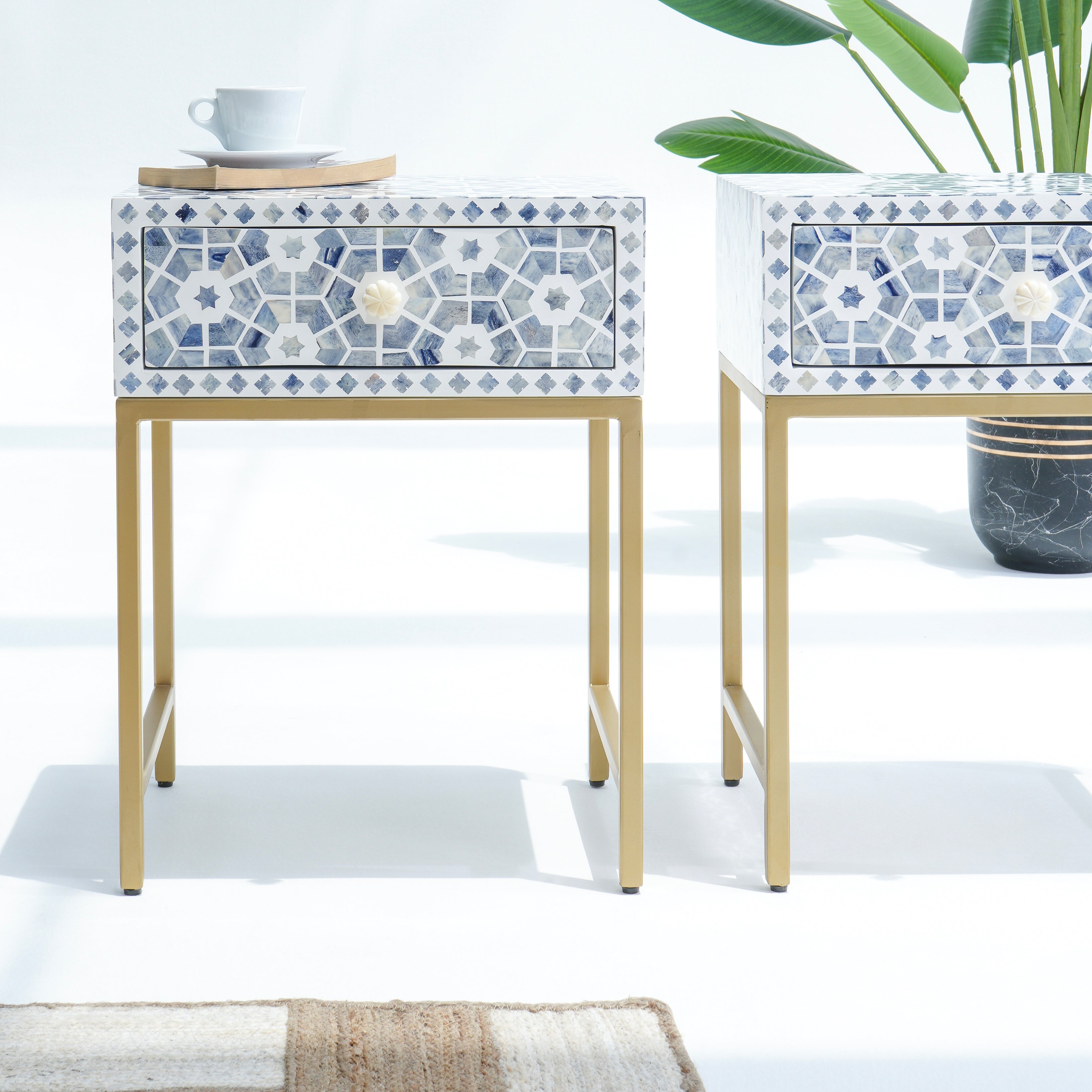طاولة جانبية للسرير بلون رمادي فاتح مرصع