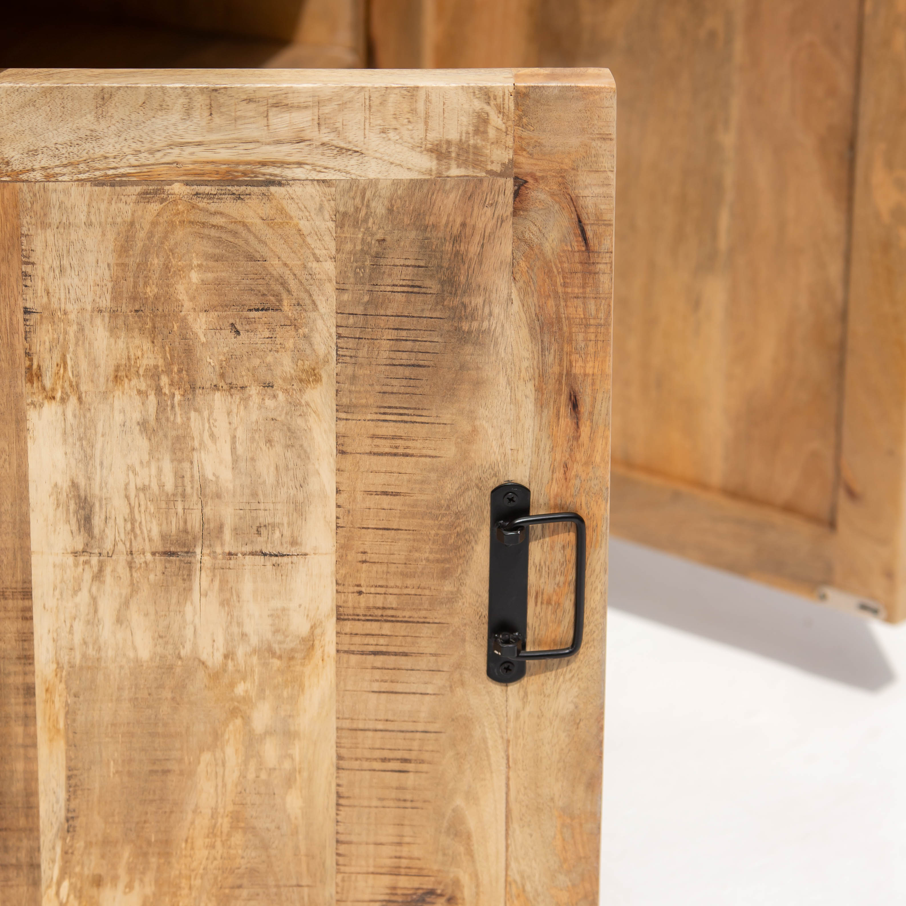 تجمع هذه الخزانة الجانبية الأنيقة بين الحرفية التقليدية والتخزين العملي. مصنوعة من خشب المانجو الصلب، وتتميز بلمسة نهائية طبيعية دافئة تُناسب أي نمط ديكور. تحتوي على ثلاثة أدراج واسعة وثلاثة أبواب، مما يوفر حلول تخزين متعددة الاستخدامات لغرف الطعام والمعيشة والمداخل. صُنعت هذه الخزانة يدويًا في الهند، وتُبرز جودة النجارة الأصيلة ومتانتها. تُضفي أنماط حبيبات خشب المانجو الغنية لمسة جمالية مميزة، بينما يضمن هيكلها المتين أداءً يدوم طويلًا. خيار ممتاز لمن يبحث عن أثاث عملي ذي طابع حرفي أصيل.